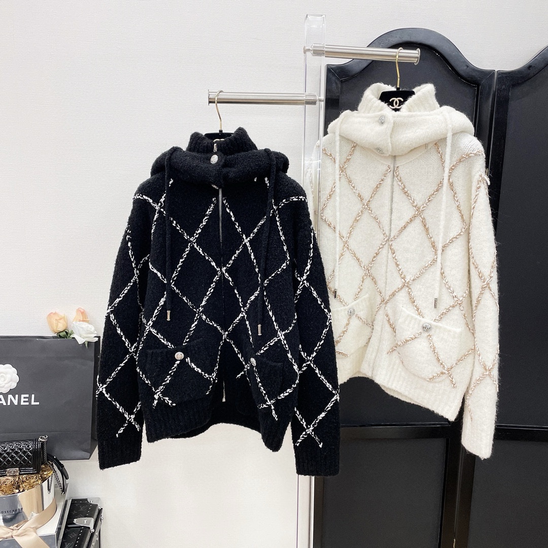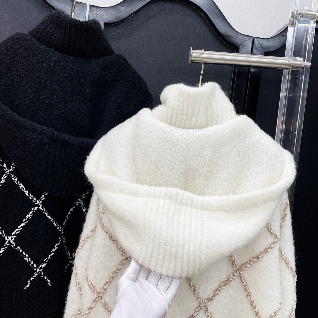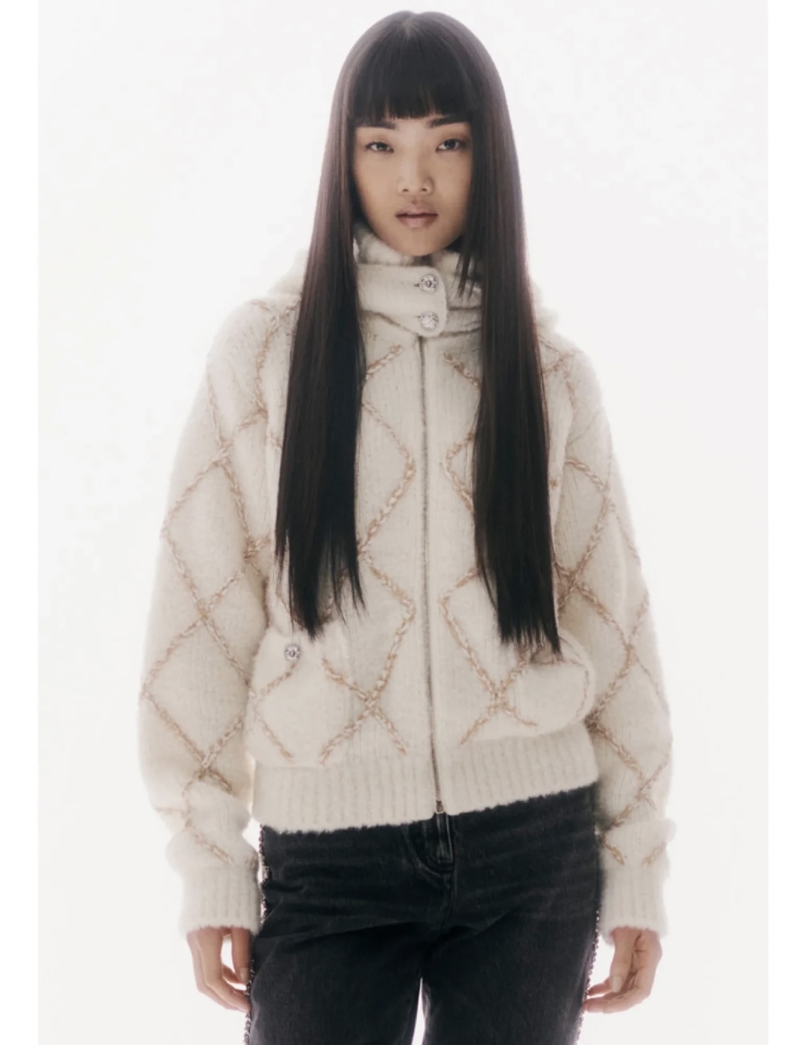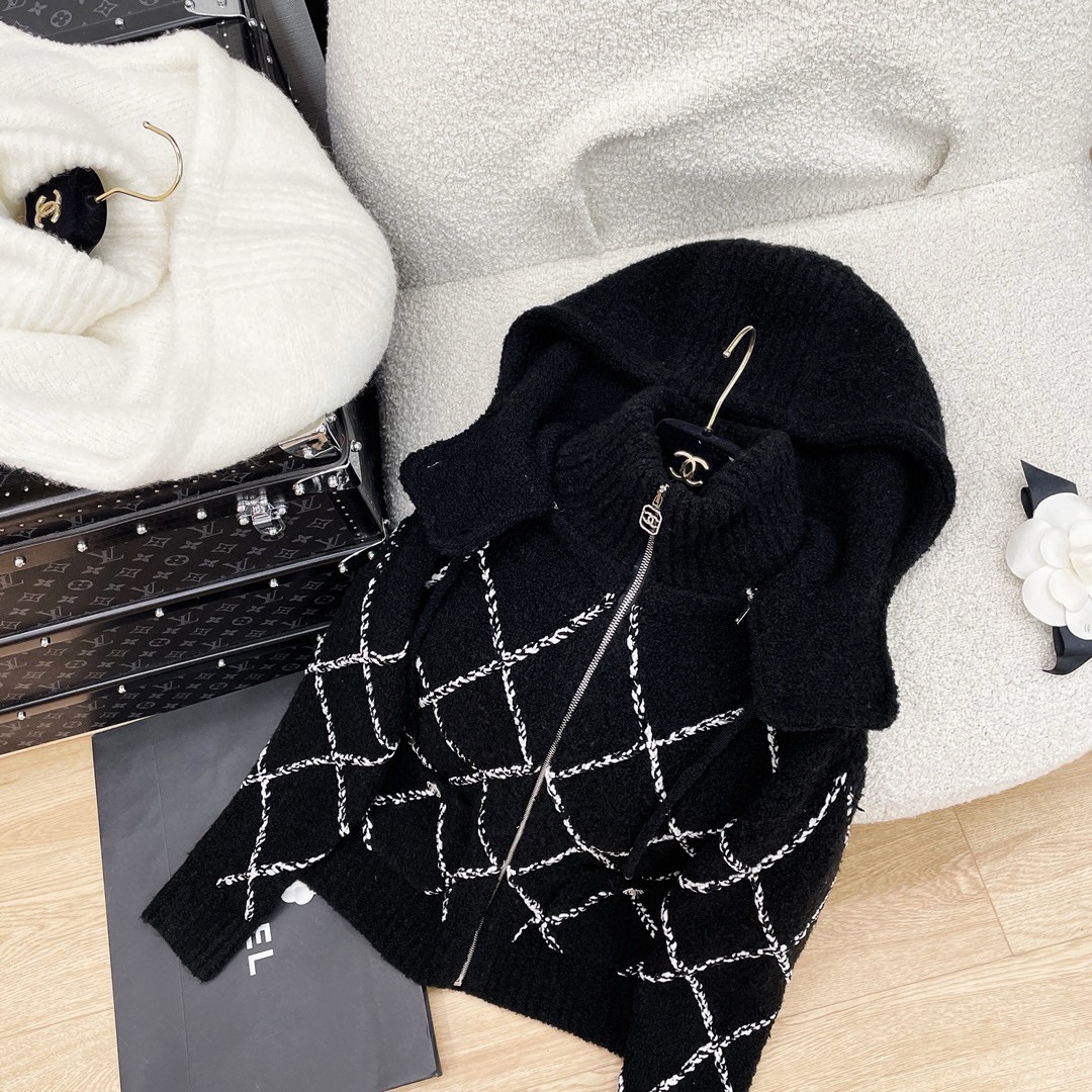 NIGO Chanel Women's Autumn/Winter Coco Neige Ski Series Colour Block Zip Cashmere Hooded Casual Long Sleeve Fitted Jacket Coat Ngvp #nigo7367