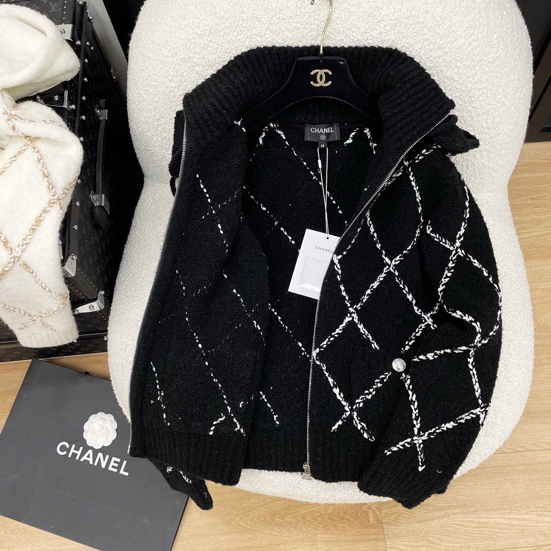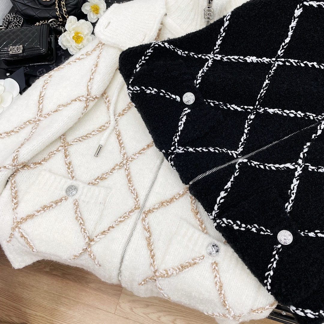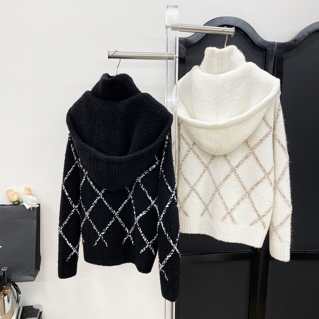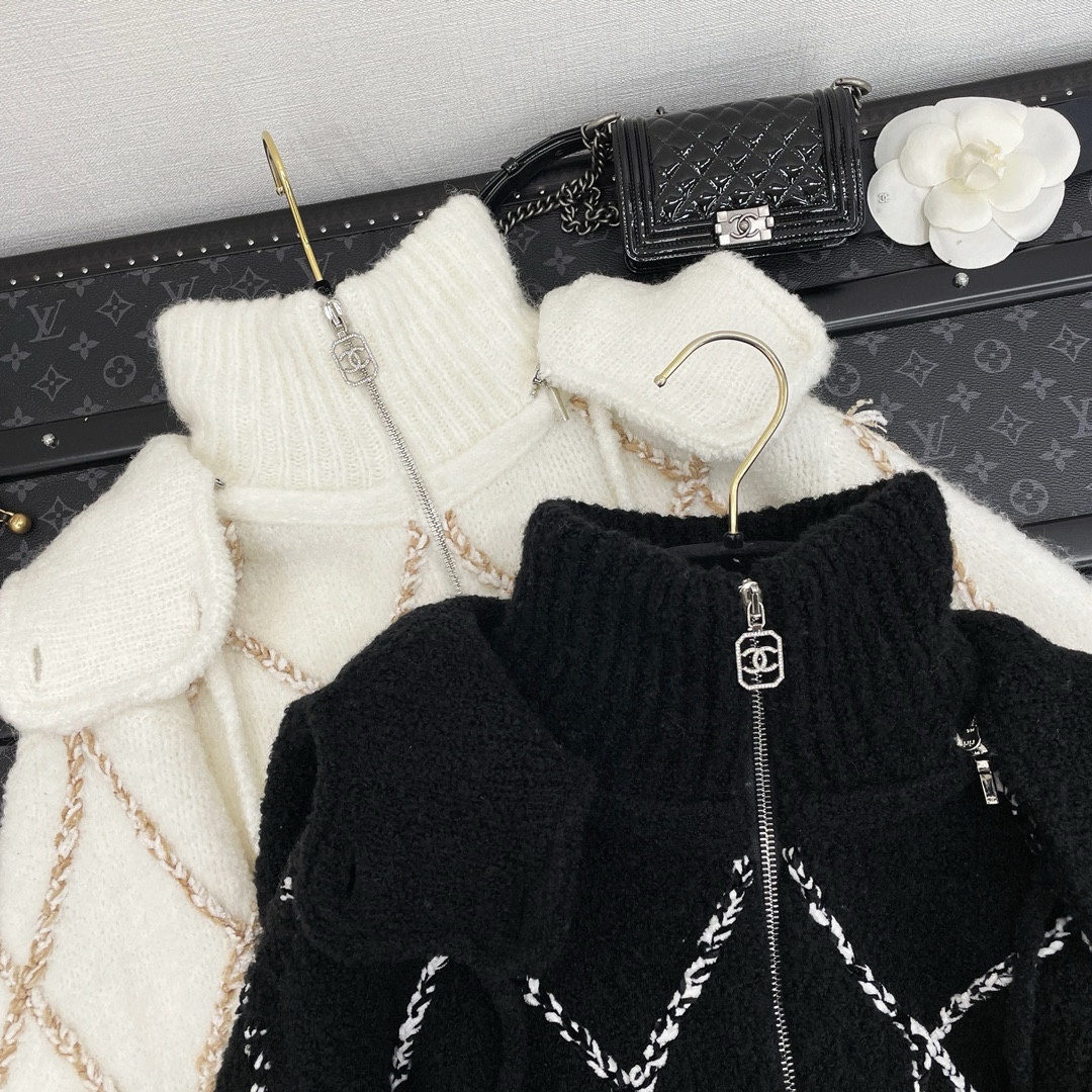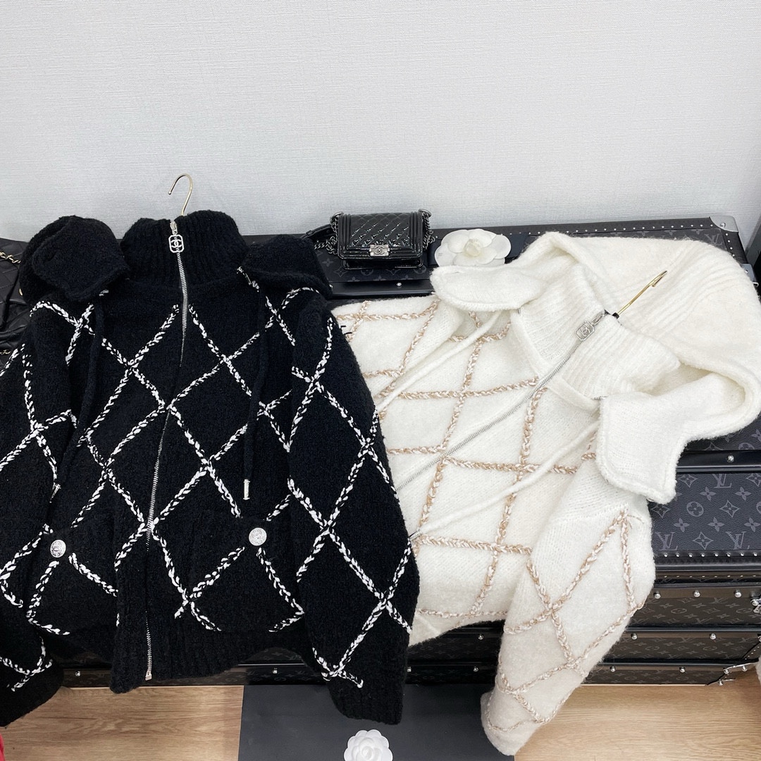 NIGO Chanel Women's Autumn/Winter Coco Neige Ski Series Colour Block Zip Cashmere Hooded Casual Long Sleeve Fitted Jacket Coat Ngvp #nigo7367