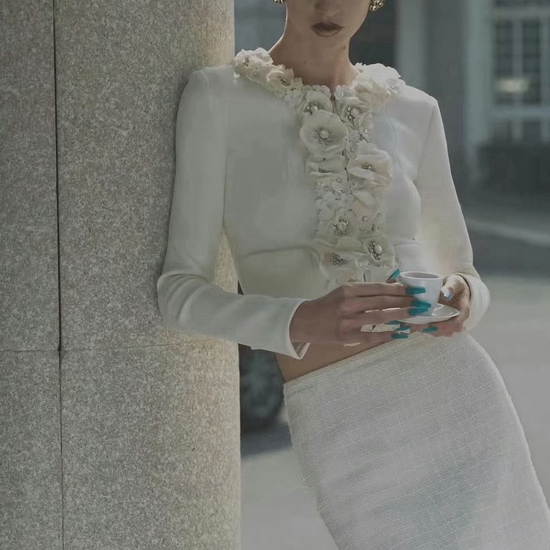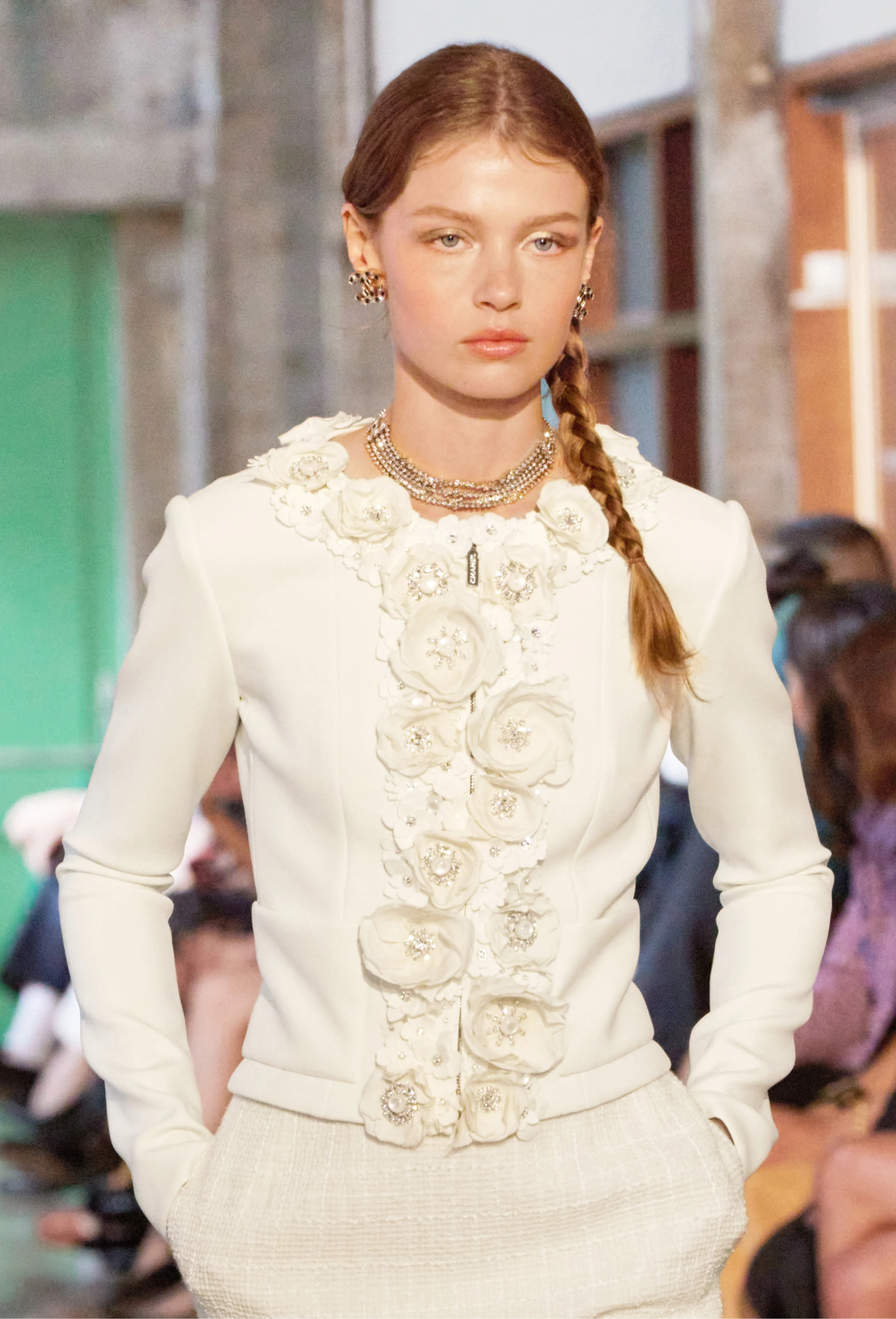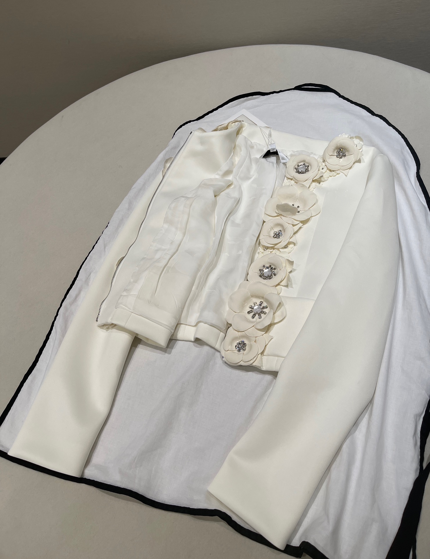 NIGO Chanel Women's Beige Camellia Diamonds Cotton Jacket Spring Festival Holiday Collection Fashion Romantic Coat Ngvp #nigo1726