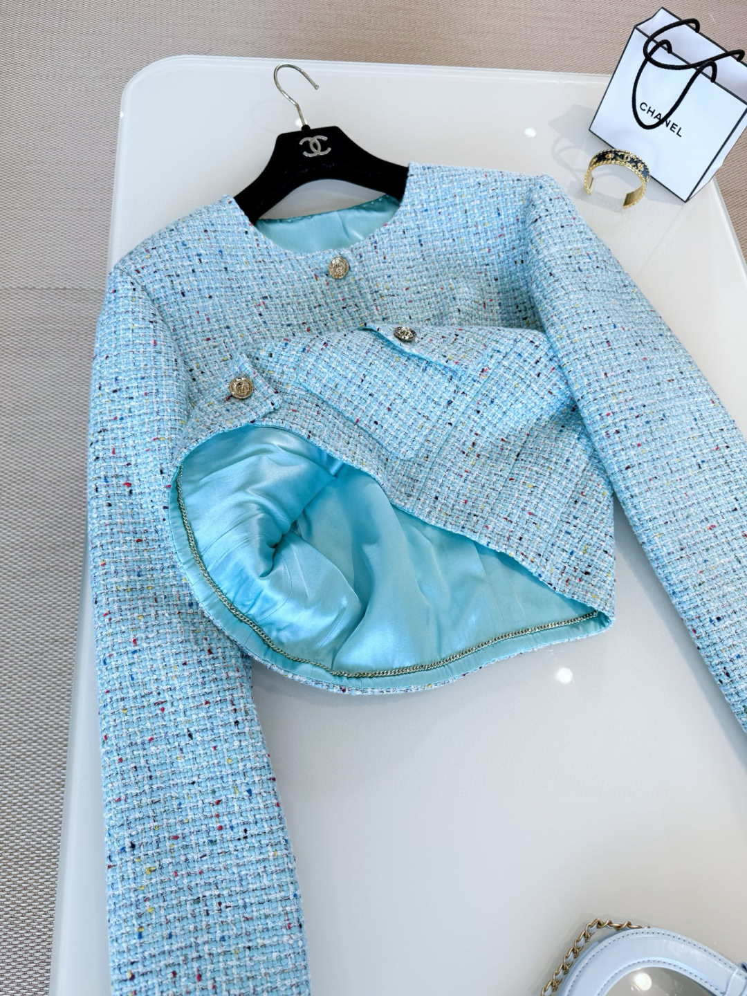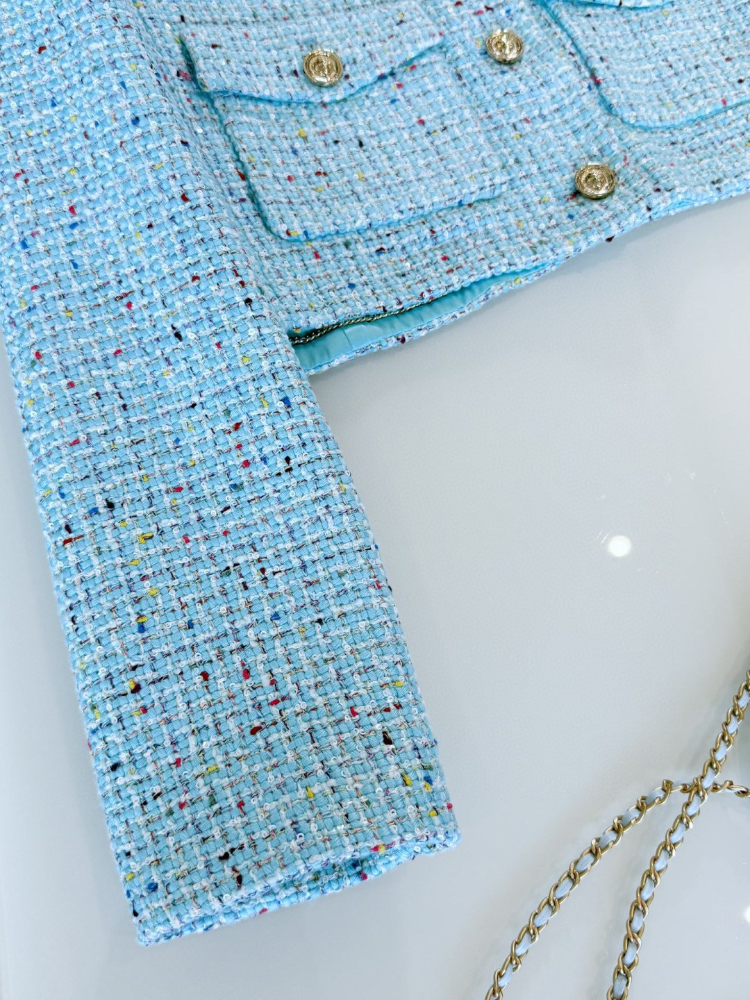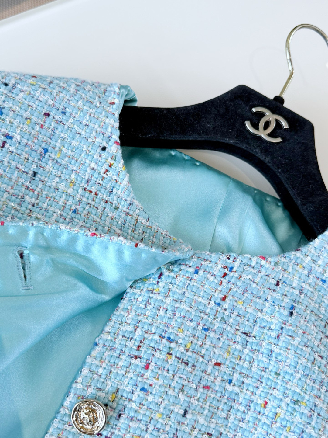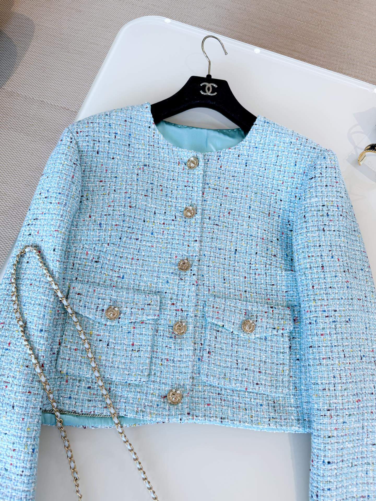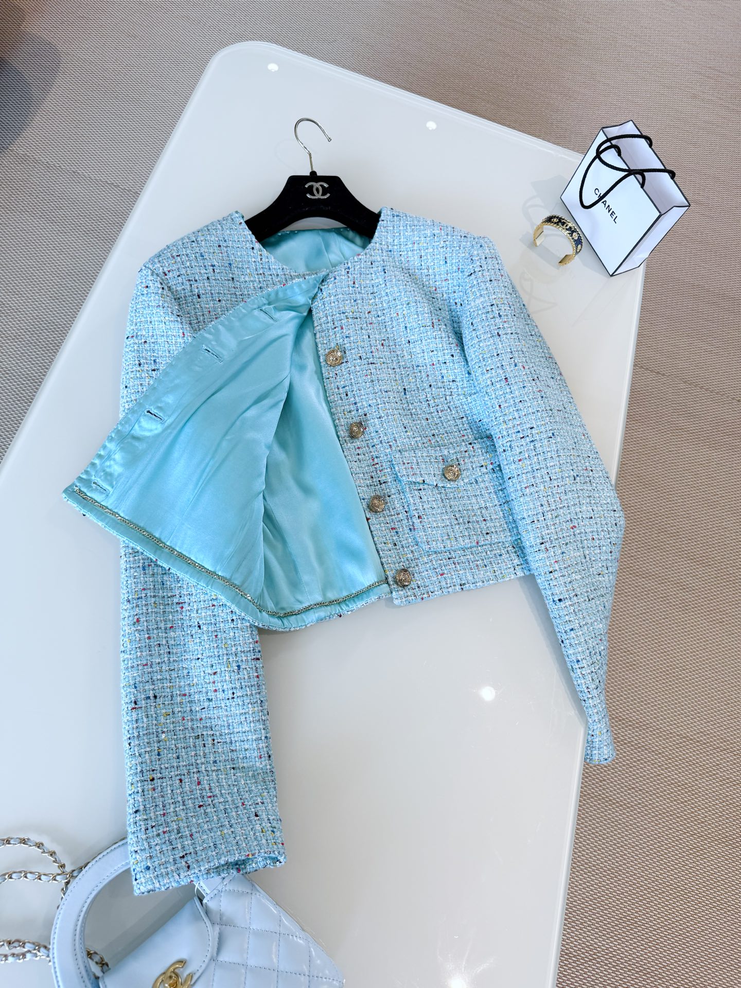 NIGO Chanel Women's Blue-green Woven Patchwork Tweed Short Jacket Autumn And Winter Fashion Elegant Single-breasted Jacket Ngvp #nigo2168