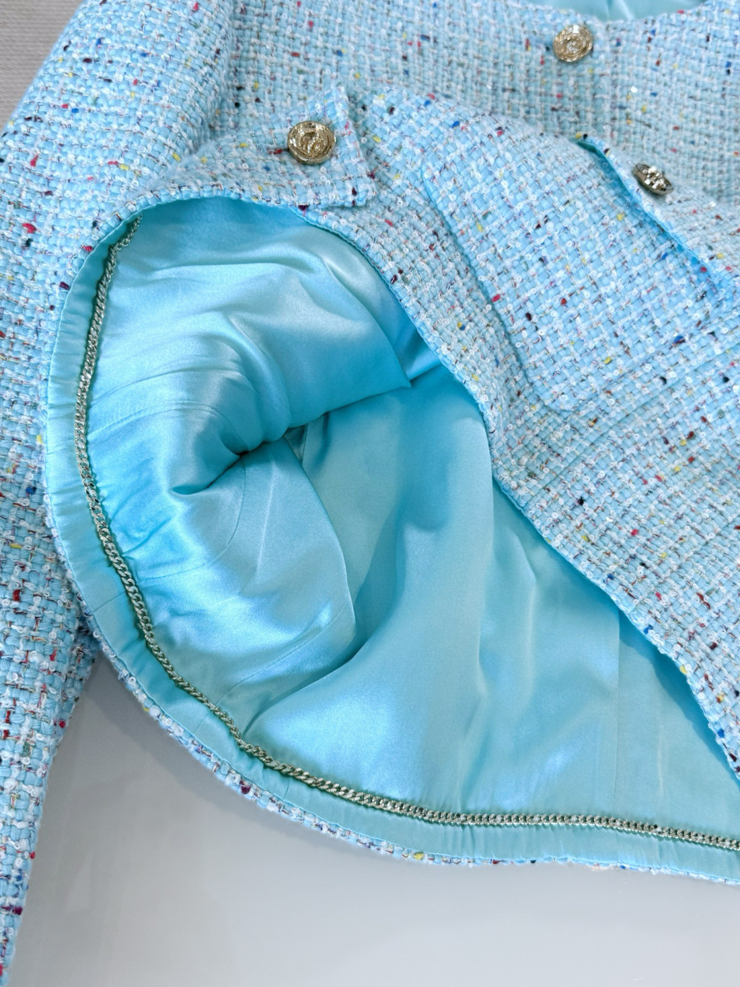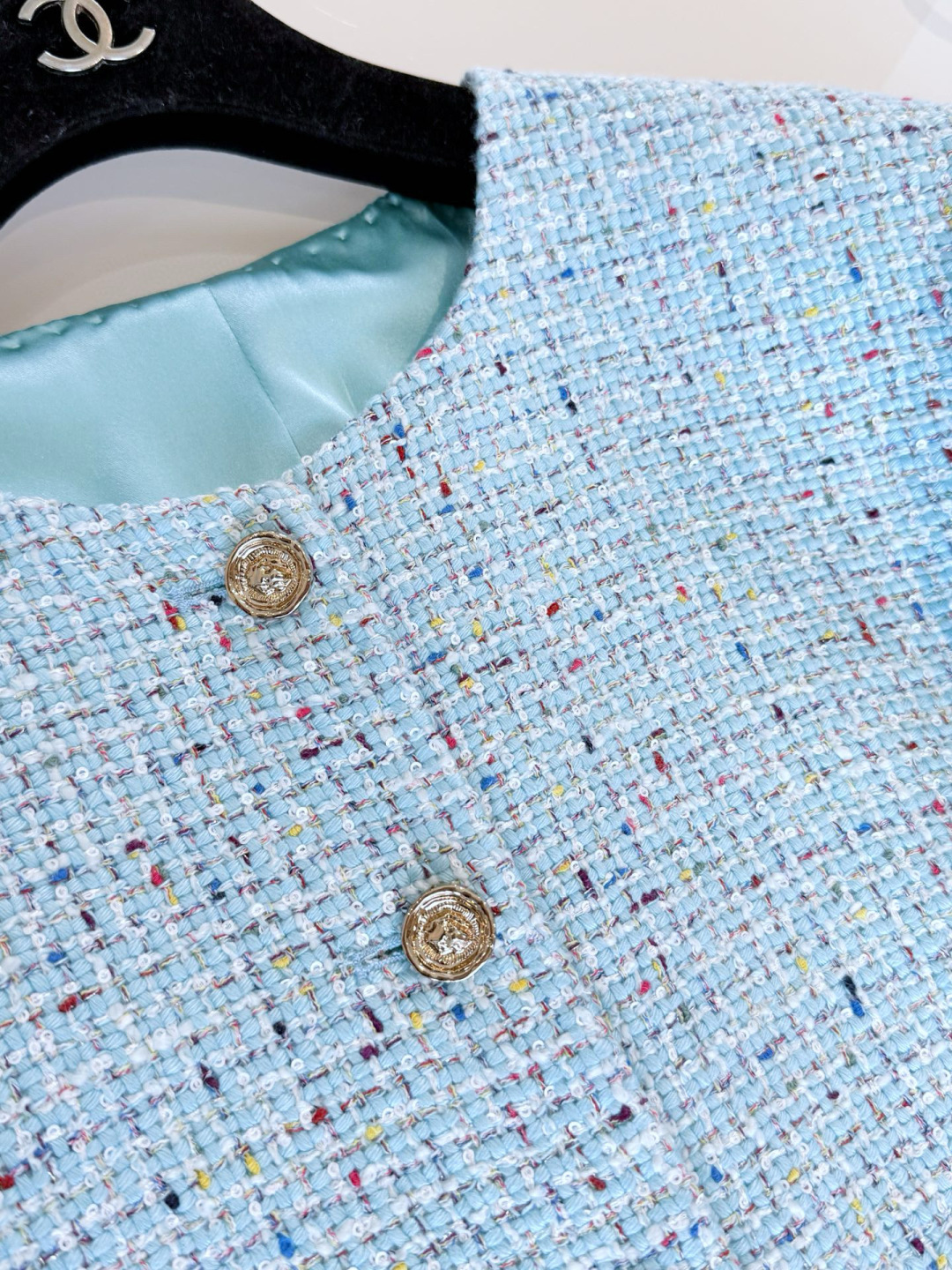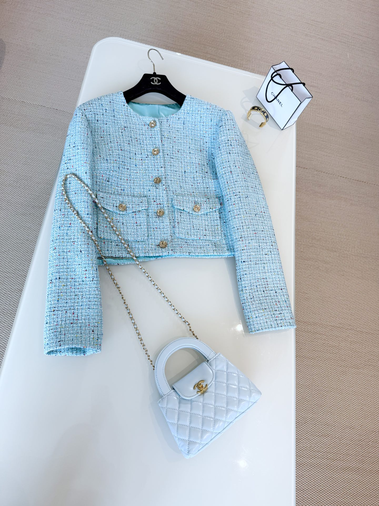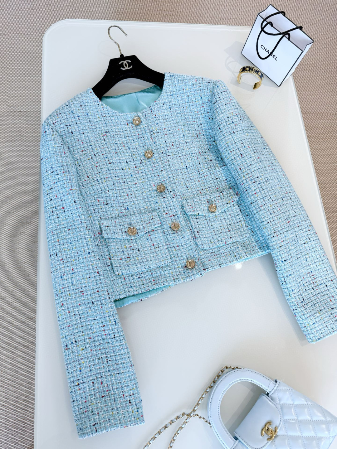 NIGO Chanel Women's Blue-green Woven Patchwork Tweed Short Jacket Autumn And Winter Fashion Elegant Single-breasted Jacket Ngvp #nigo2168