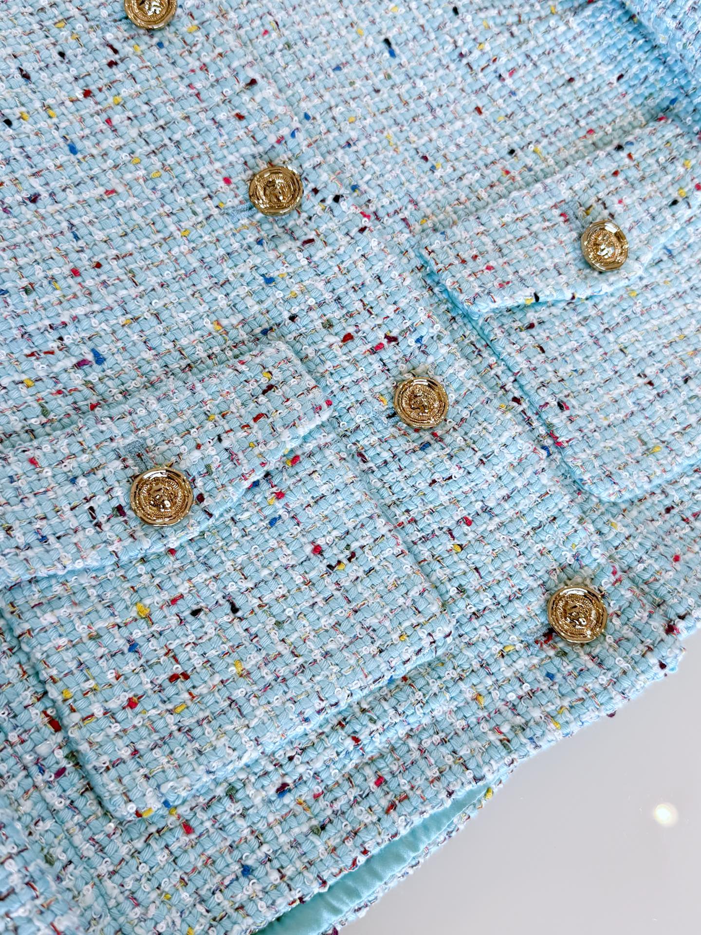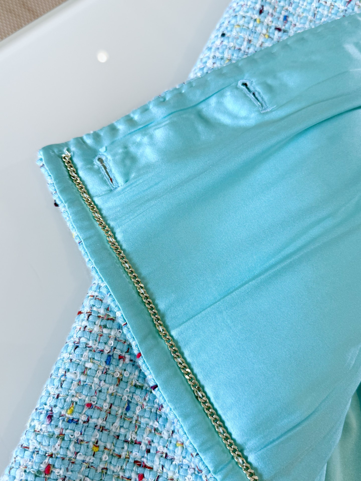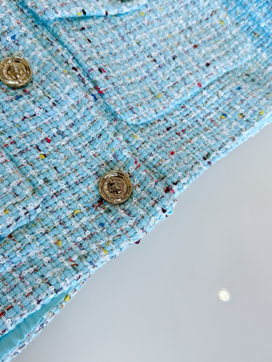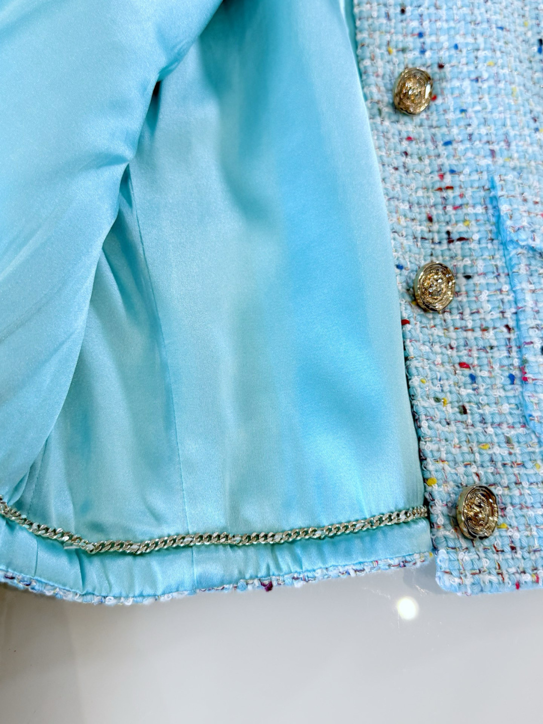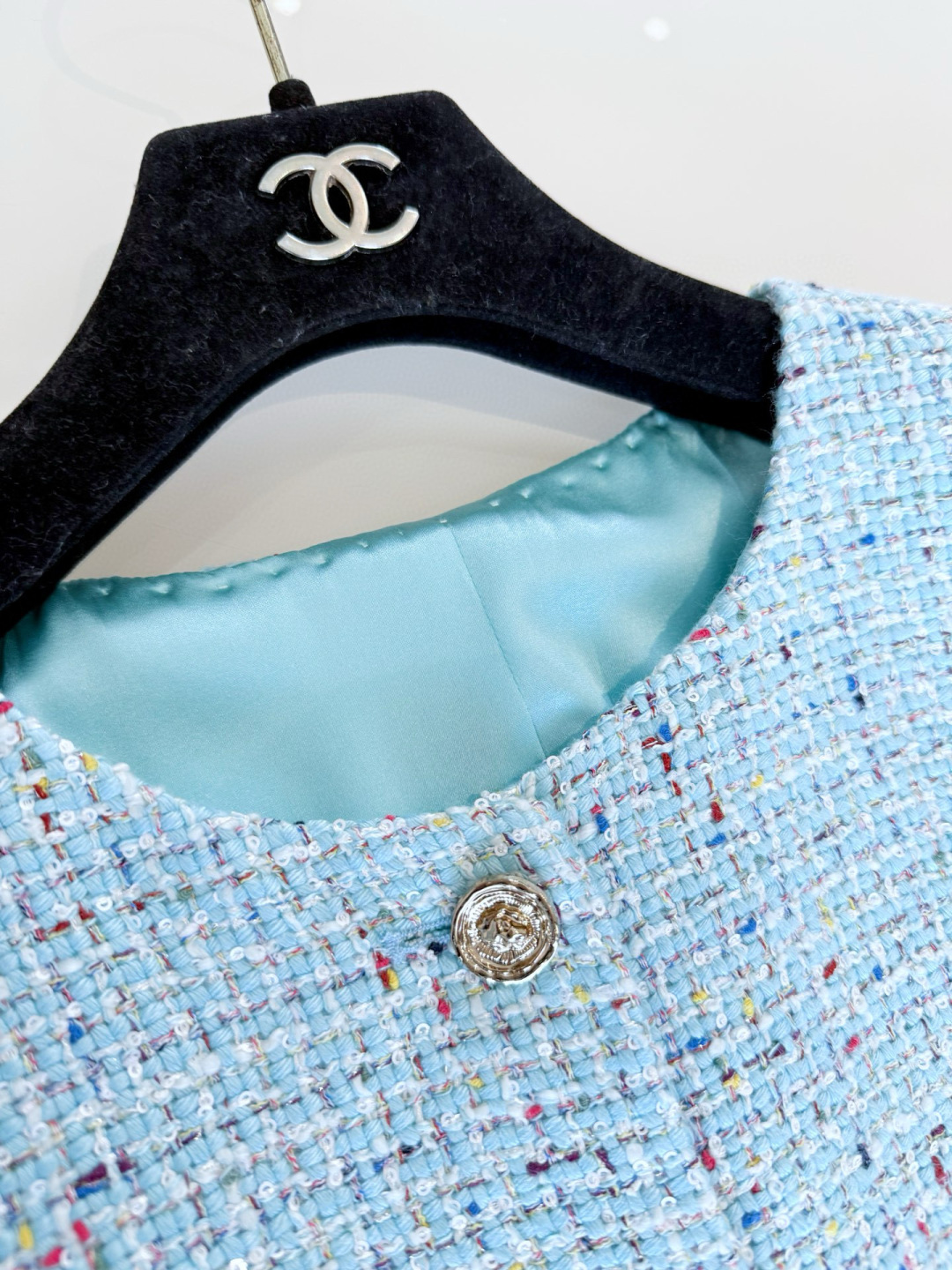 NIGO Chanel Women's Blue-green Woven Patchwork Tweed Short Jacket Autumn And Winter Fashion Elegant Single-breasted Jacket Ngvp #nigo2168