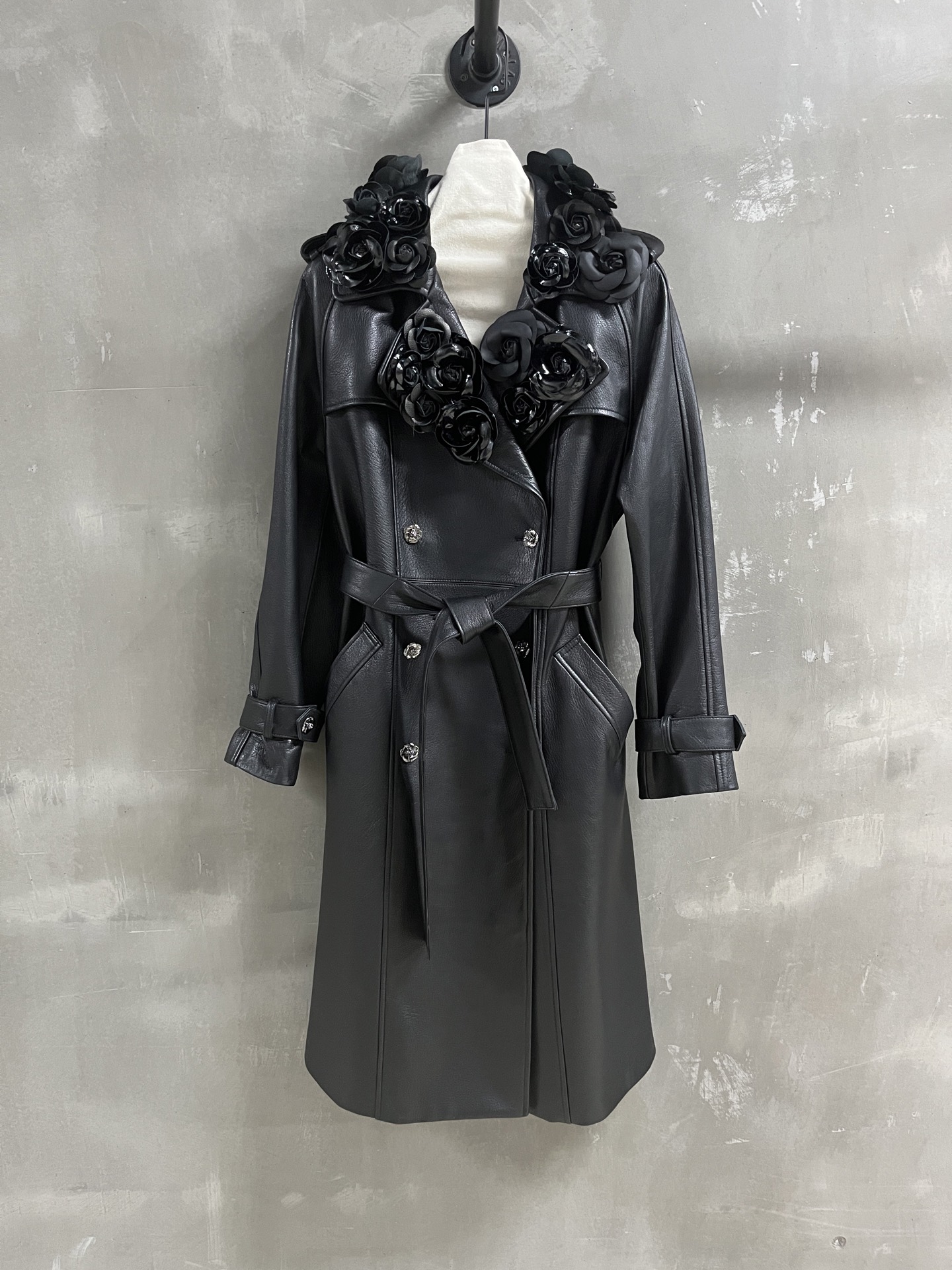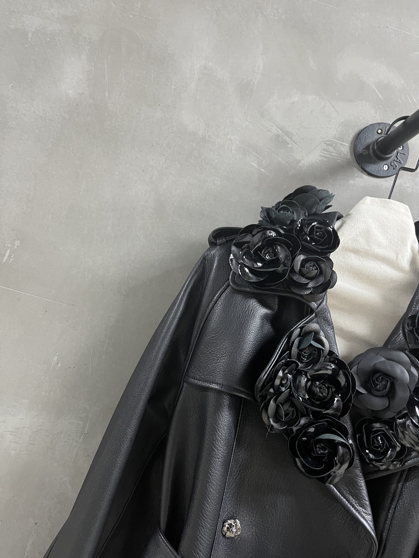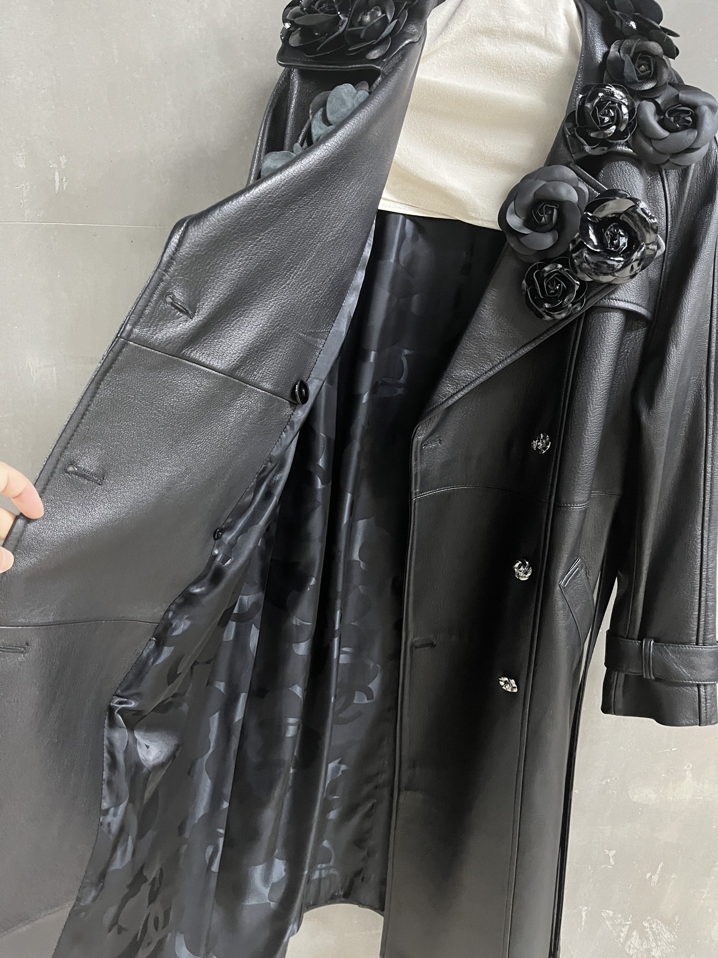 NIGO Chanel Women's Camellia Lapel Autumn/Winter Fashion Tie-Front Turkish Deer-Print Leather Jacket Ngvp #nigo2583
