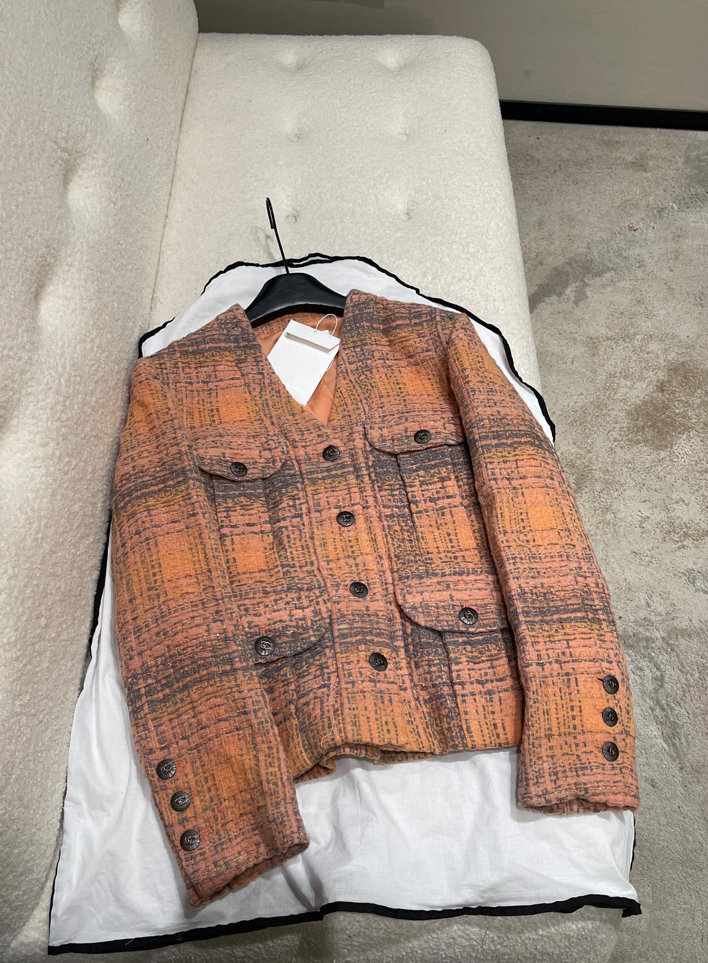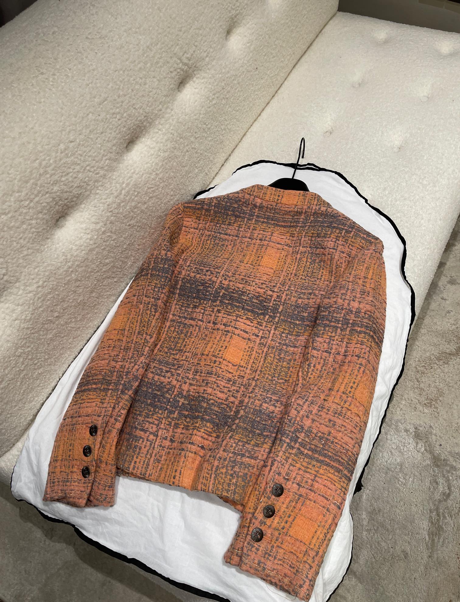 NIGO Chanel Women's Cotton & Wool Tweed V-Neck Spring Check Single Breasted Fitted Long Sleeve Jacket Coat Ngvp #nigo9658