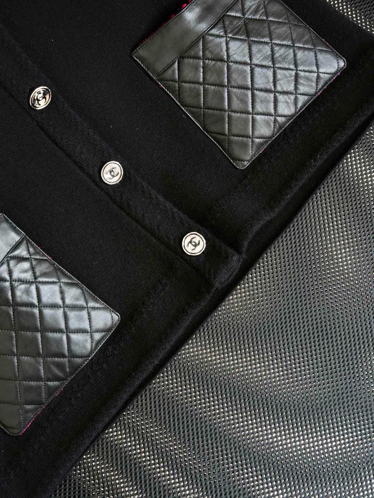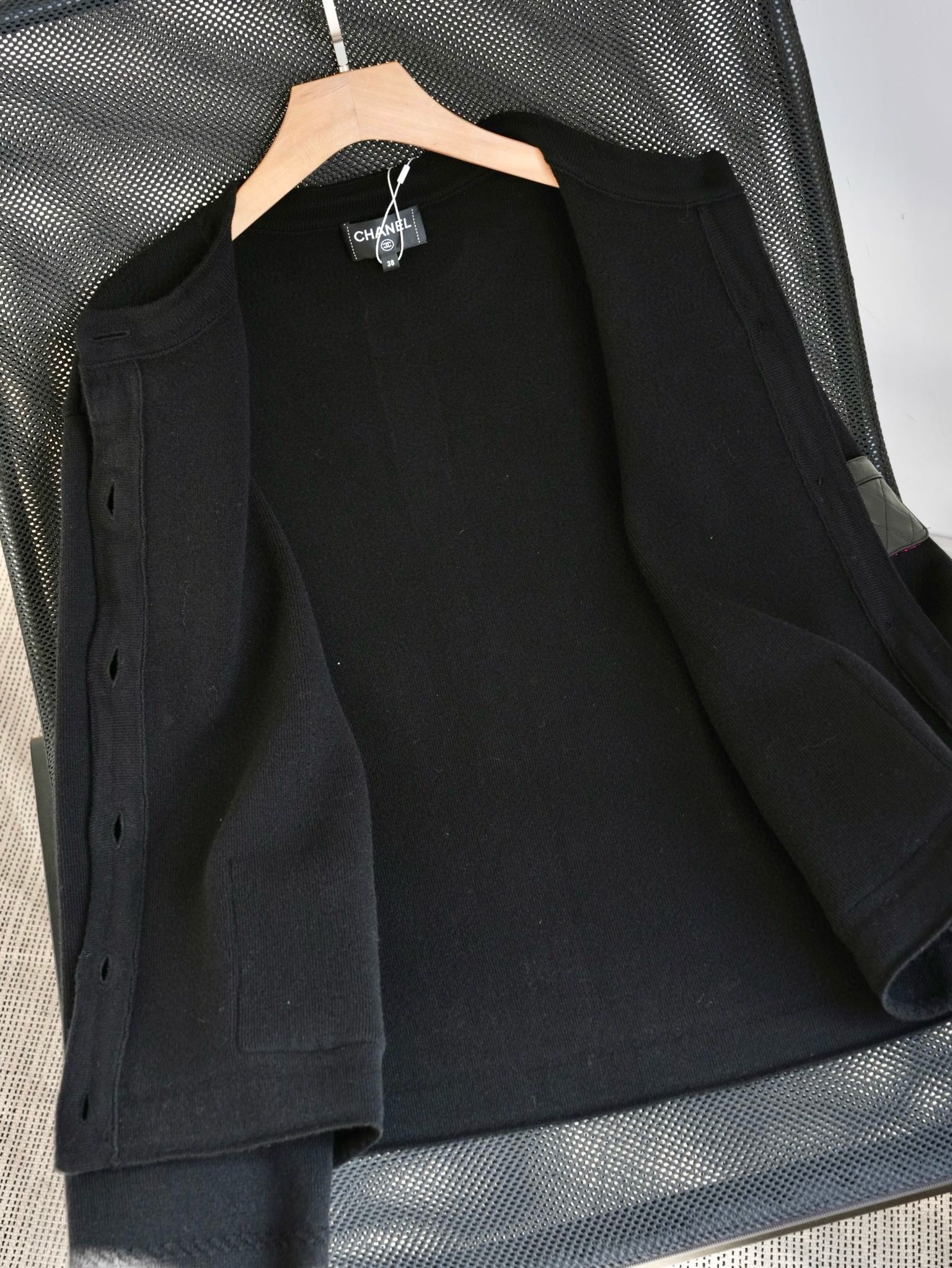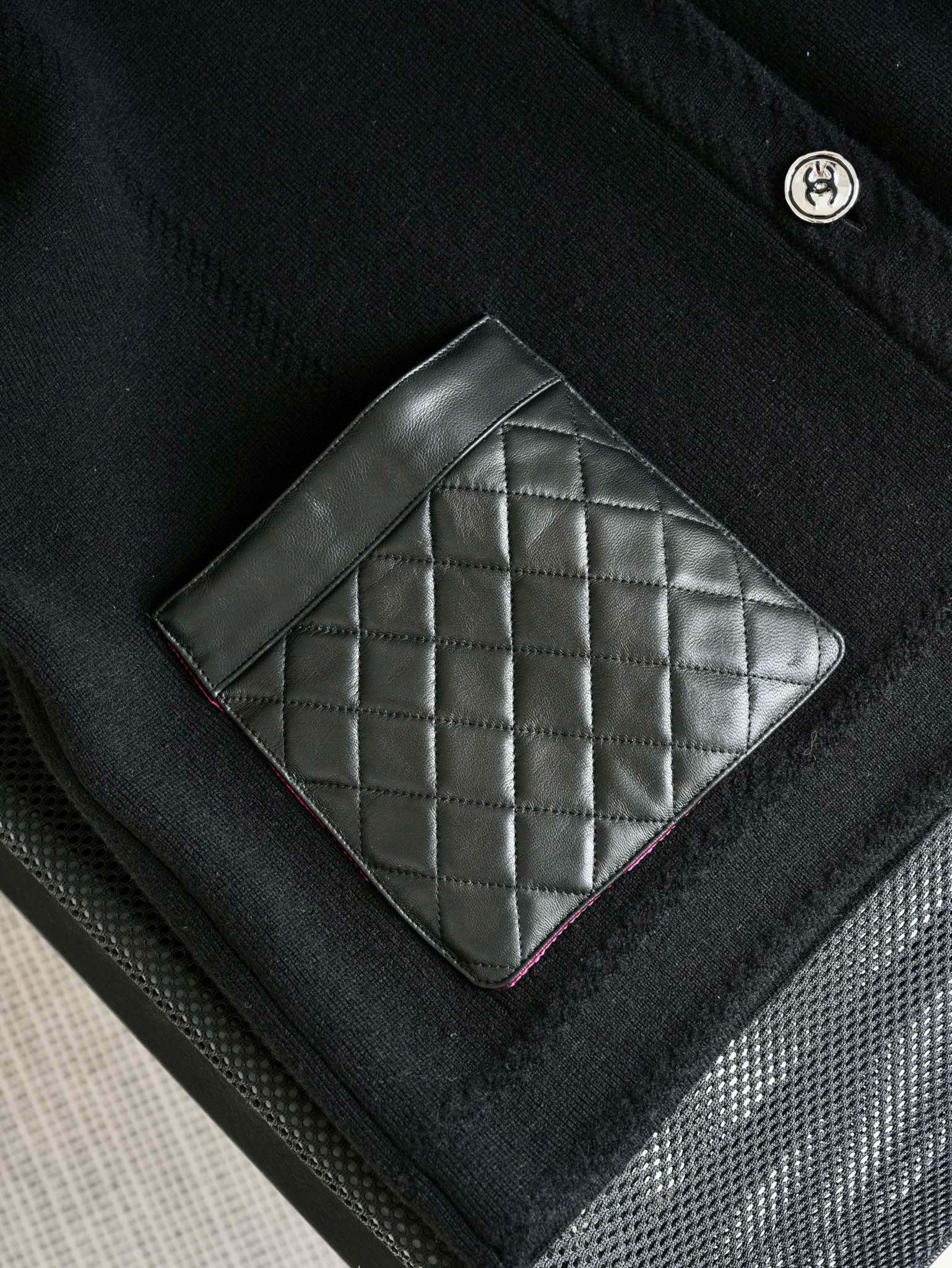 NIGO Chanel Women's Fall And Winter Black Leather Pockets Single Breasted Round Neck Long Sleeve Jacket #nigo73651