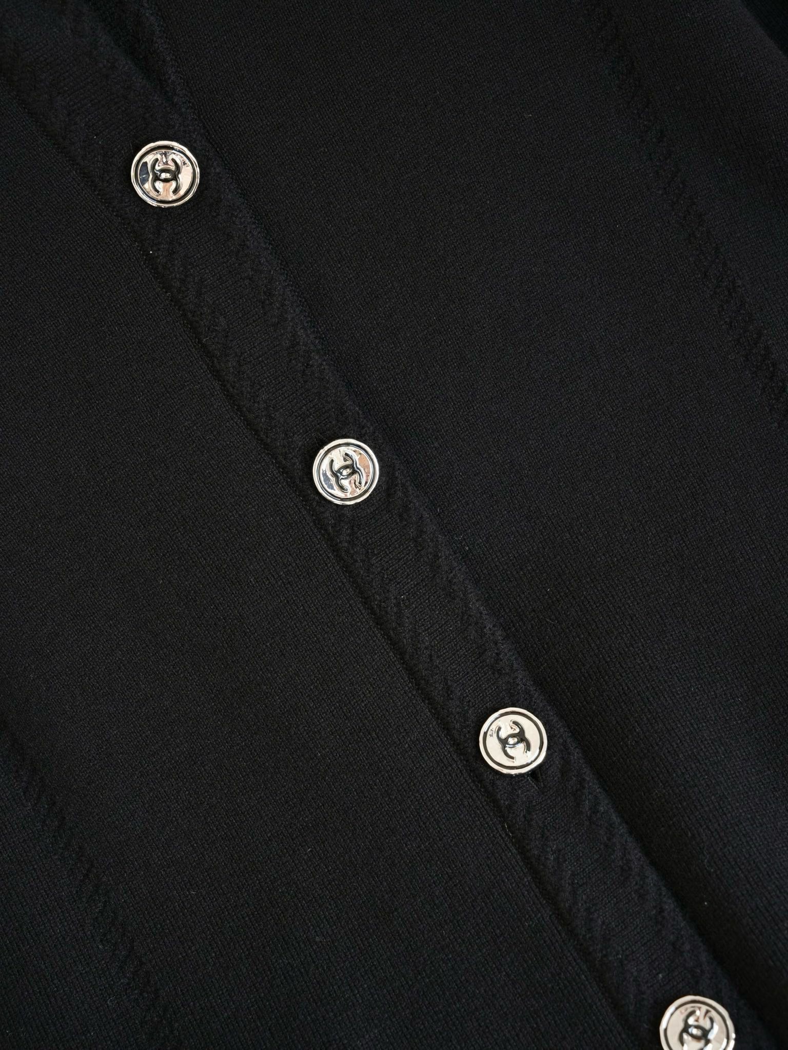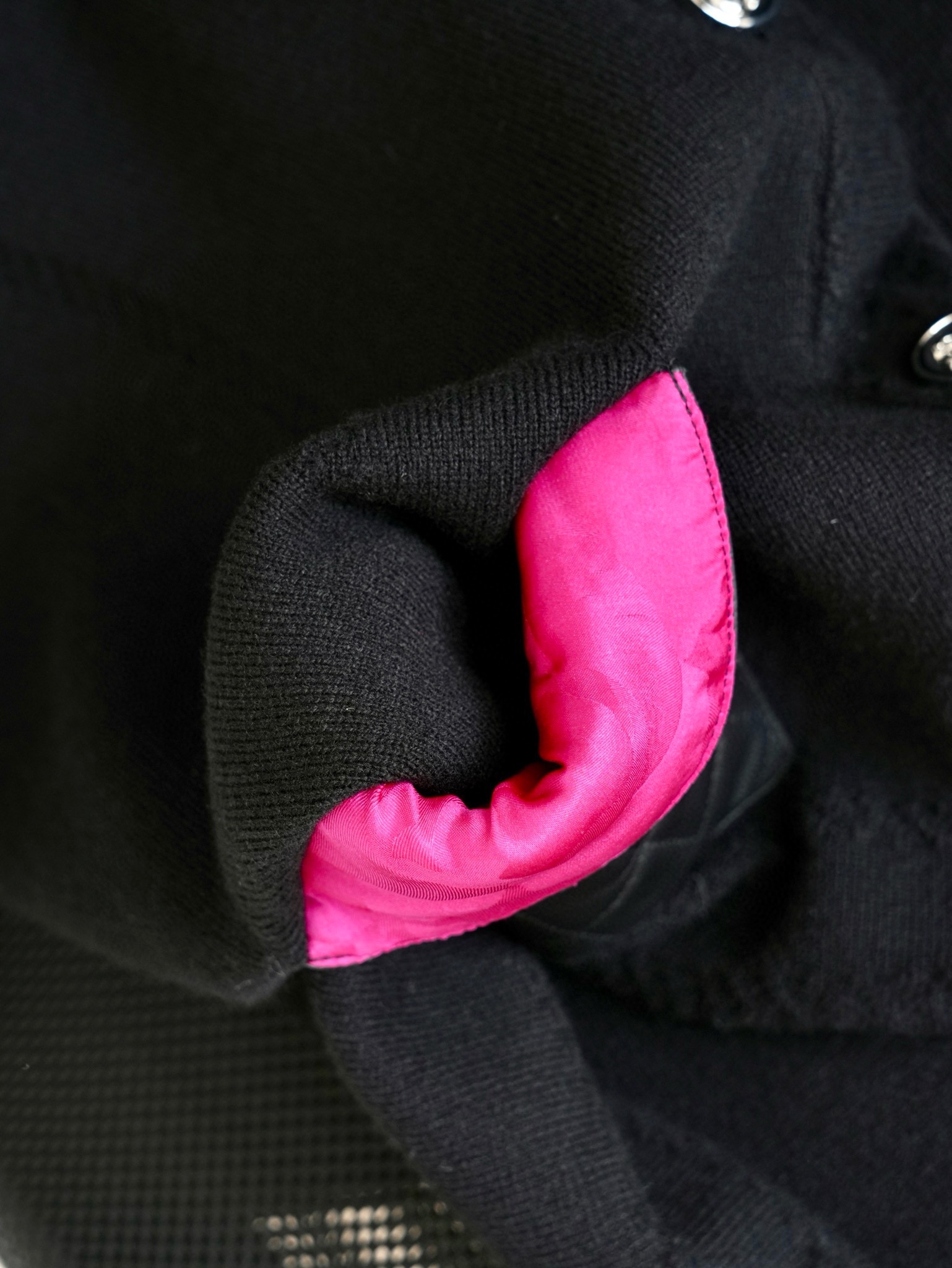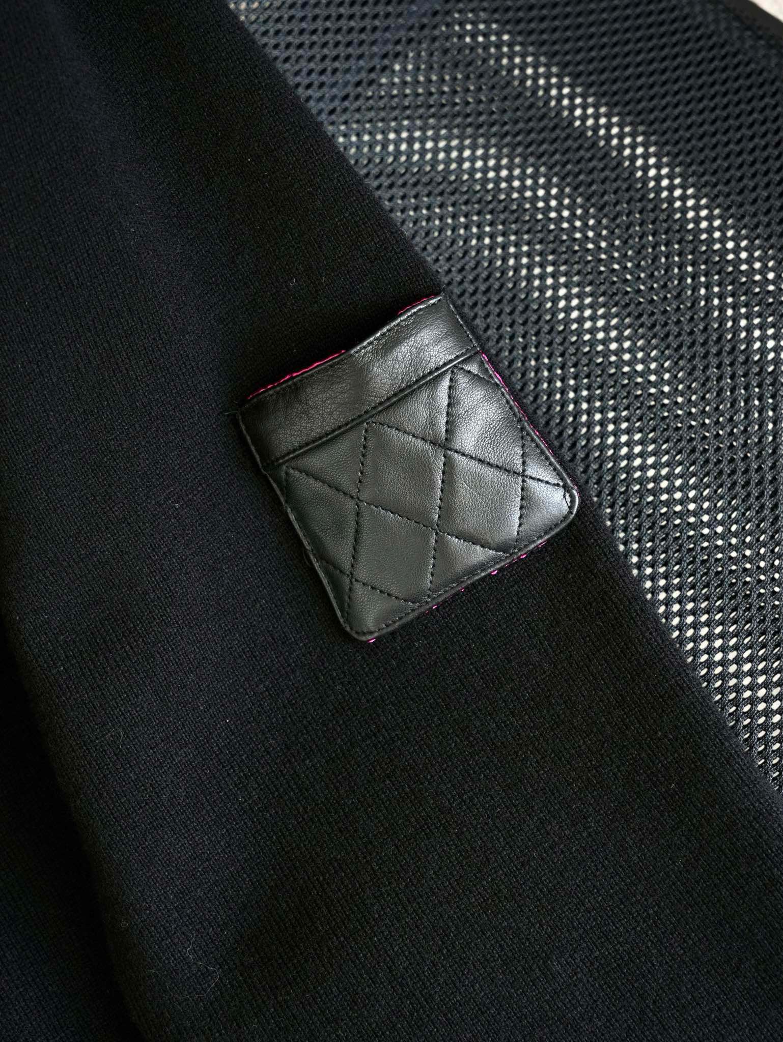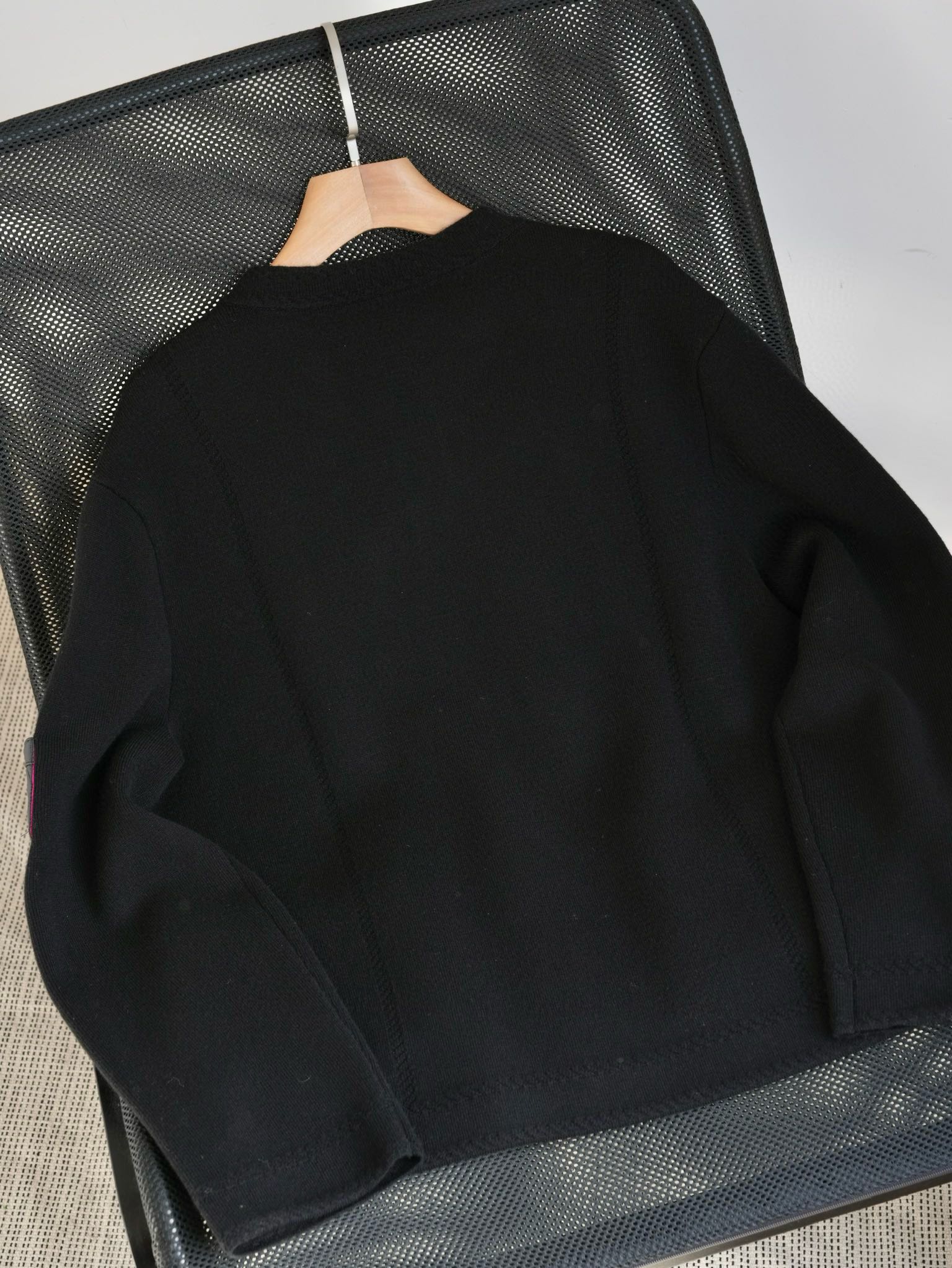 NIGO Chanel Women's Fall And Winter Black Leather Pockets Single Breasted Round Neck Long Sleeve Jacket #nigo73651