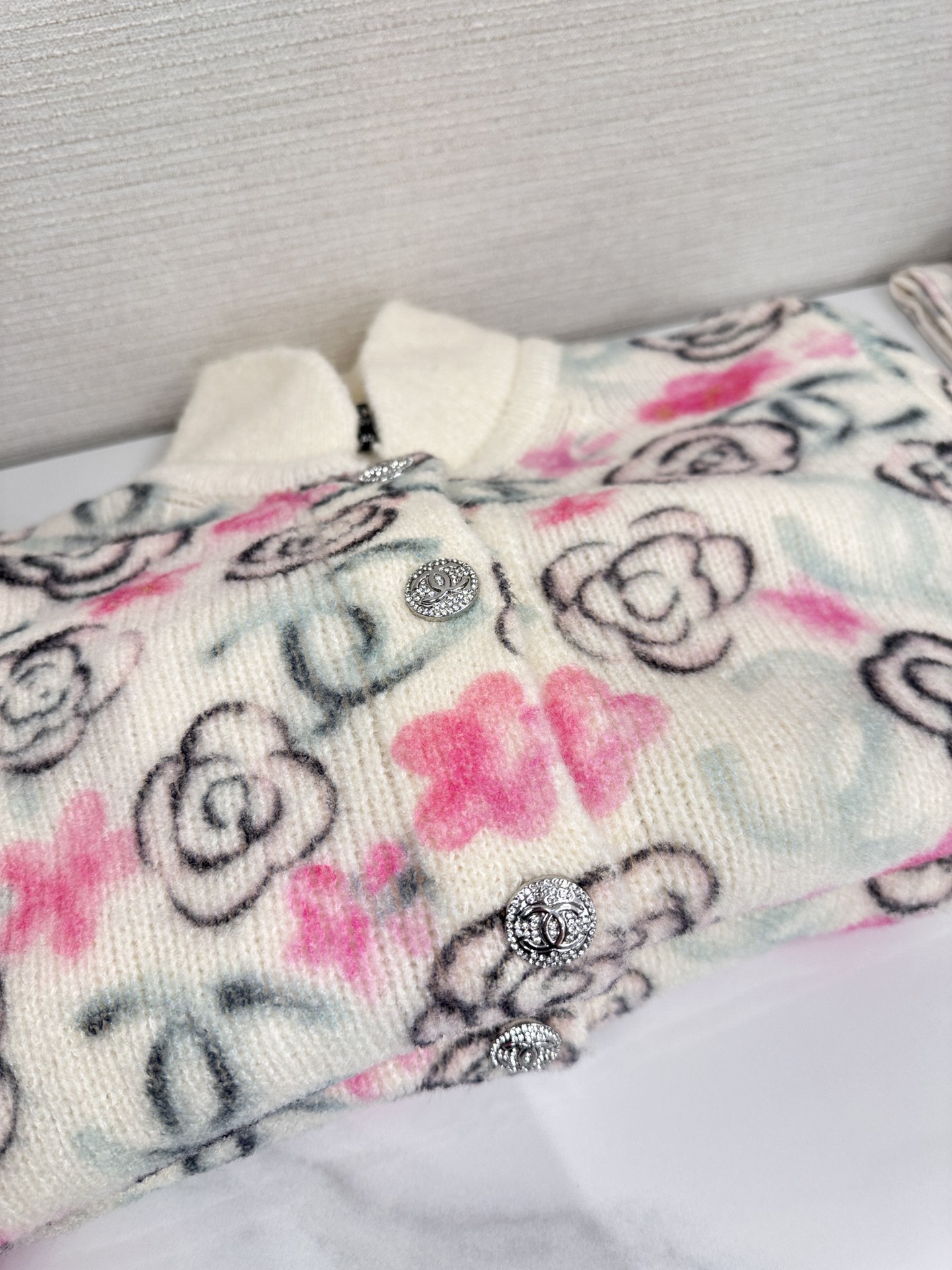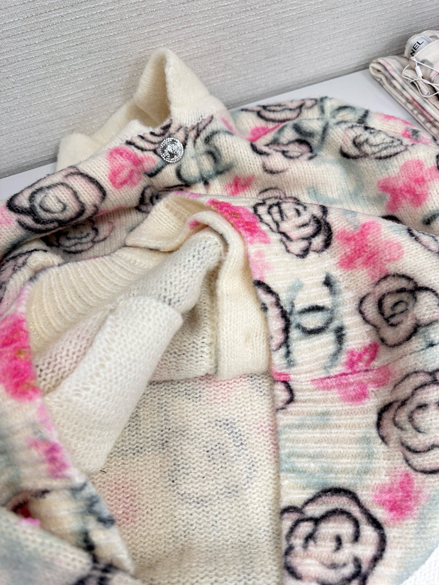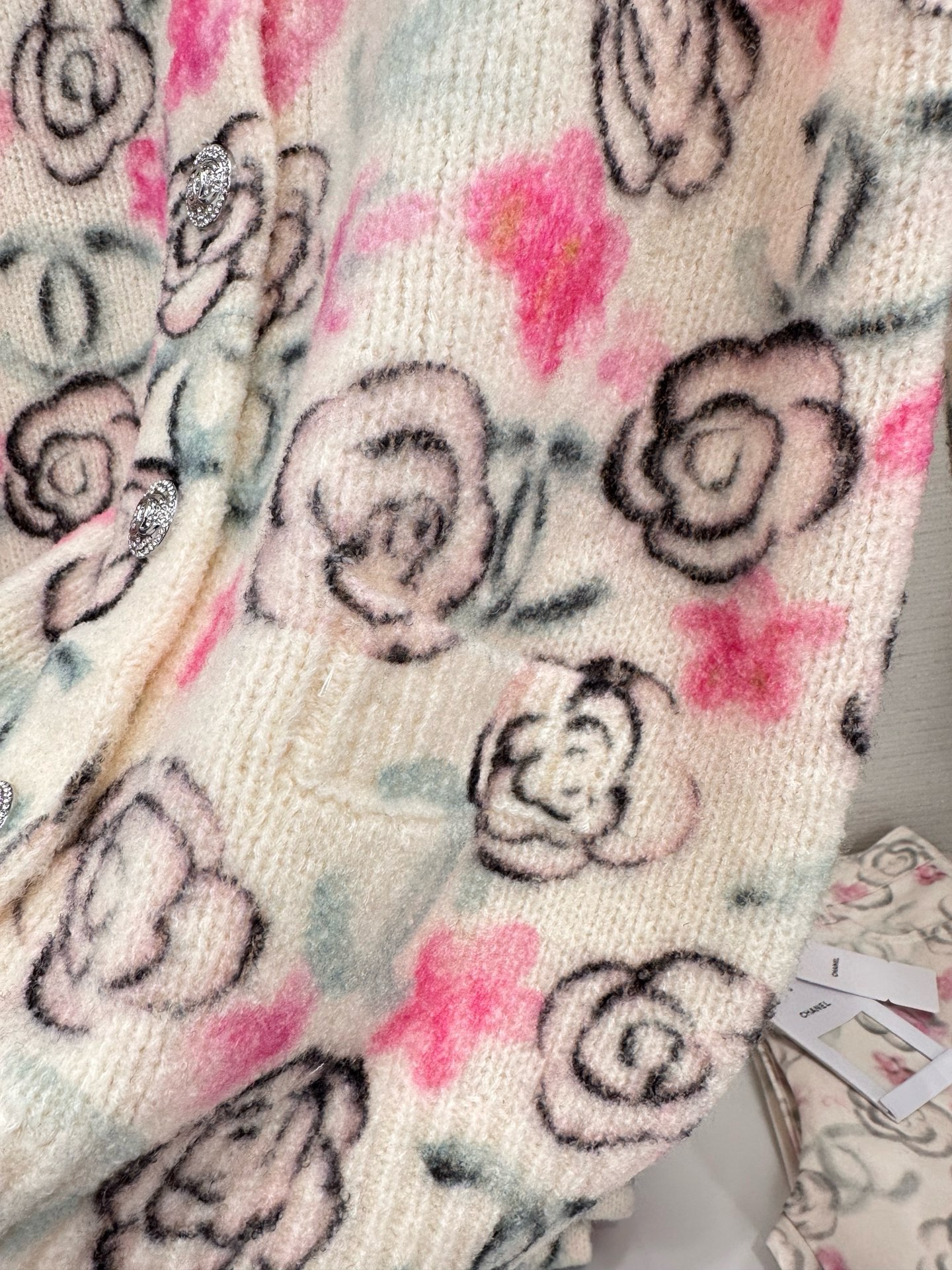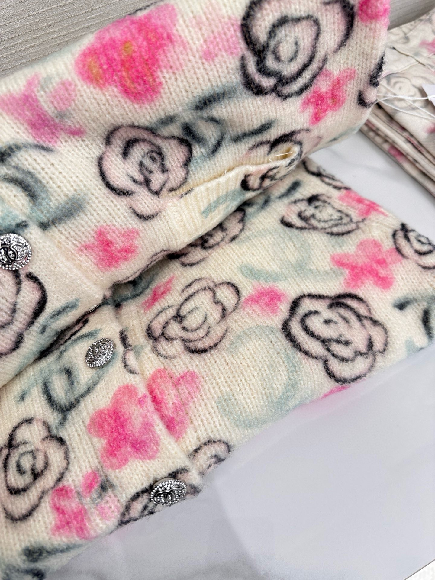 NIGO Chanel Women's Fall And Winter Floral Full Print Pattern Cashmere Single Breasted Long Sleeved Knit Jacket #nigo74369