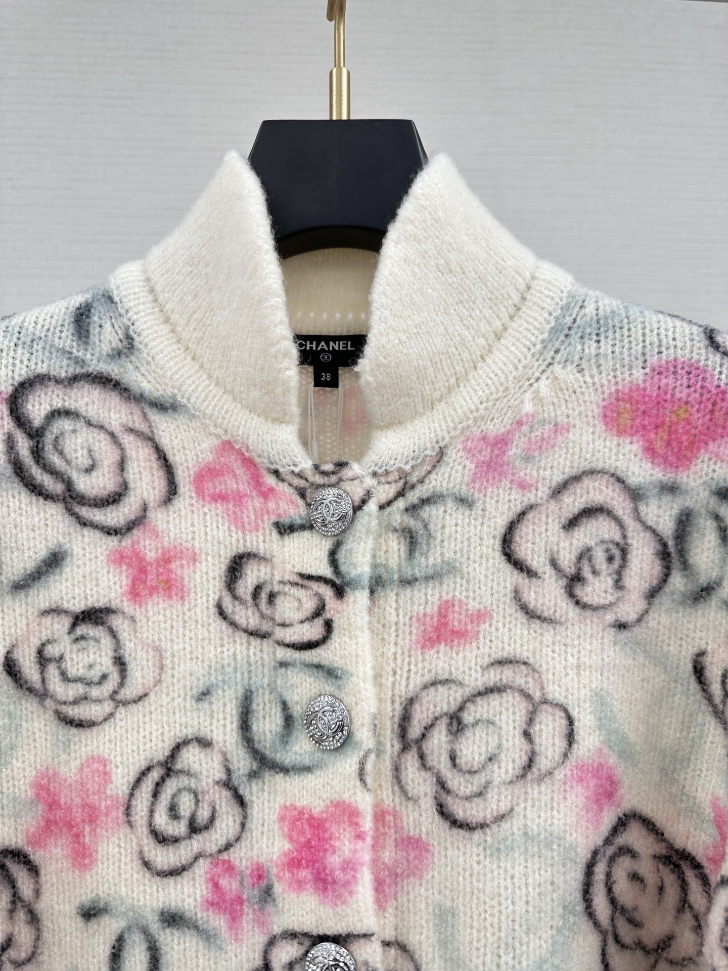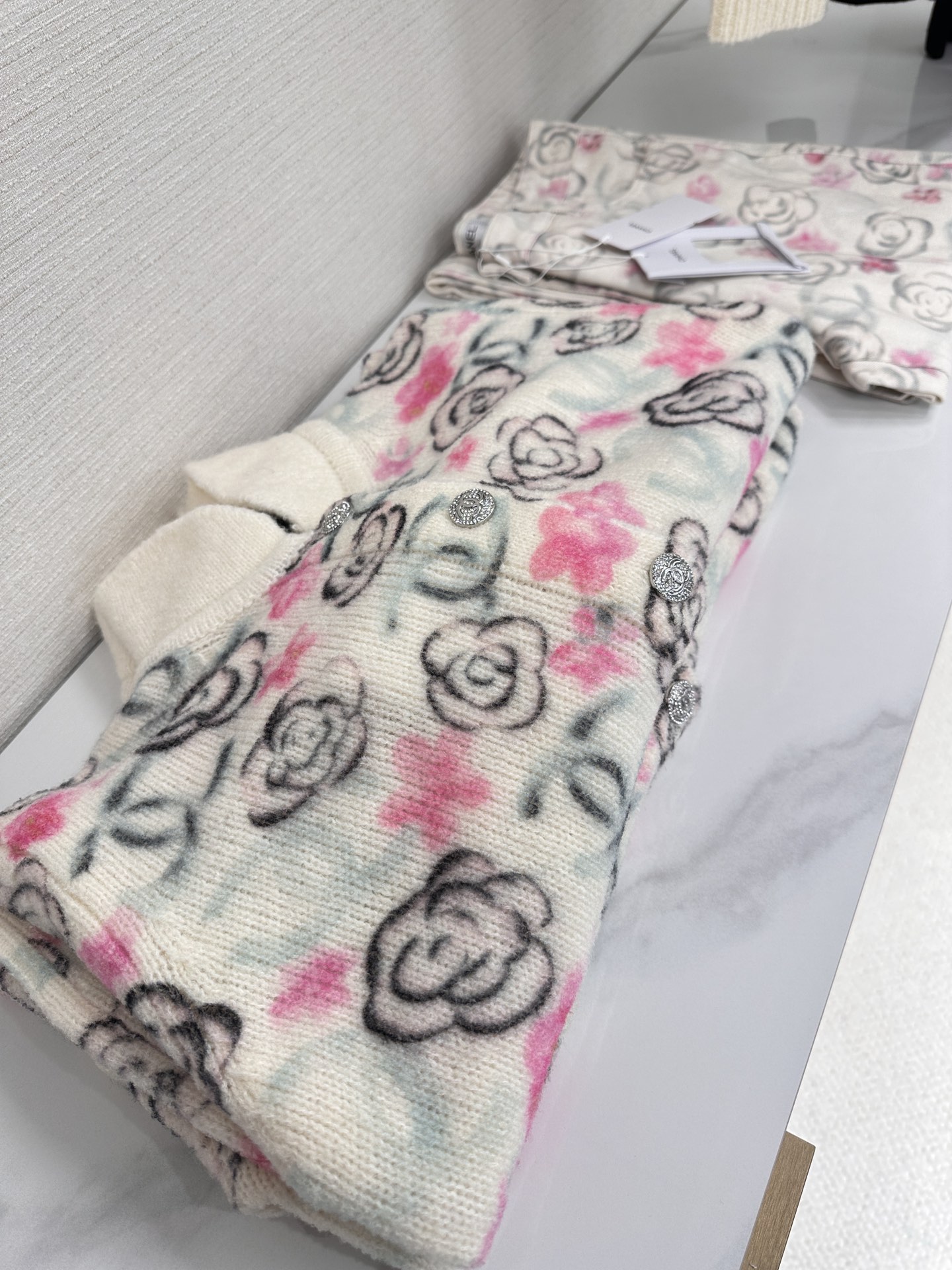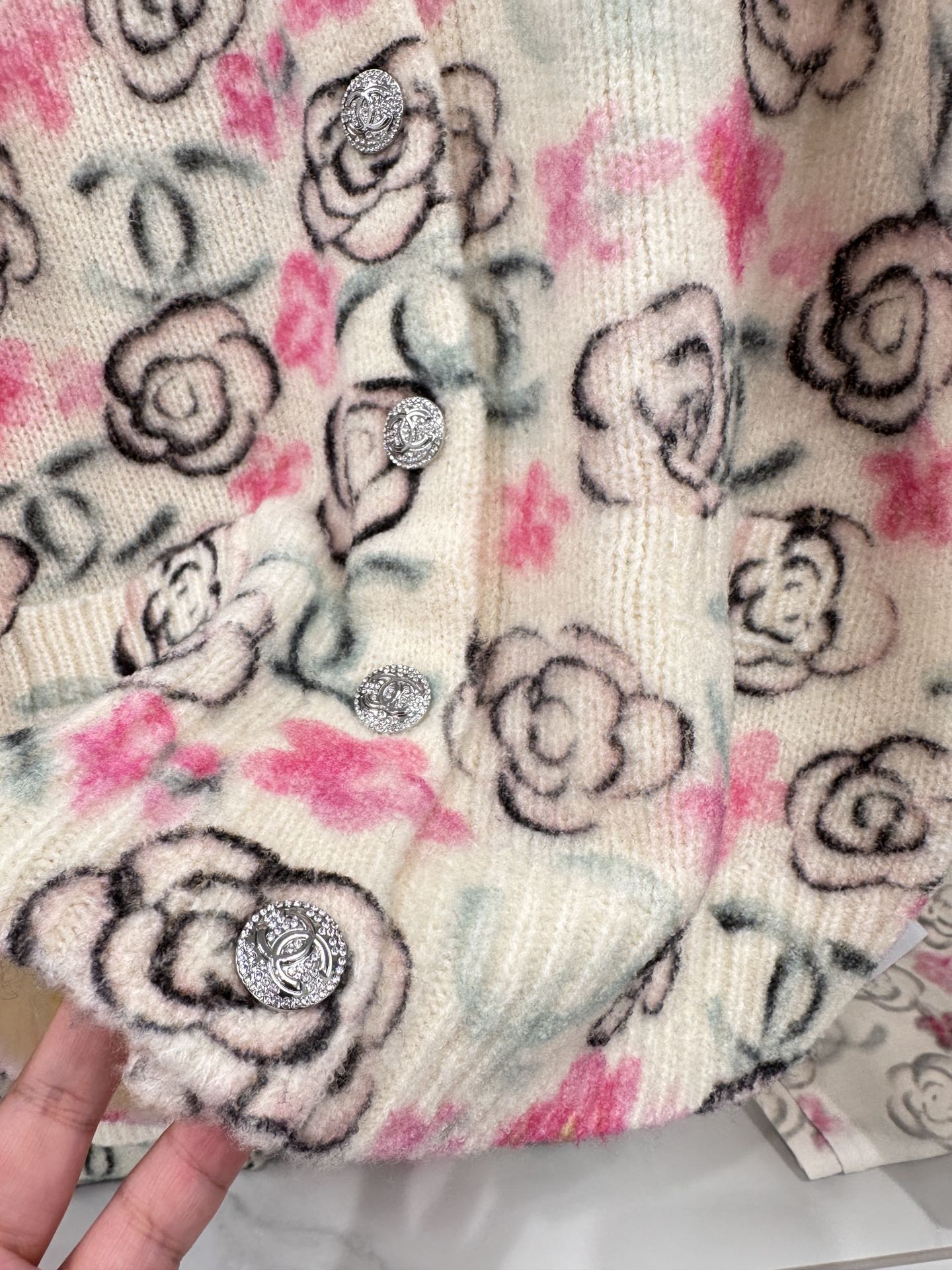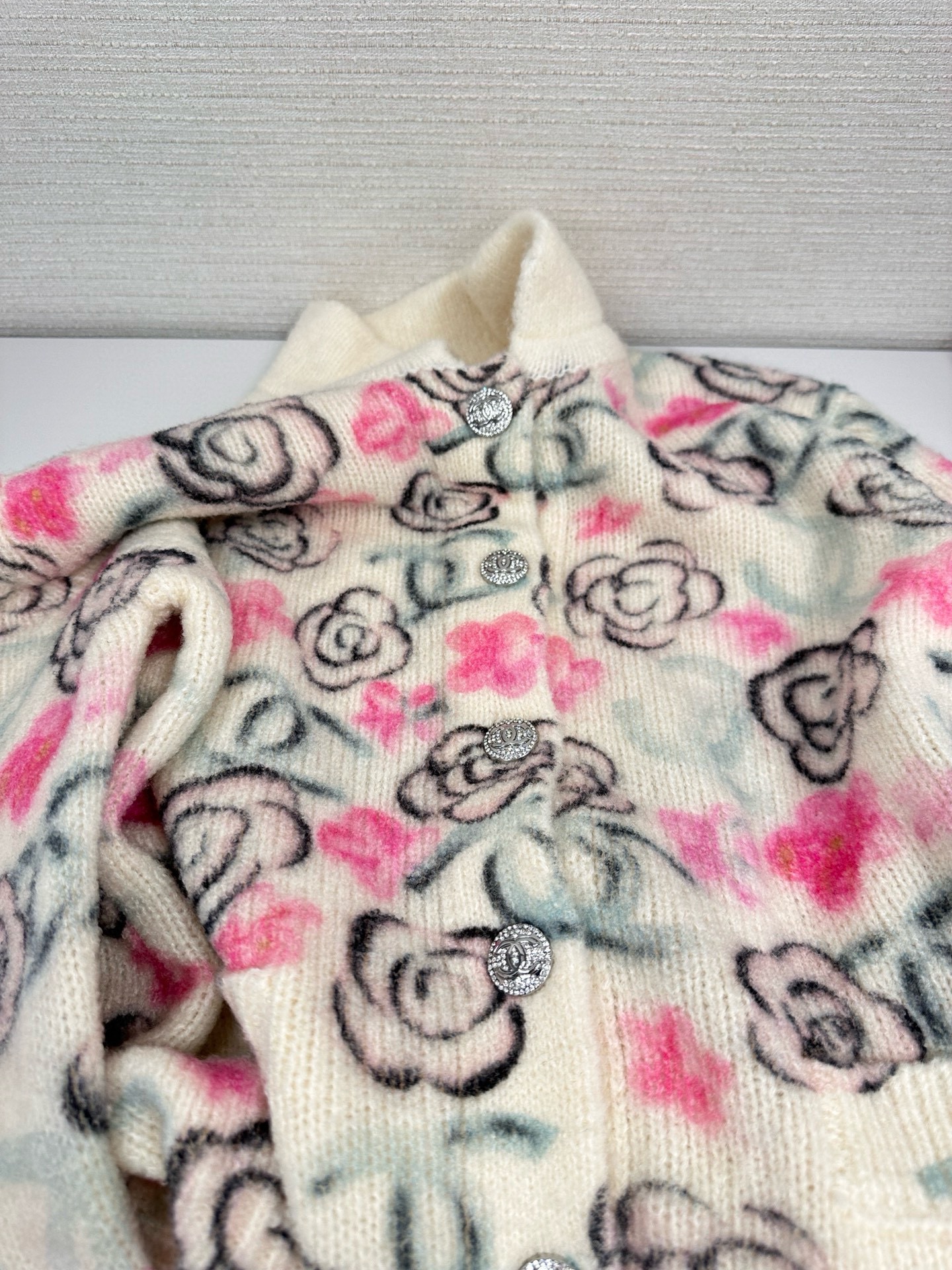 NIGO Chanel Women's Fall And Winter Floral Full Print Pattern Cashmere Single Breasted Long Sleeved Knit Jacket #nigo74369