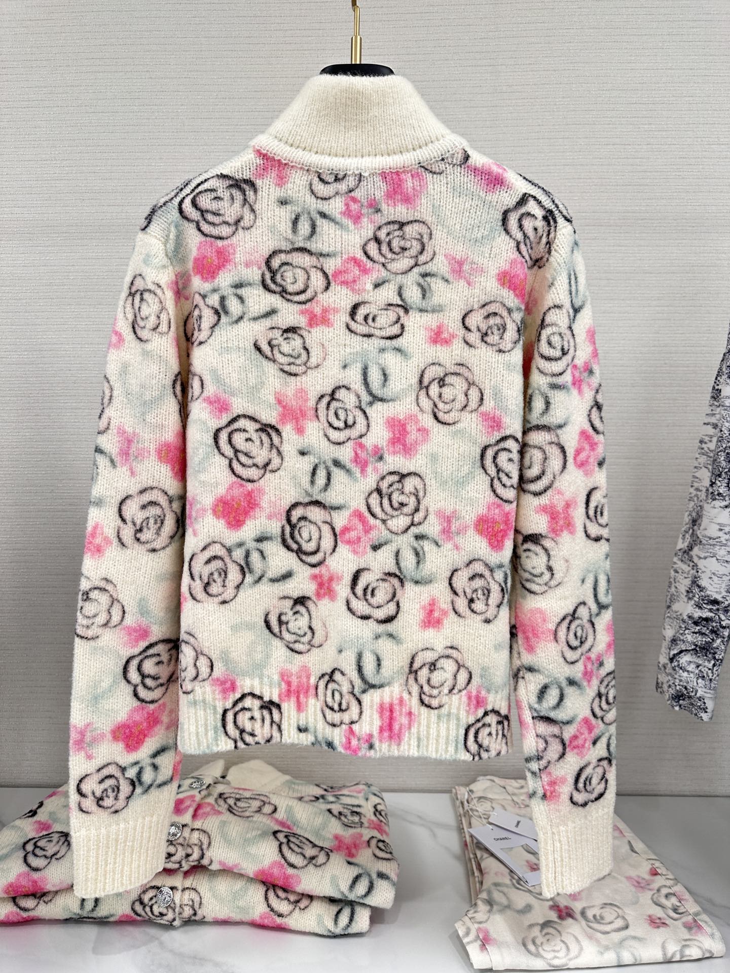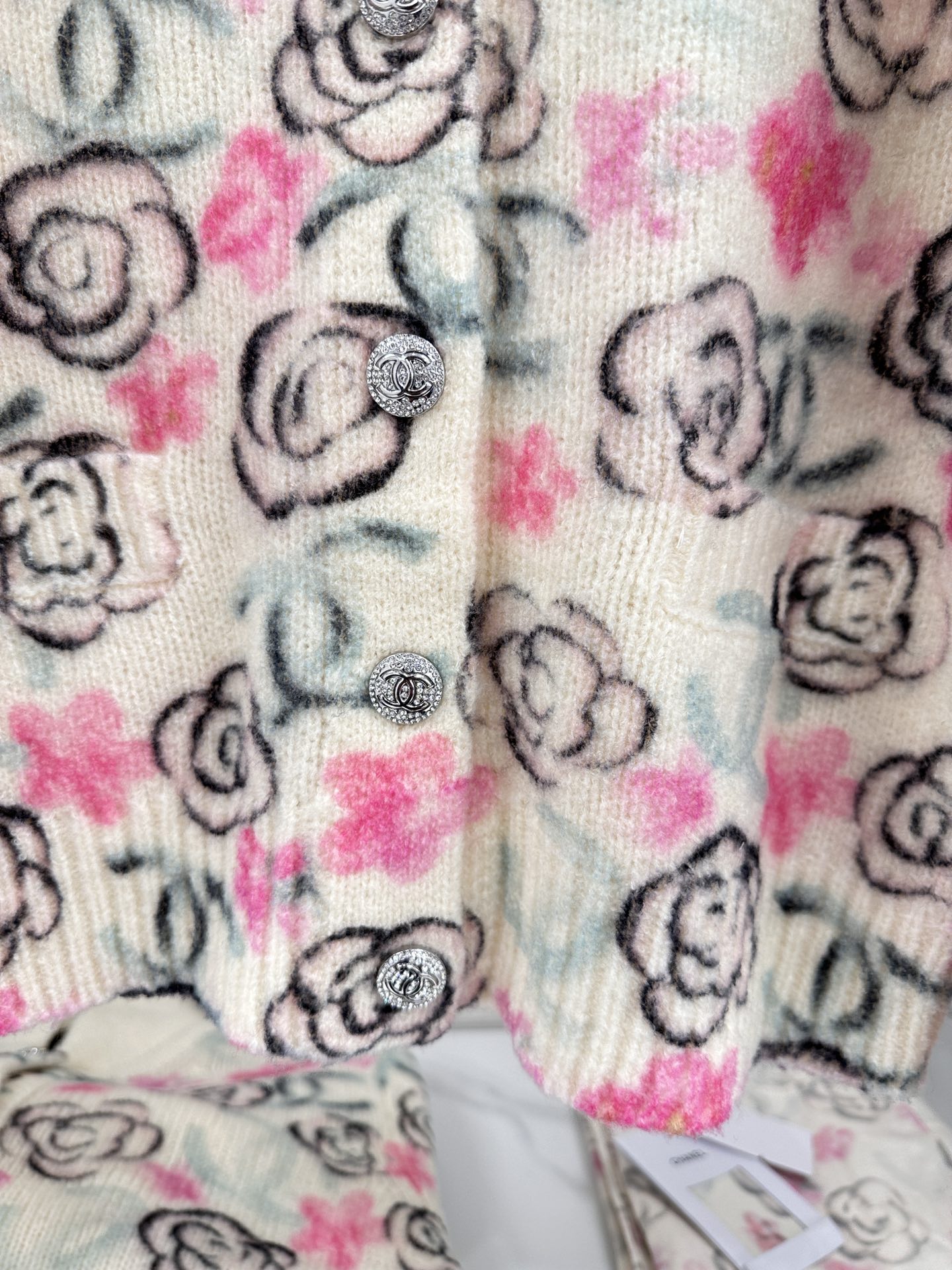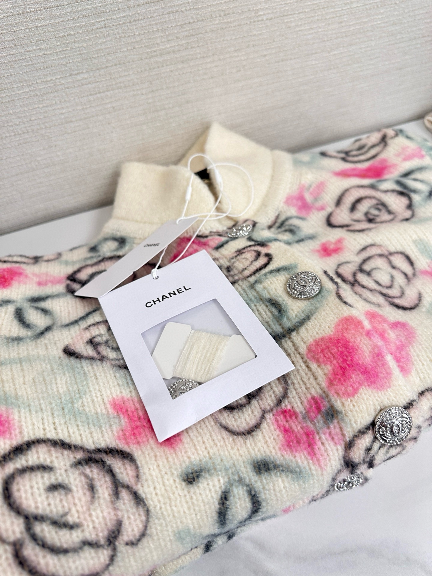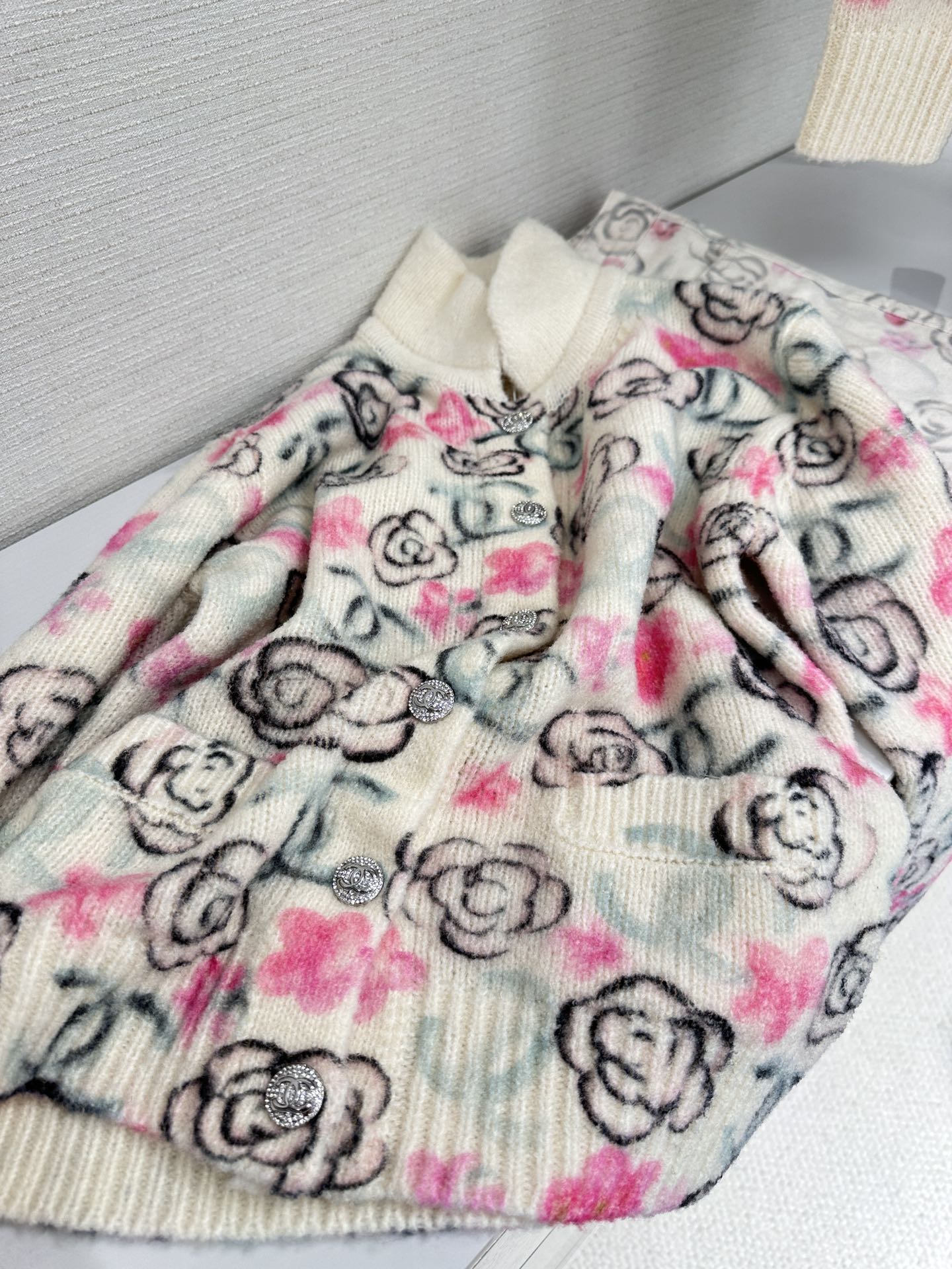 NIGO Chanel Women's Fall And Winter Floral Full Print Pattern Cashmere Single Breasted Long Sleeved Knit Jacket #nigo74369