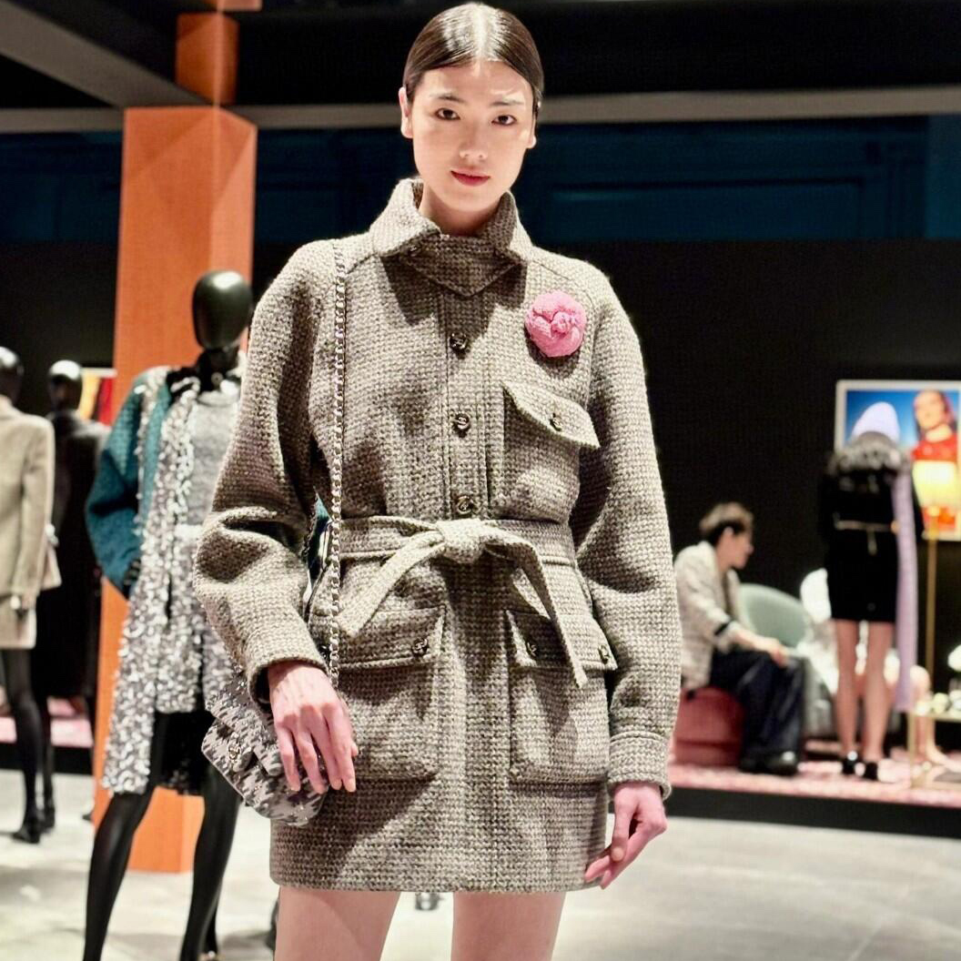 NIGO Chanel Women's Fall/Winter Fashion Classic Lapel Half Button Wool Tweed Belted Coat Jacket #nigo79544