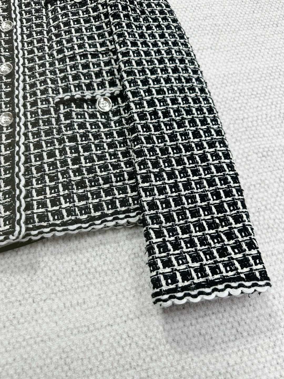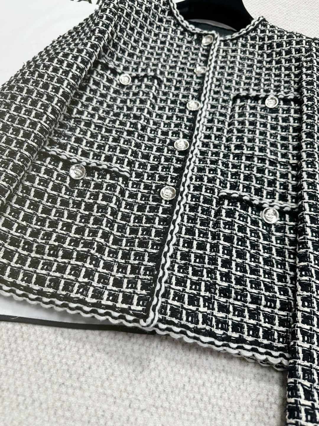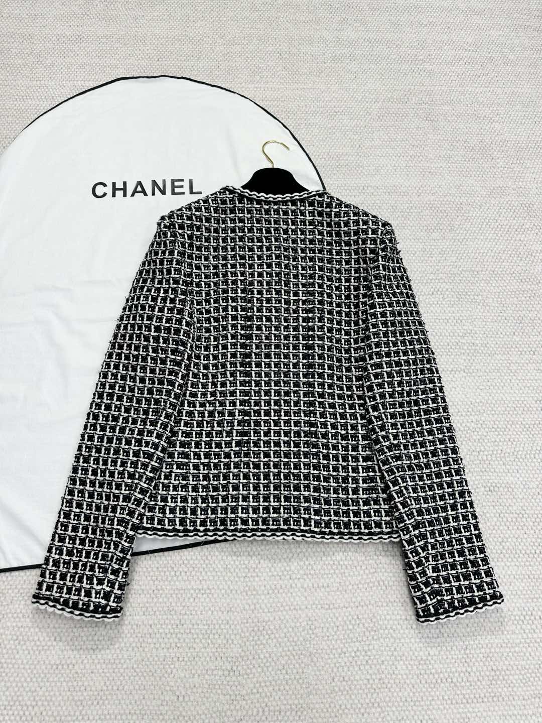 NIGO Chanel Women's Spring And Fall Plaid Woven Jacket Tweed Fashion Temperament Black And White Round Neck Single-breasted Jacket Ngvp #nigo9993