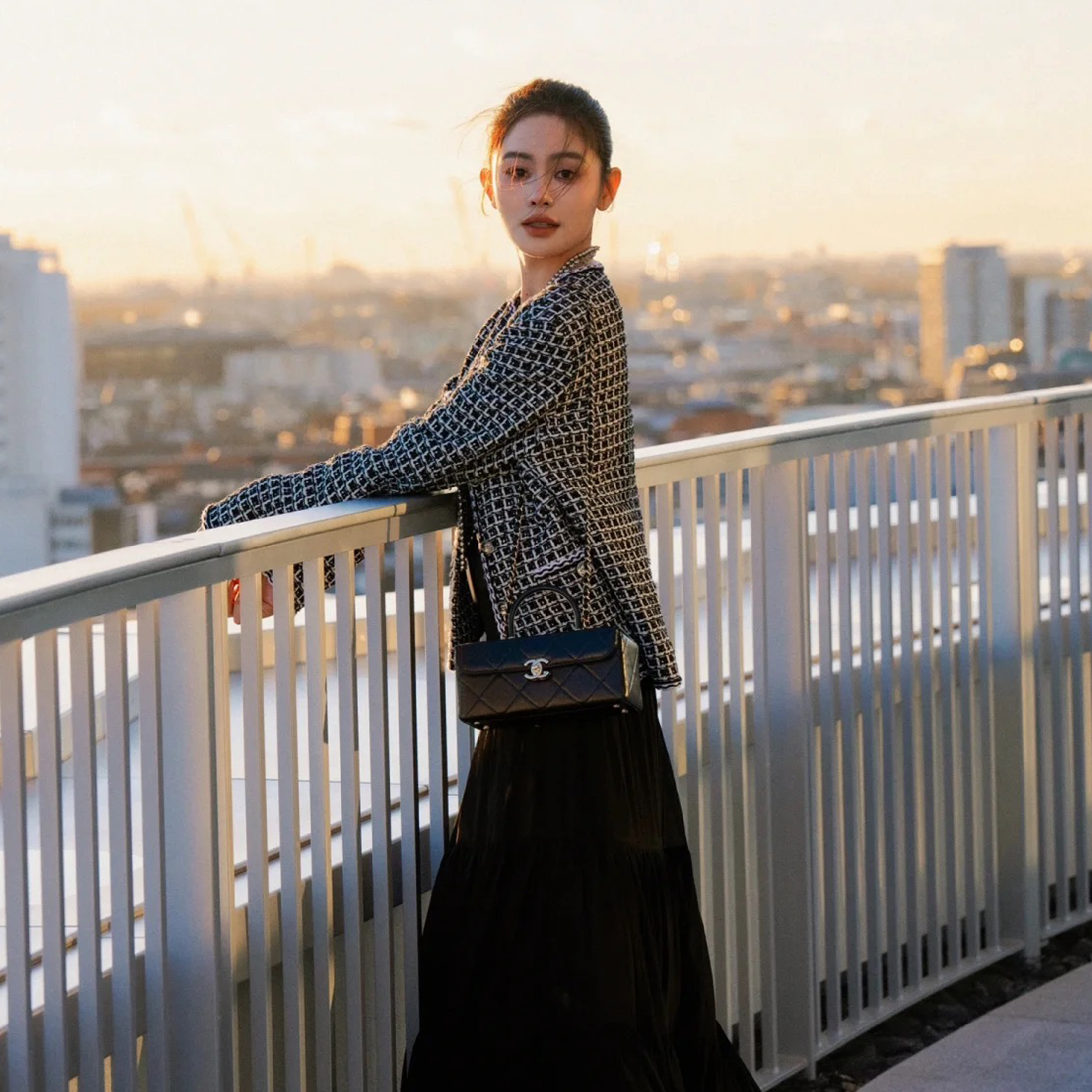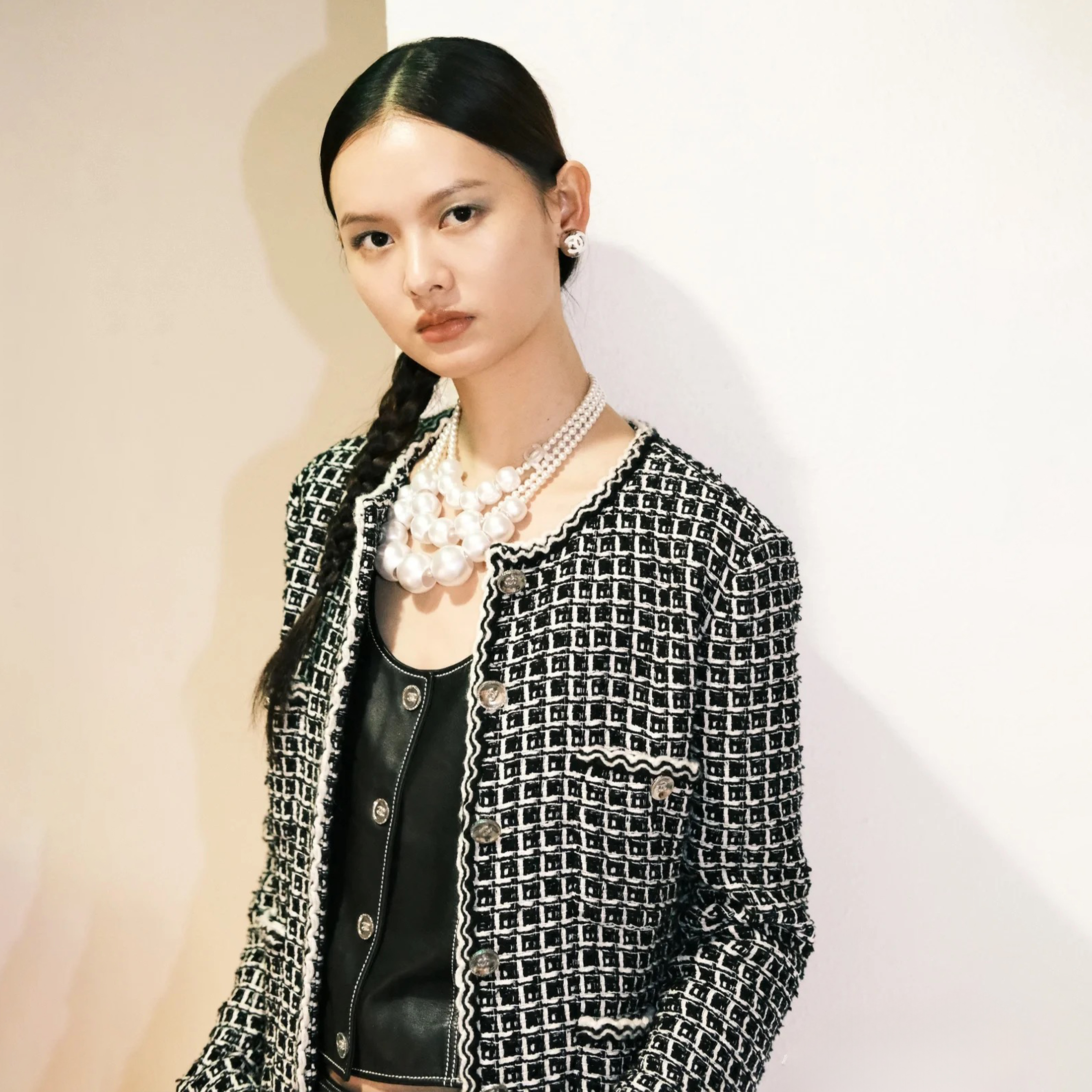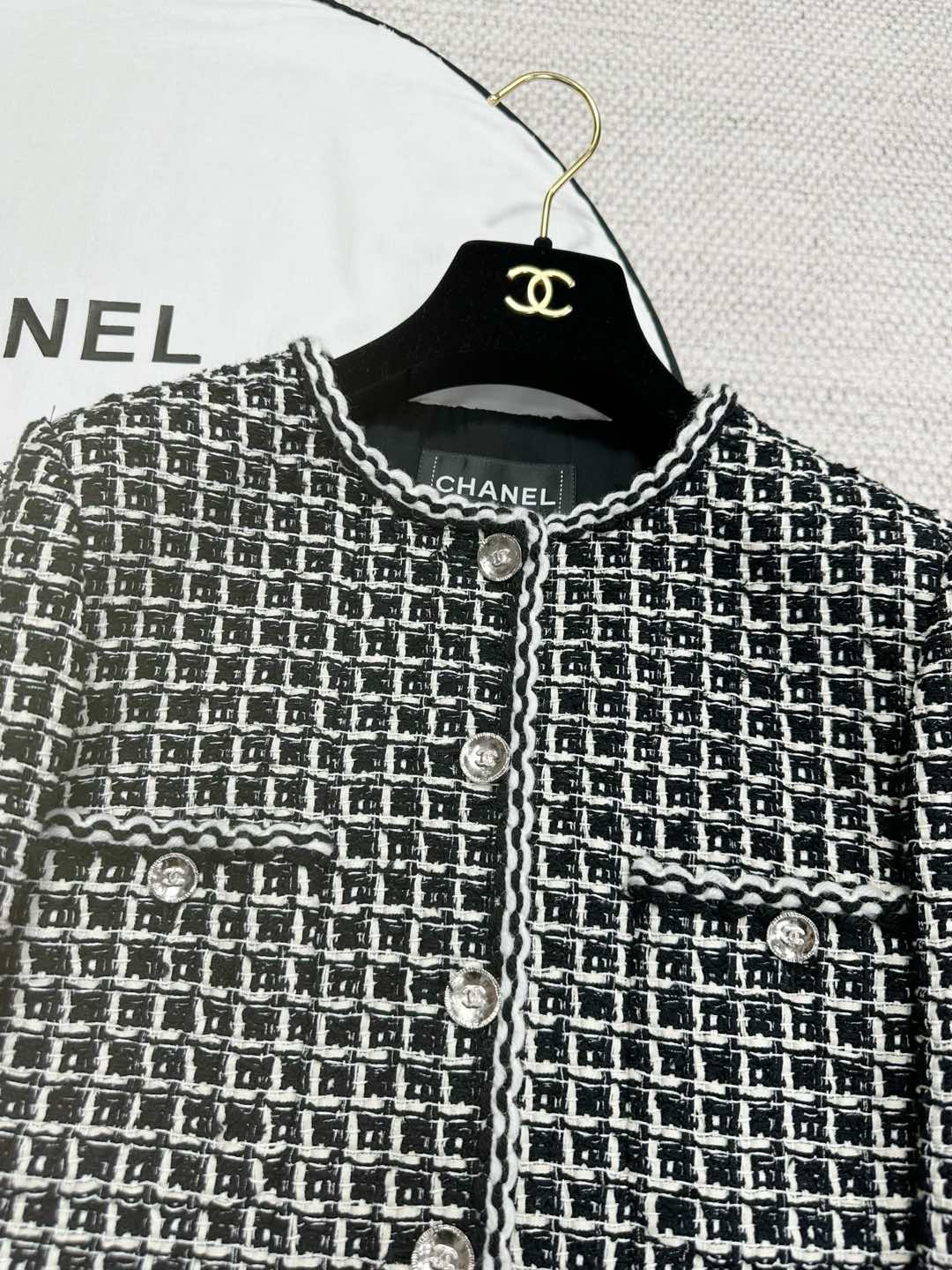 NIGO Chanel Women's Spring And Fall Plaid Woven Jacket Tweed Fashion Temperament Black And White Round Neck Single-breasted Jacket Ngvp #nigo9993
