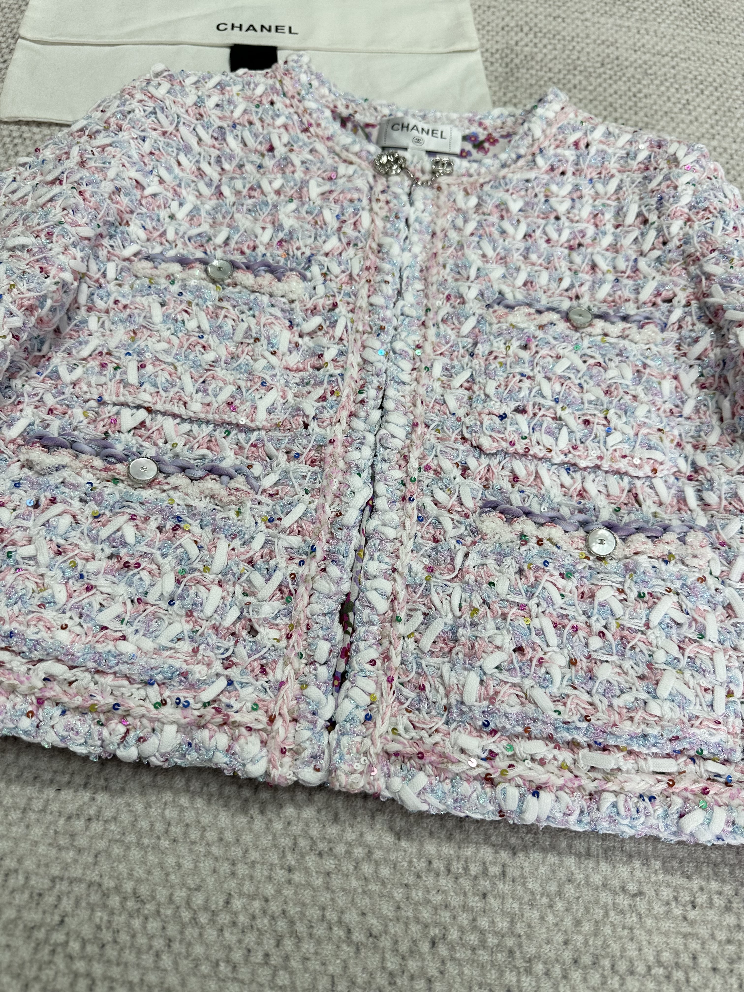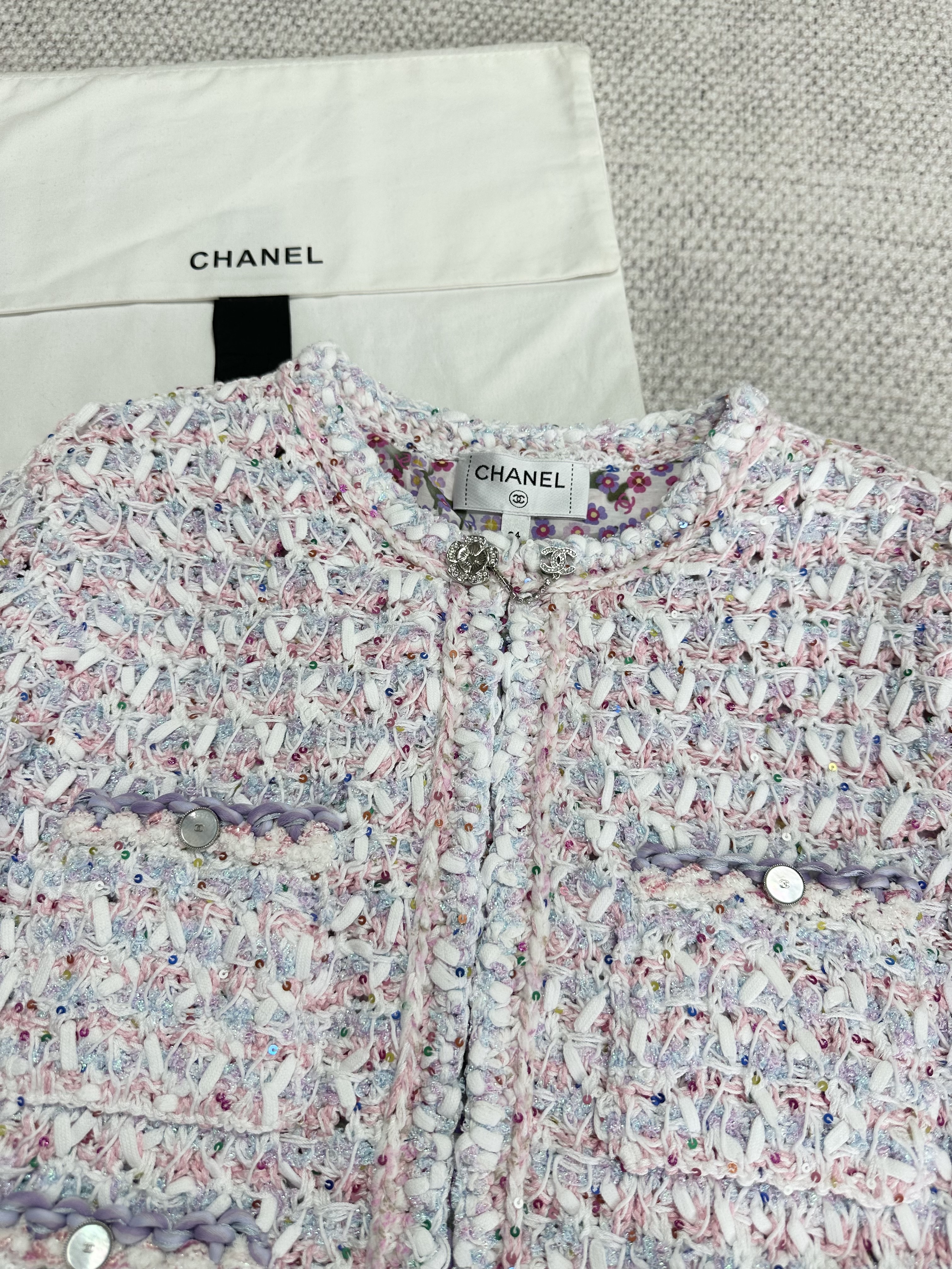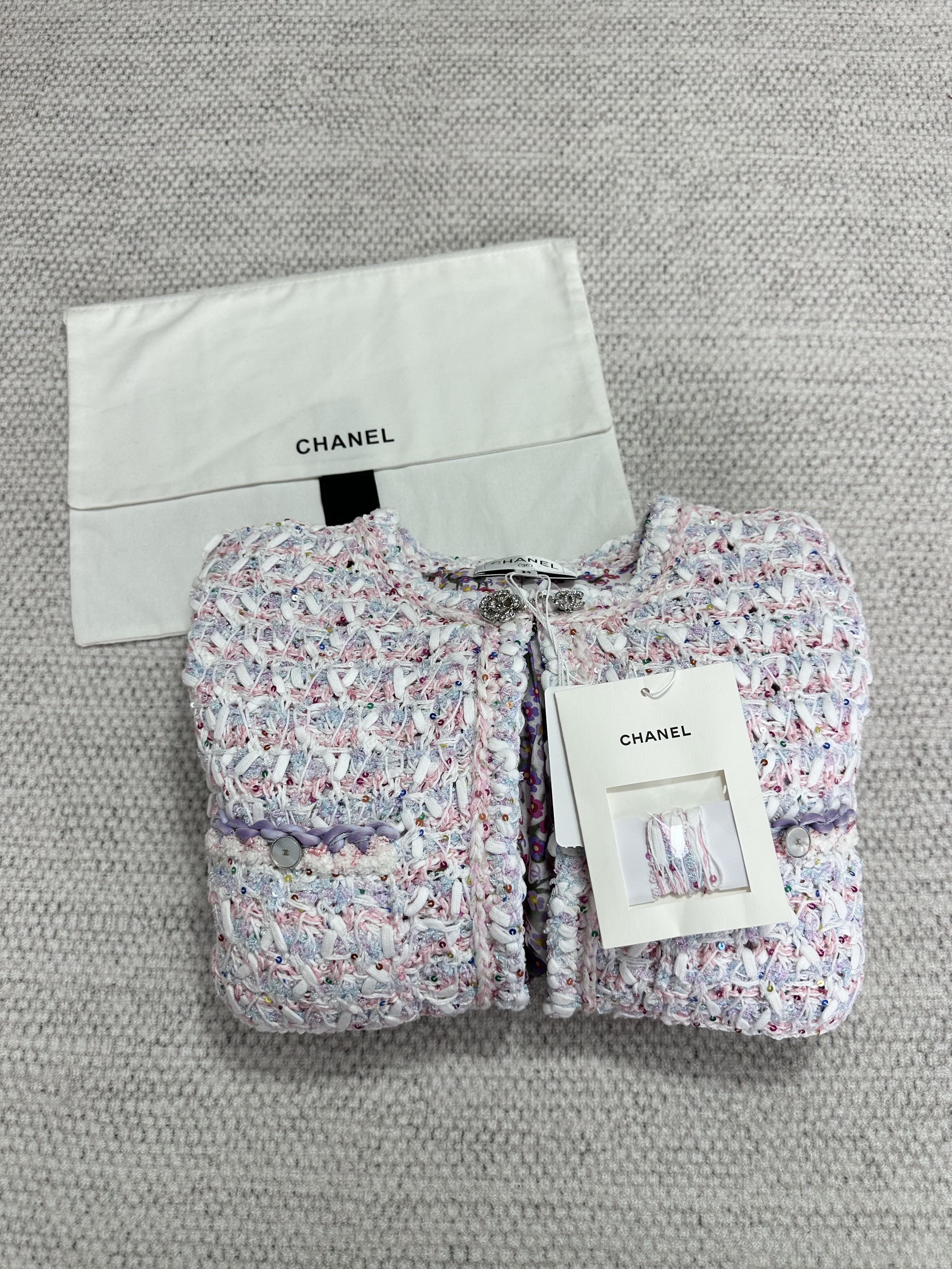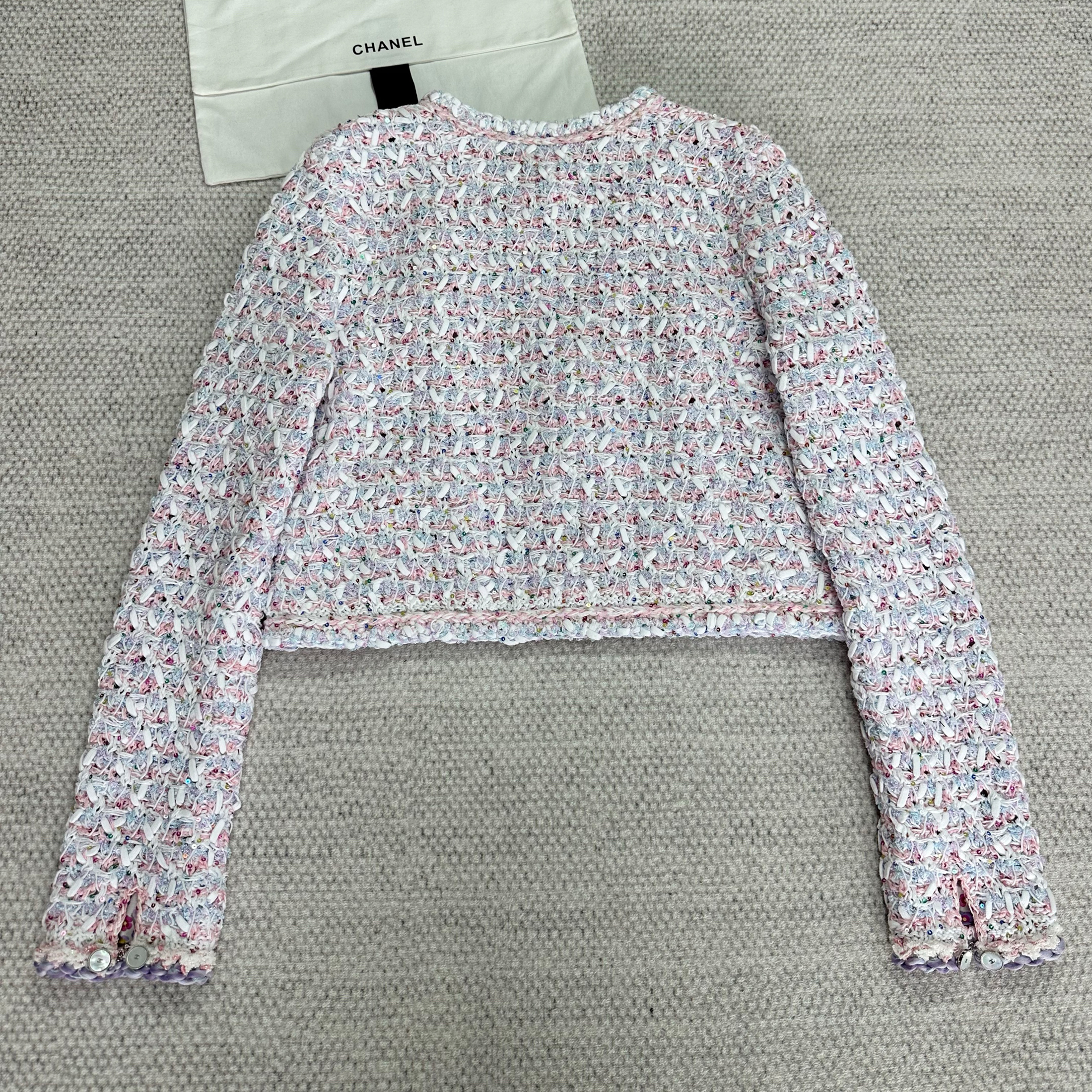 NIGO Chanel Women's Spring And Summer Pink Woven Knit Sweater Jacket Round Neck Single Breasted Pocket Fashion Temperament Elegant Short Top Ngvp #nigo1344