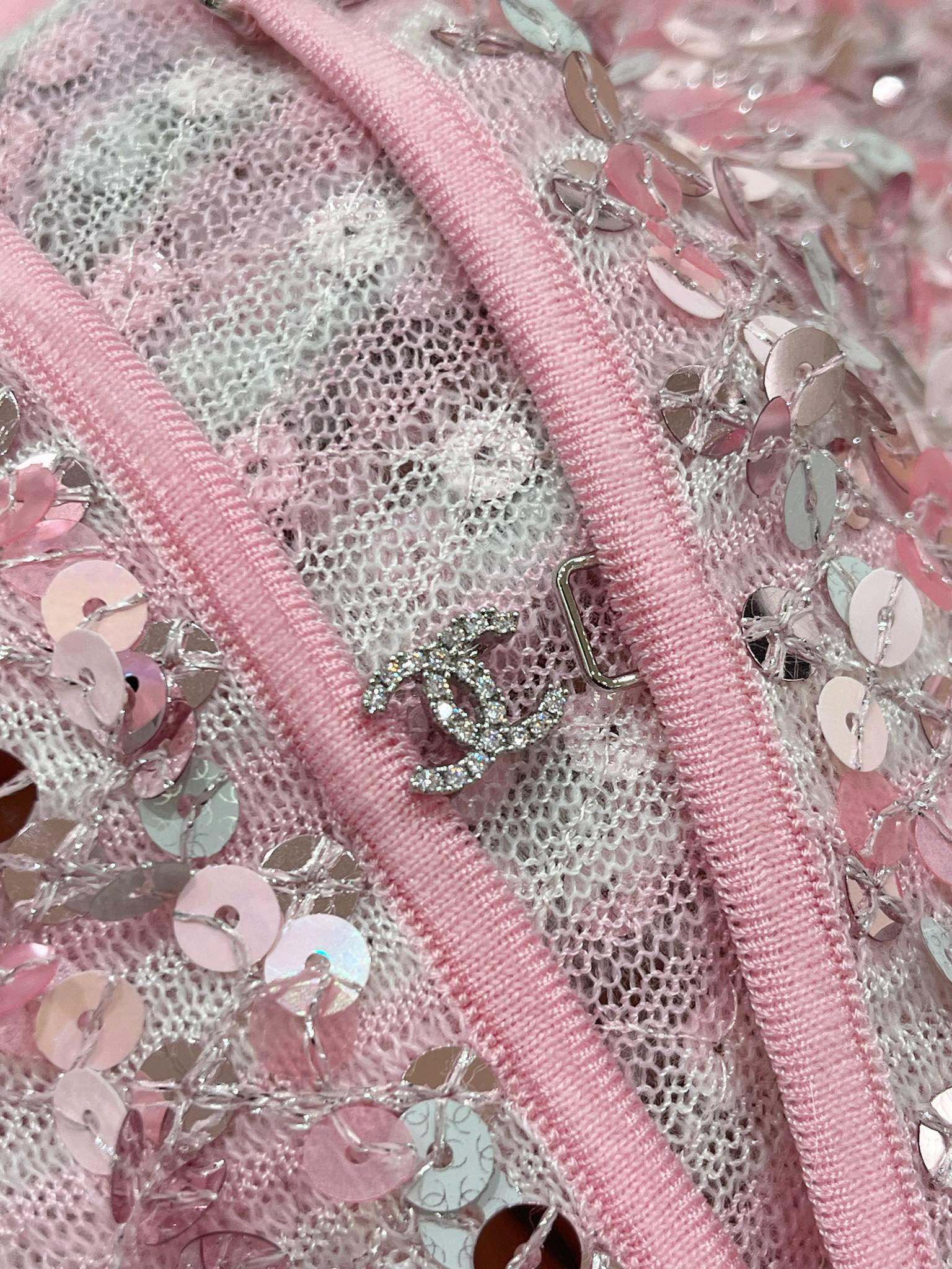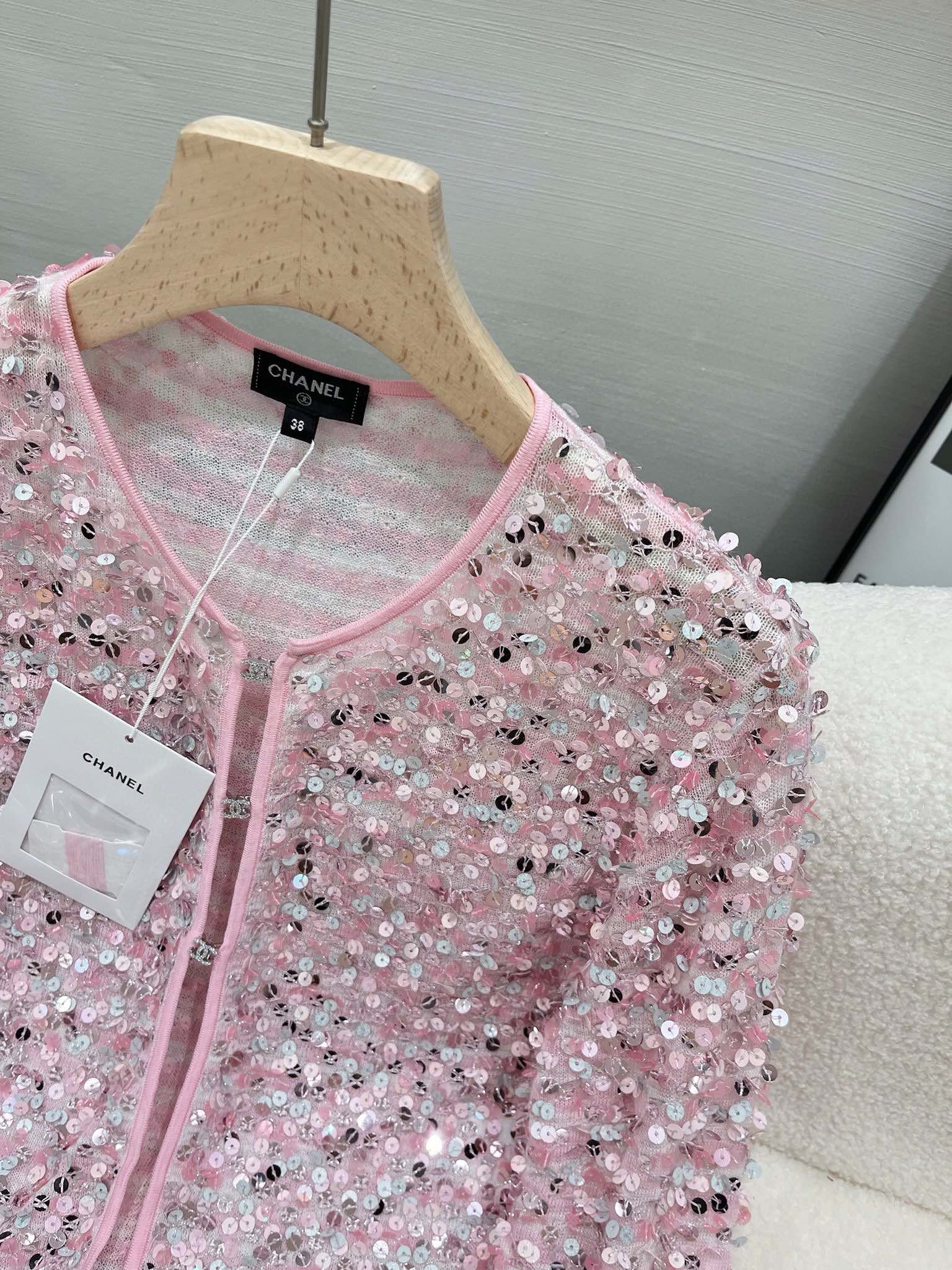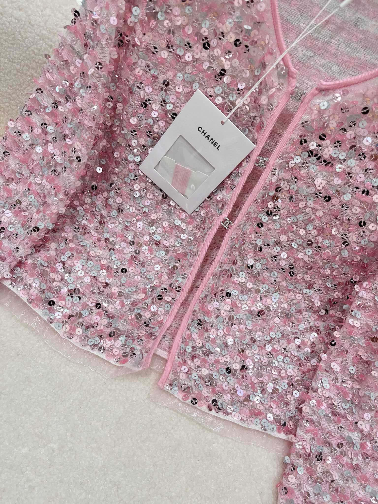 NIGO Chanel Women's Spring And Summer Sequin Design Round Neck Single-breasted Pink Long sleeved Knit Sweater Jacket Ngvp #nigo73656