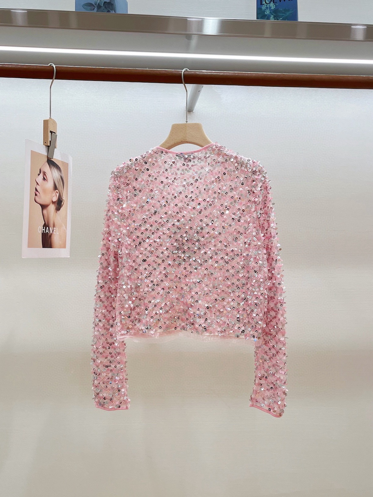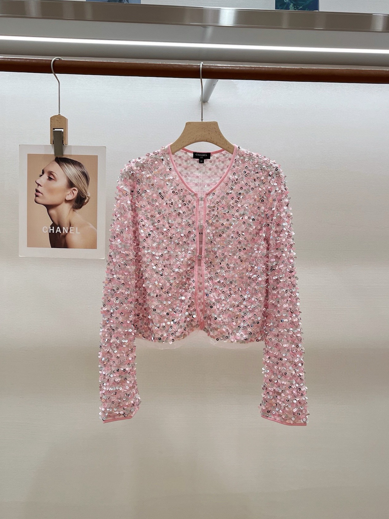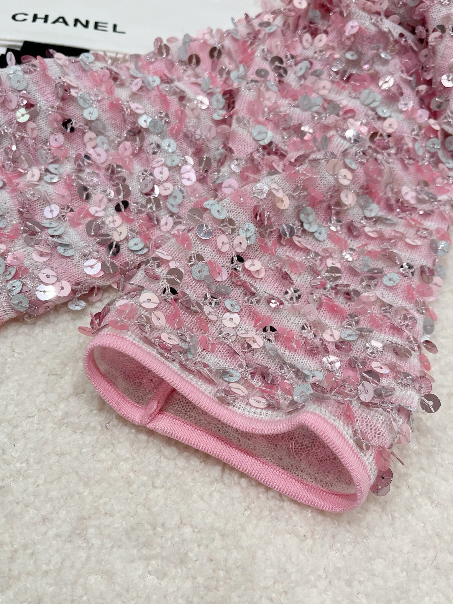 NIGO Chanel Women's Spring And Summer Sequin Design Round Neck Single-breasted Pink Long sleeved Knit Sweater Jacket Ngvp #nigo73656