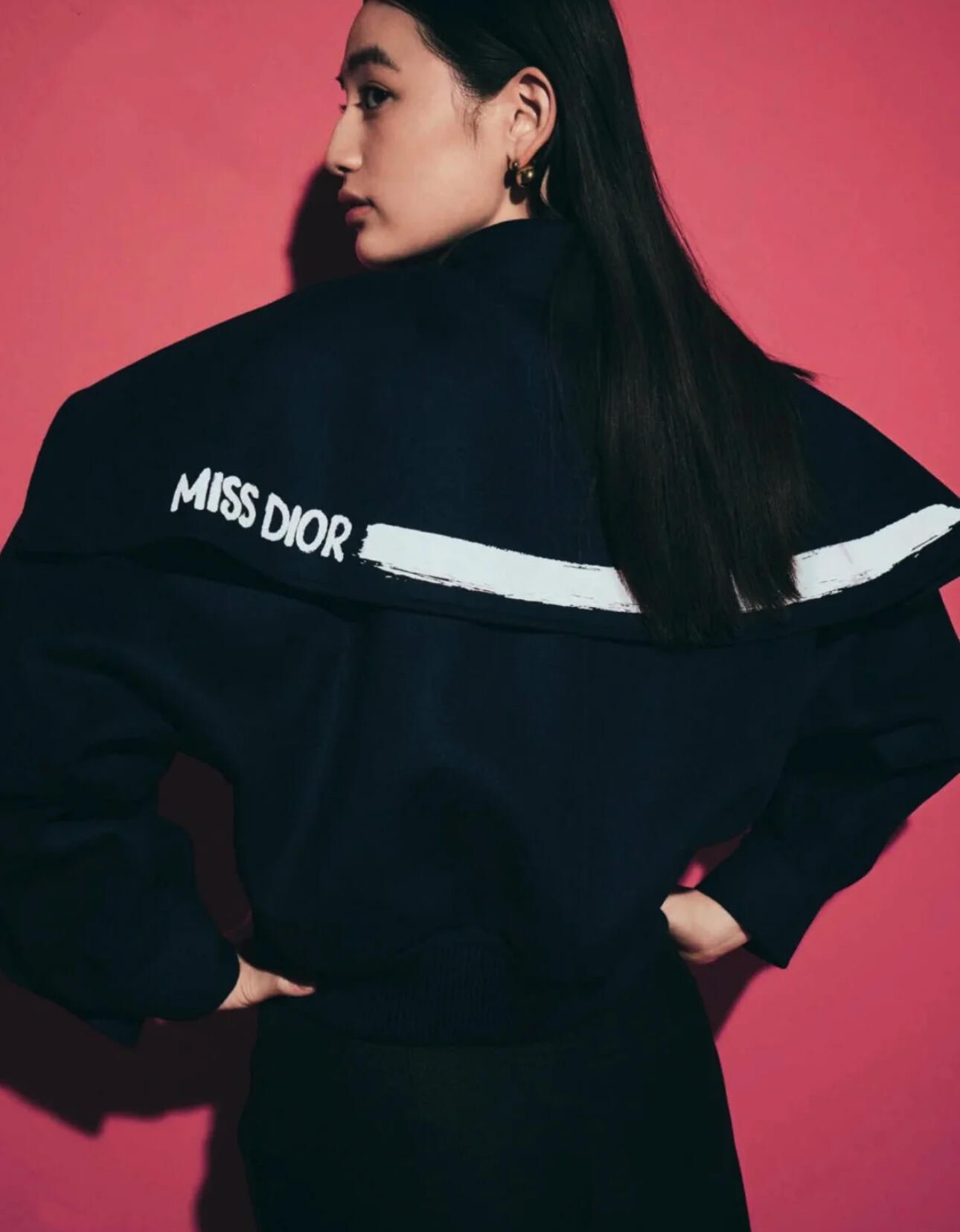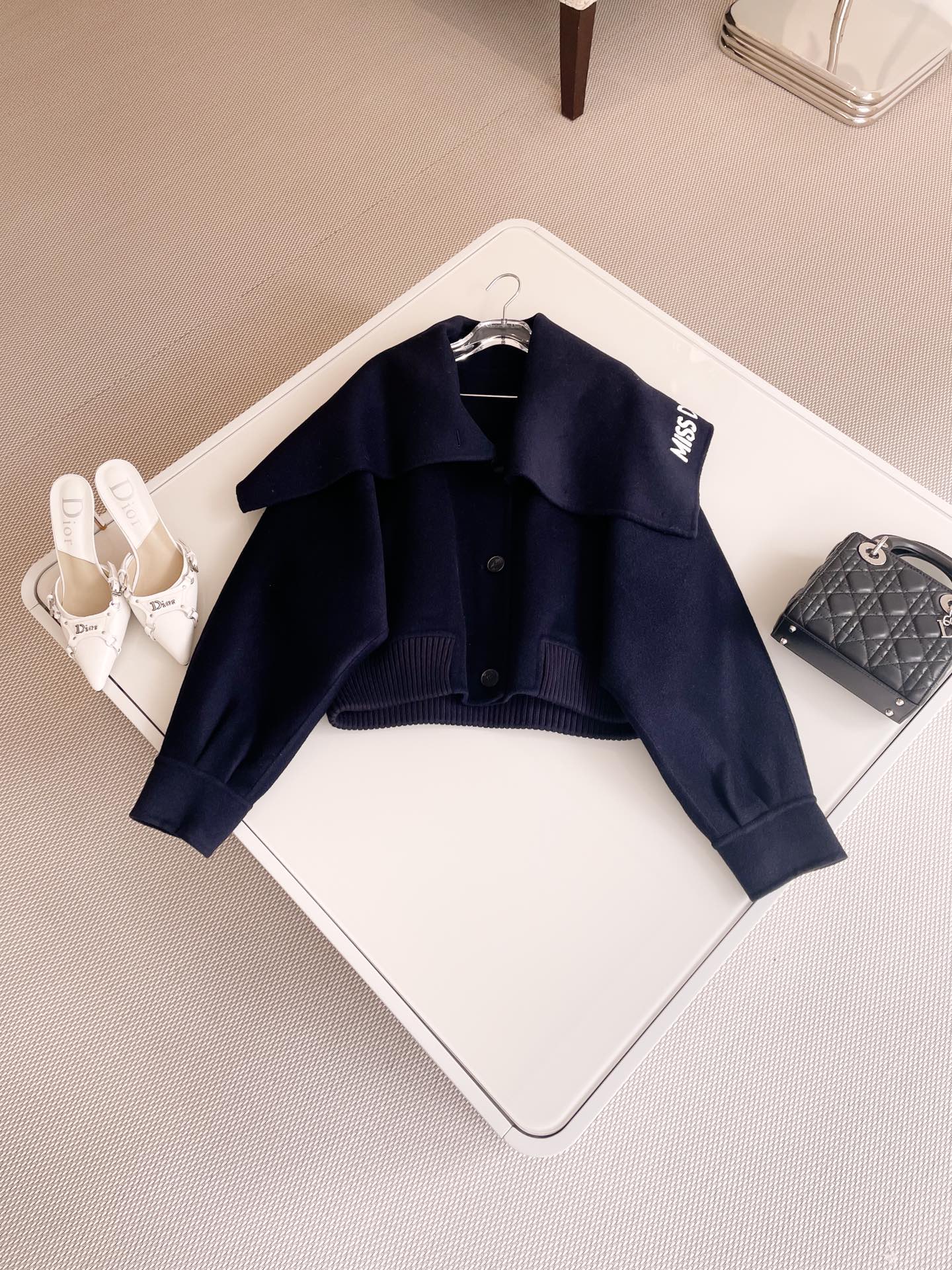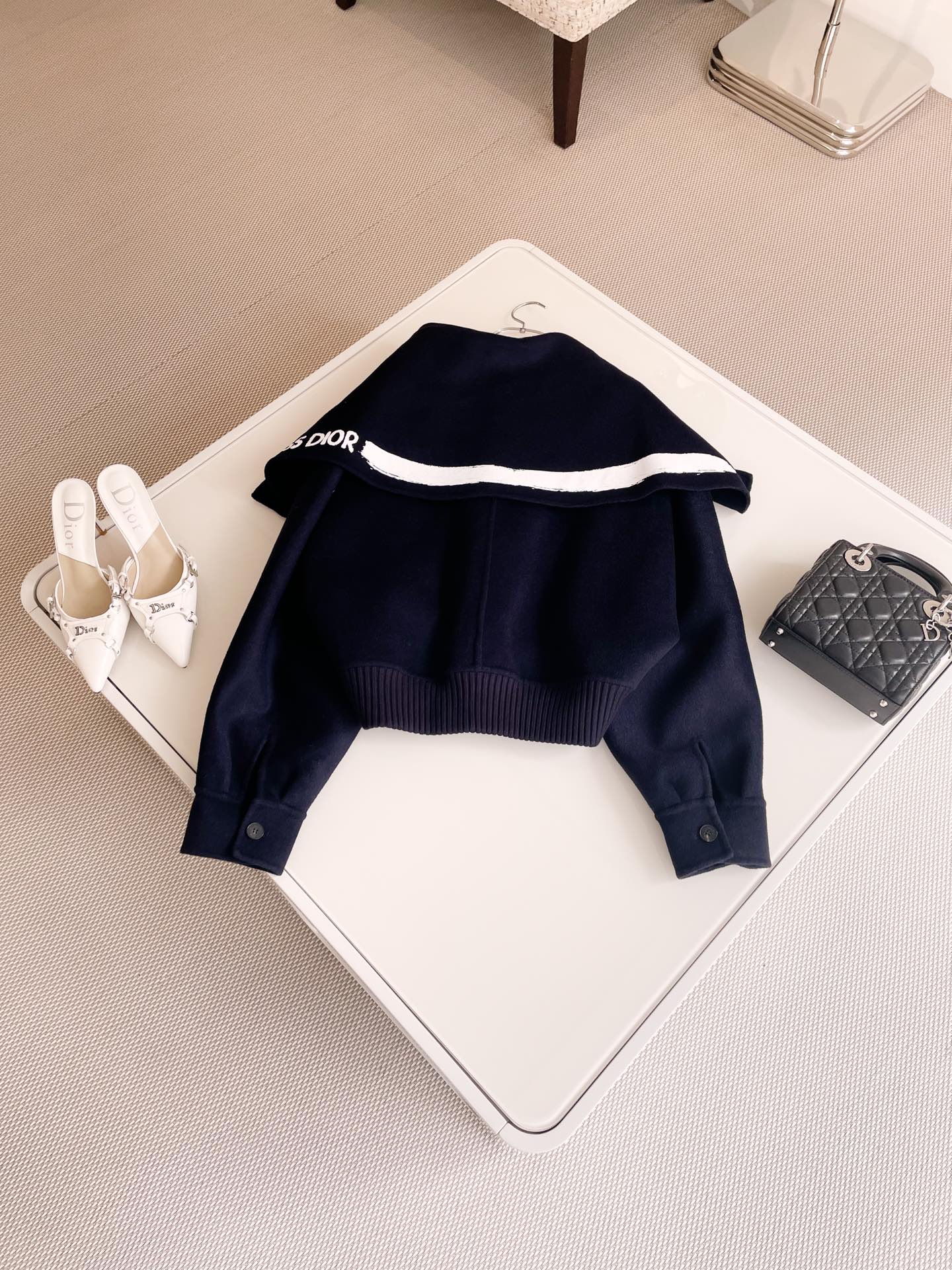 NIGO Dior Women's Fall/Winter Navy Blue Logo Letter Printed Single Breasted Loose Long Sleeve Jacket #nigo73398