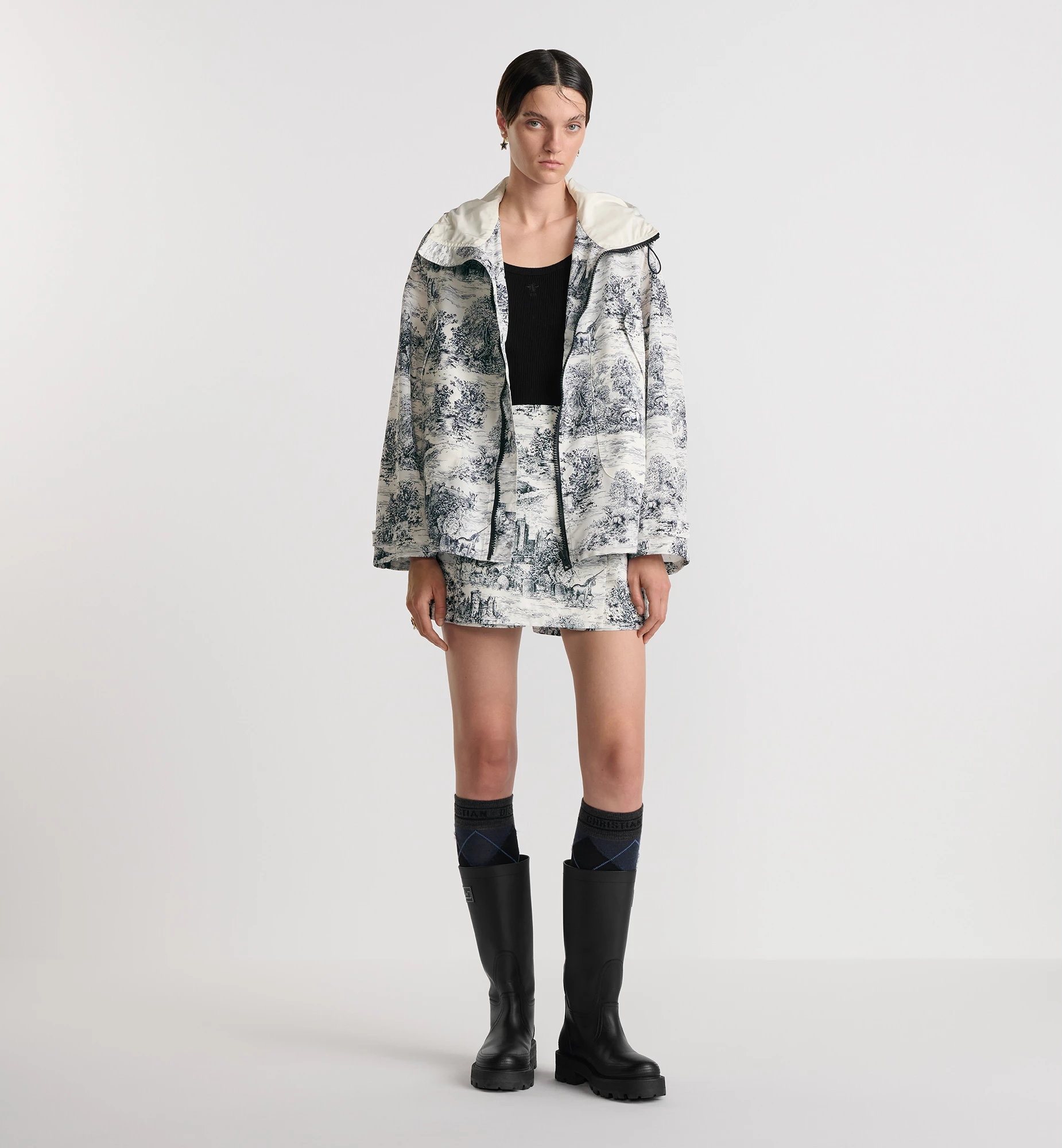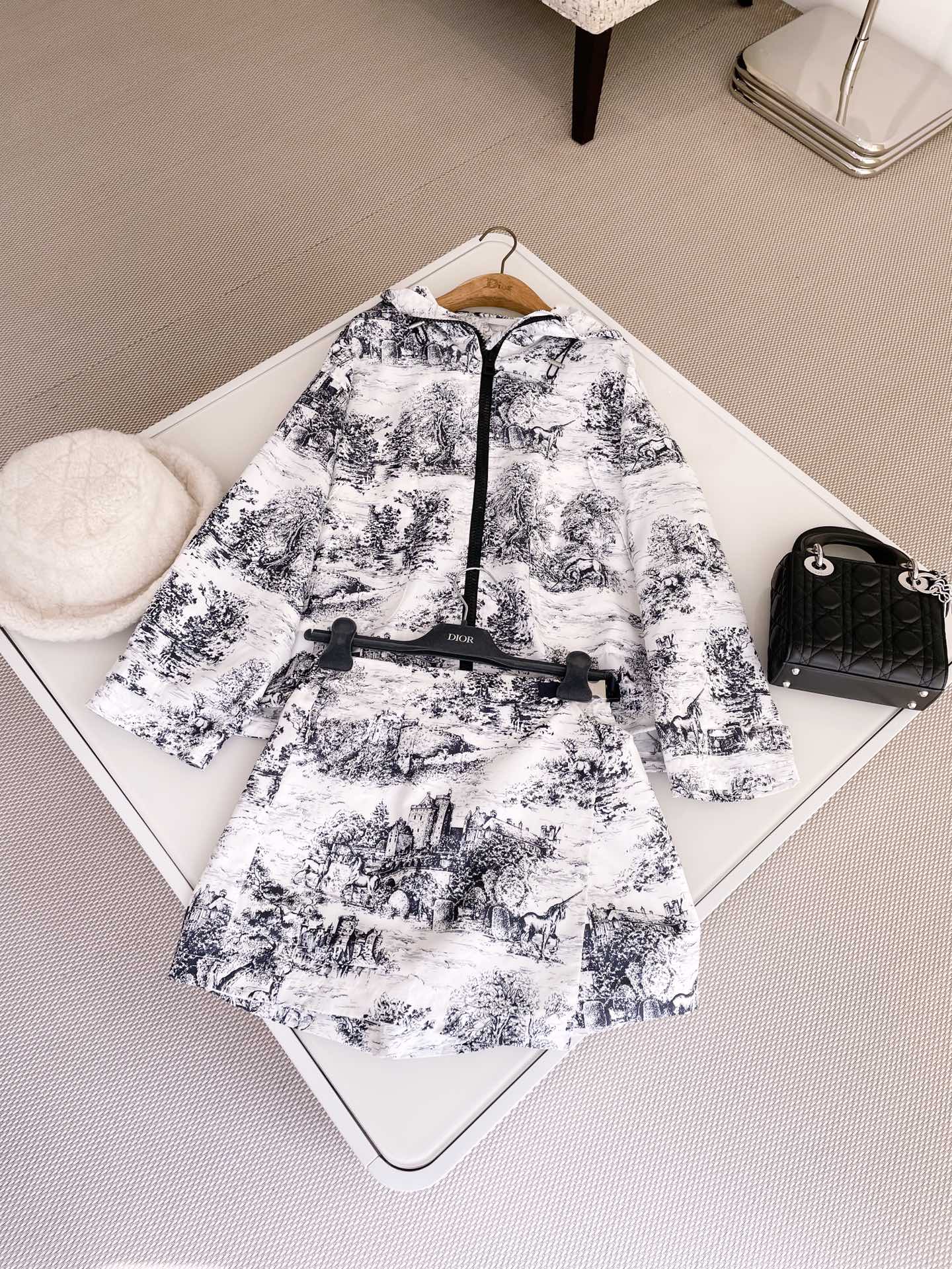 NIGO Dior Women's Spring And Autumn Floral Print Zipper Loose Waterproof Hooded Jacket Casual High Waisted Shorts Ngvp #nigo9747