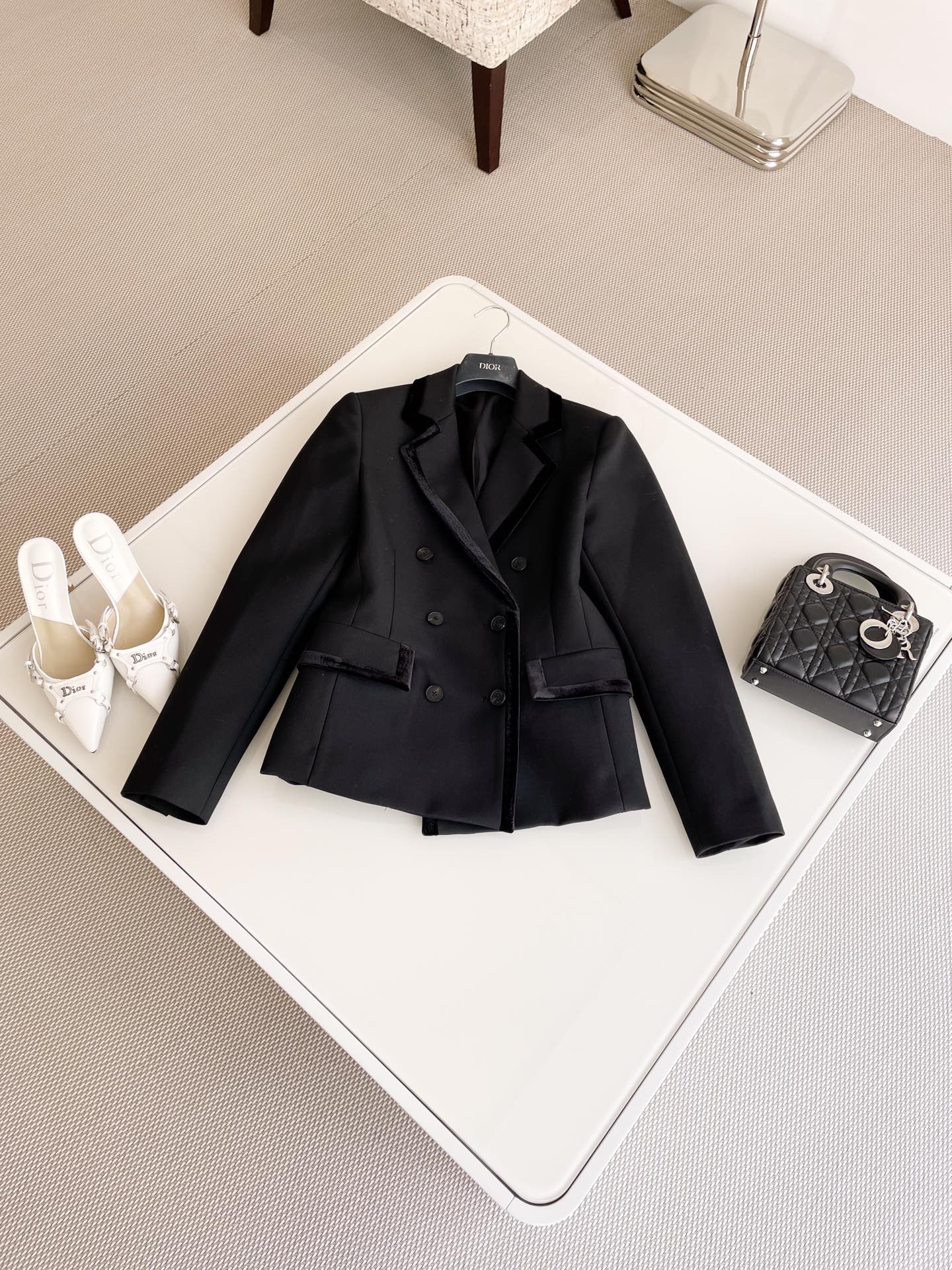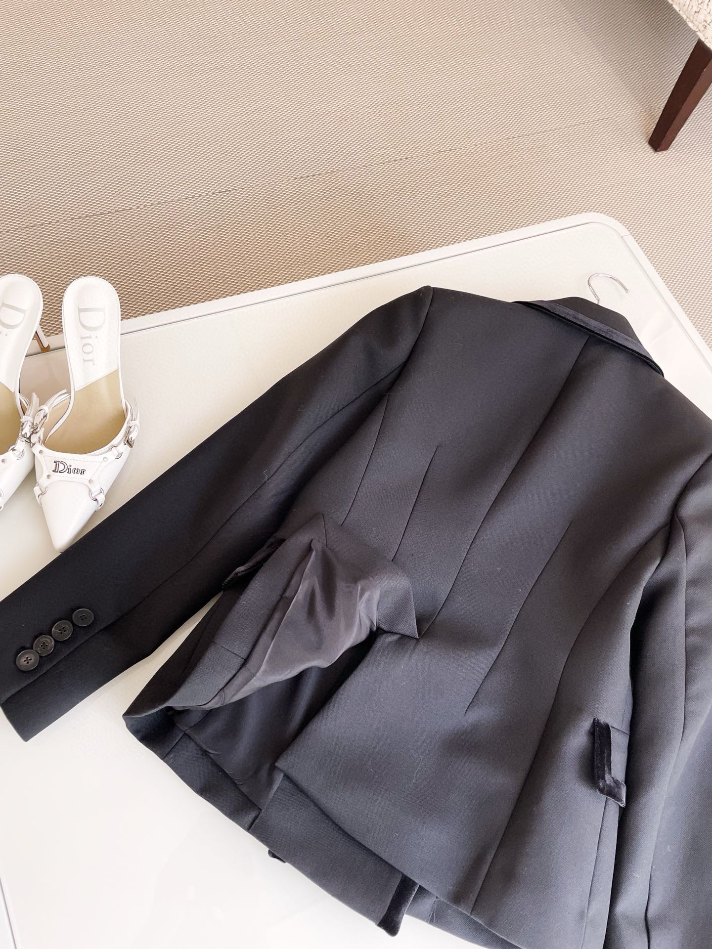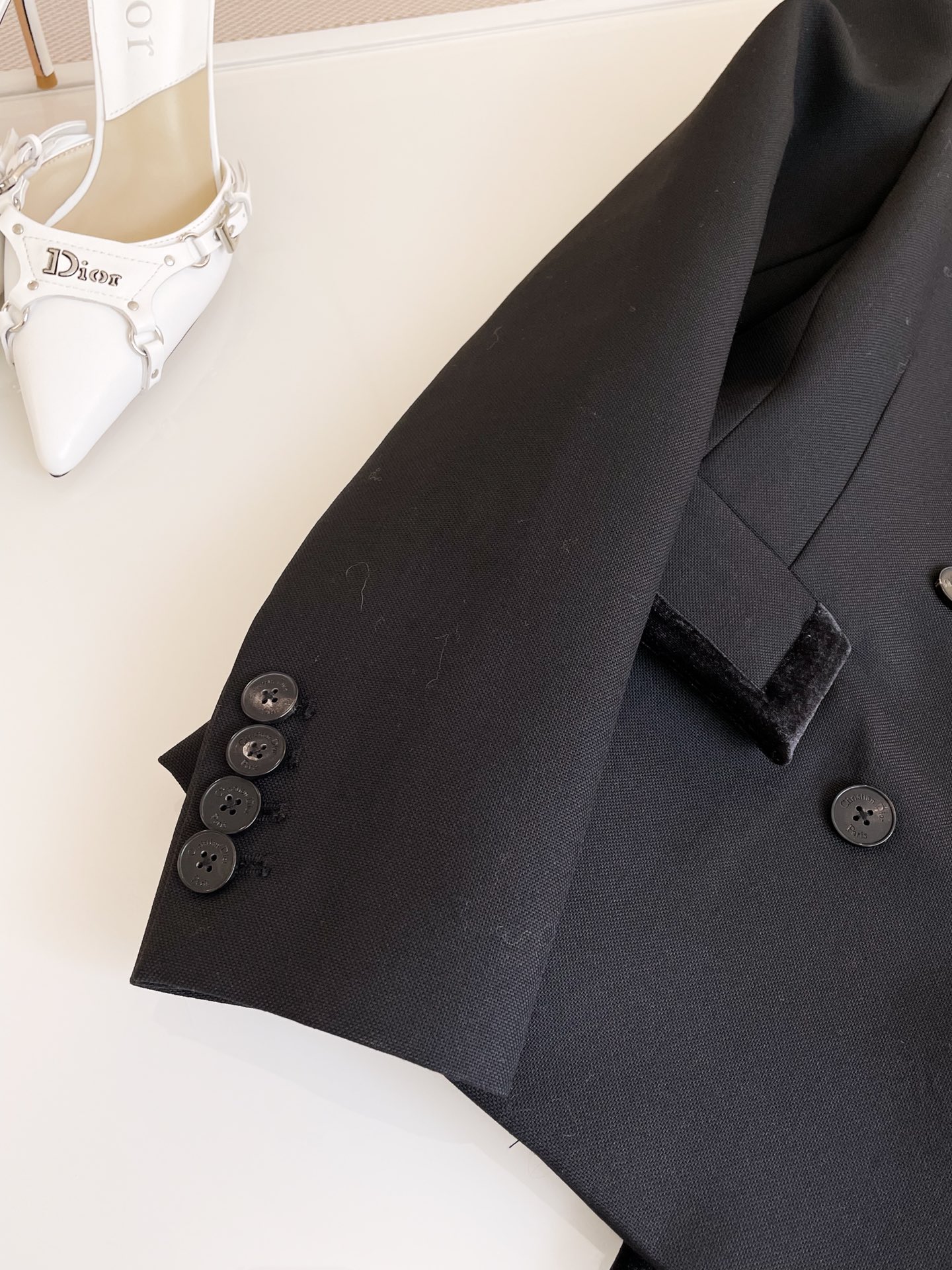 NIGO Dior Women's Spring and Autumn Wool Velvet Trim Waisted Suit Lapel Double Breasted Black Jacket Ngvp #nigo8924