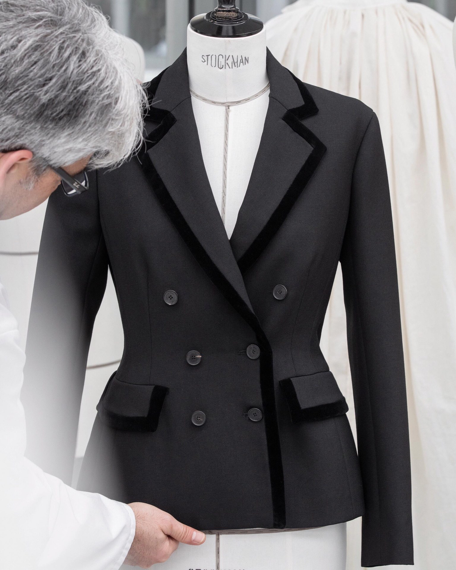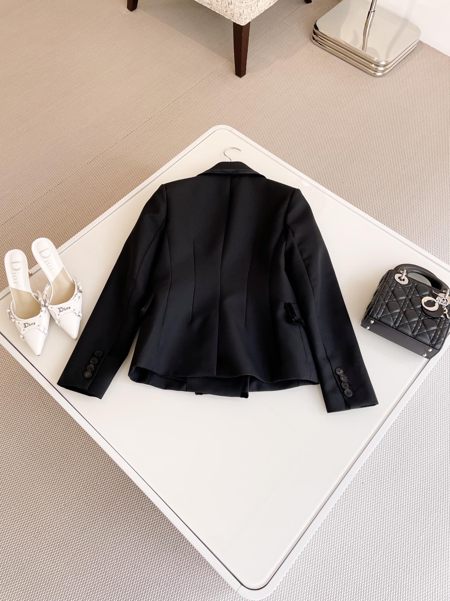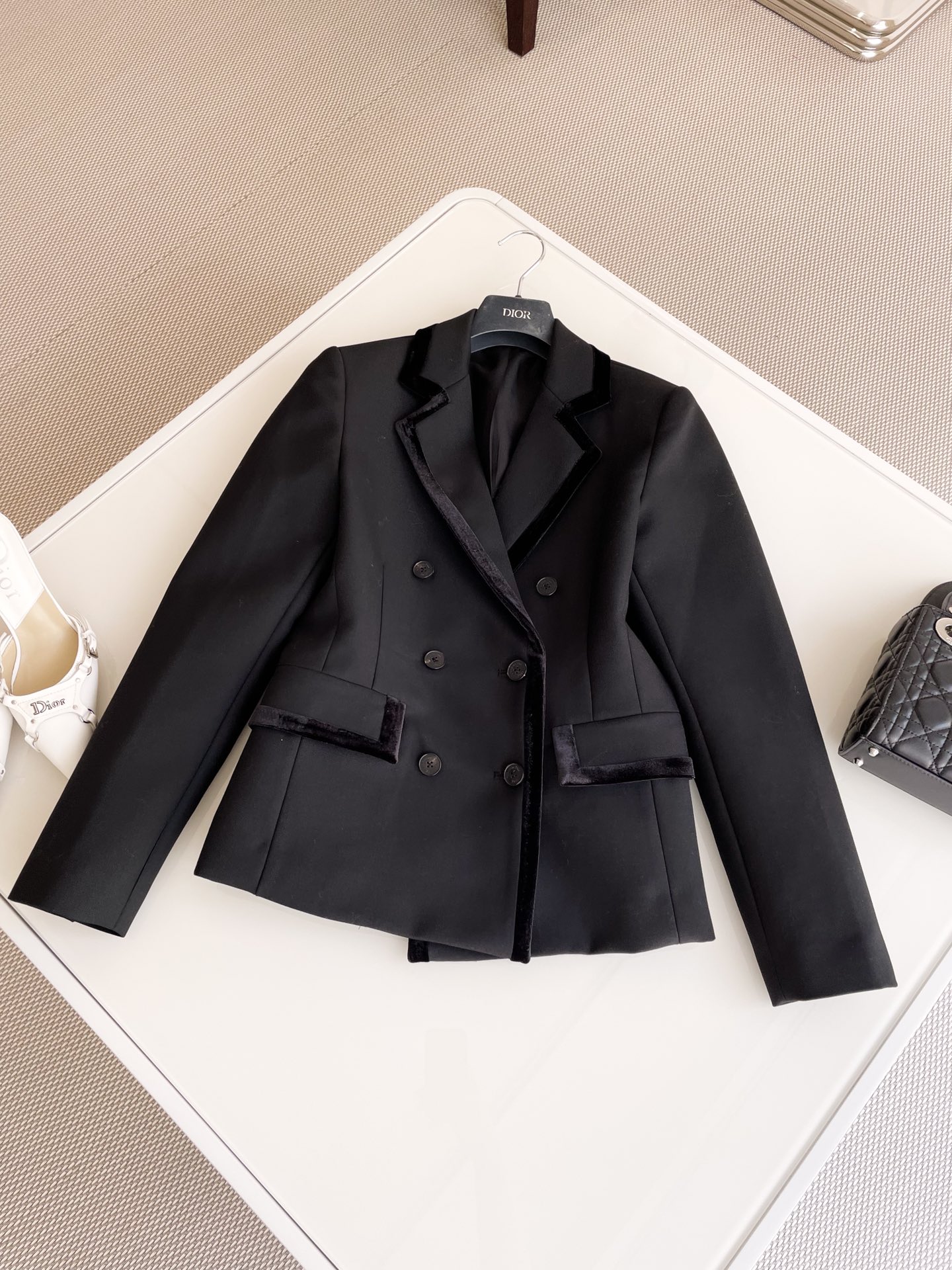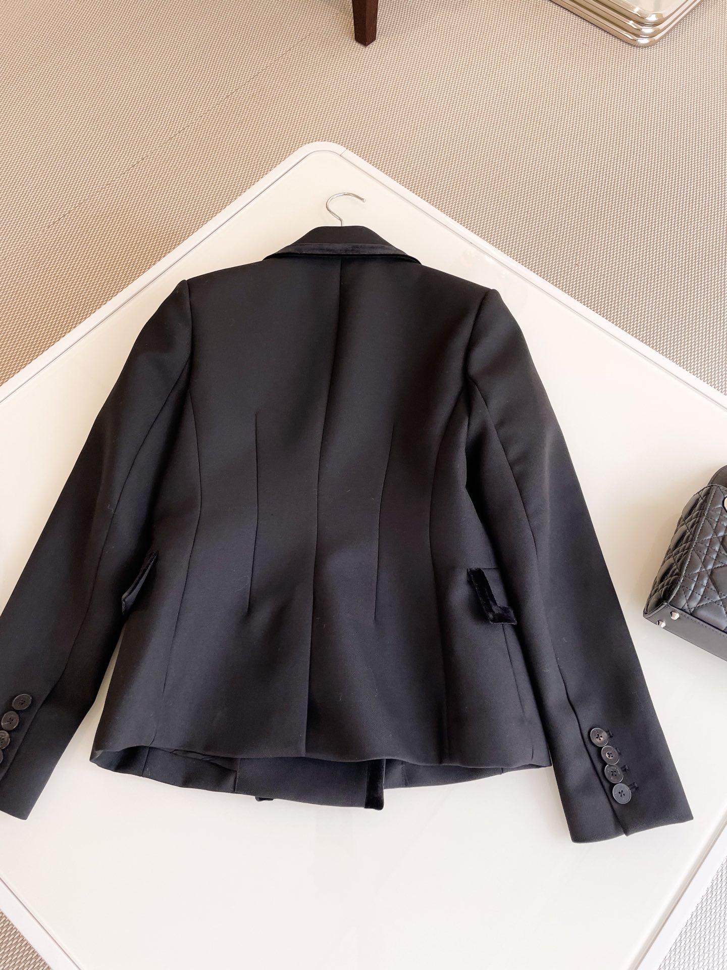 NIGO Dior Women's Spring and Autumn Wool Velvet Trim Waisted Suit Lapel Double Breasted Black Jacket Ngvp #nigo8924
