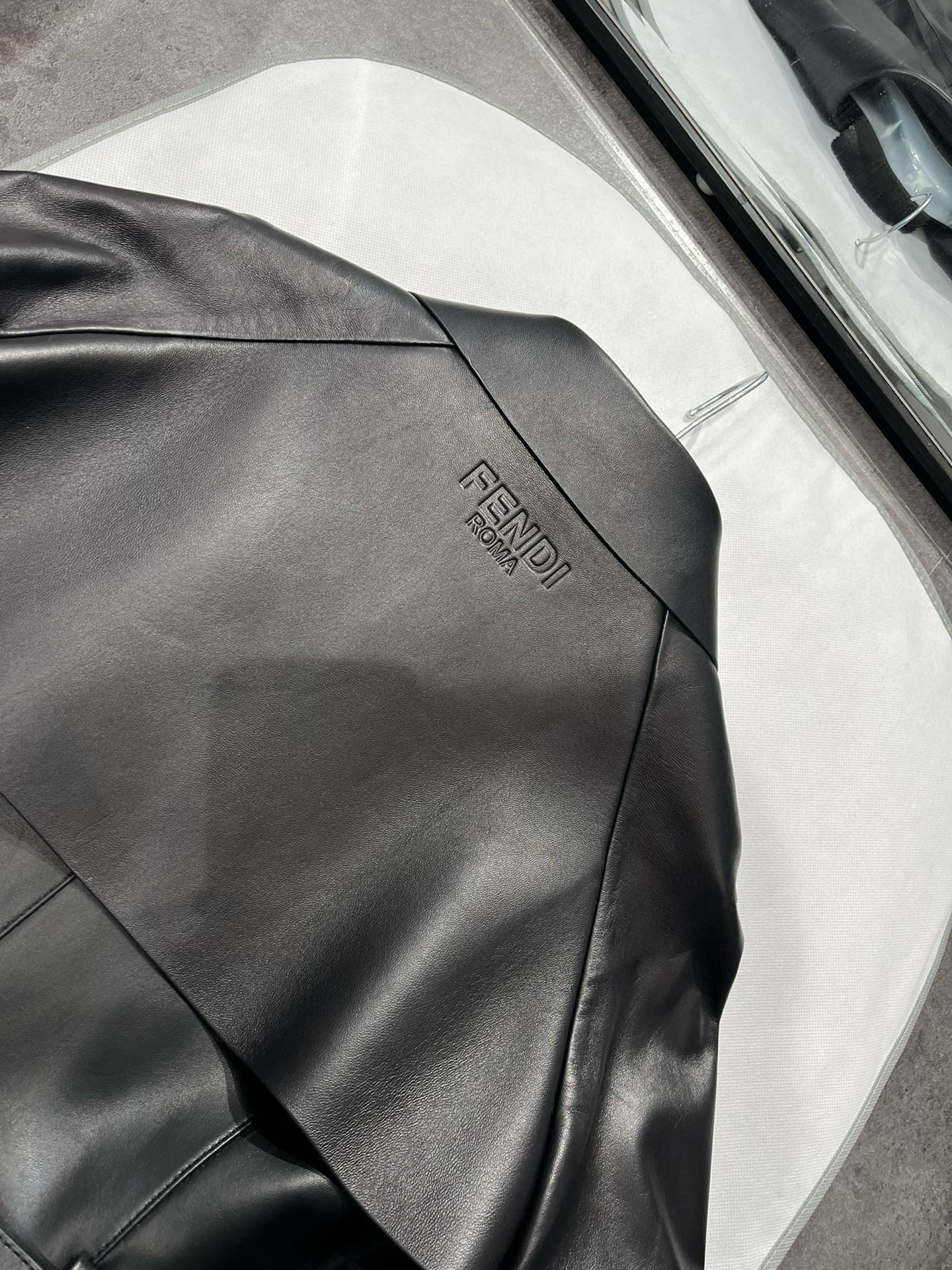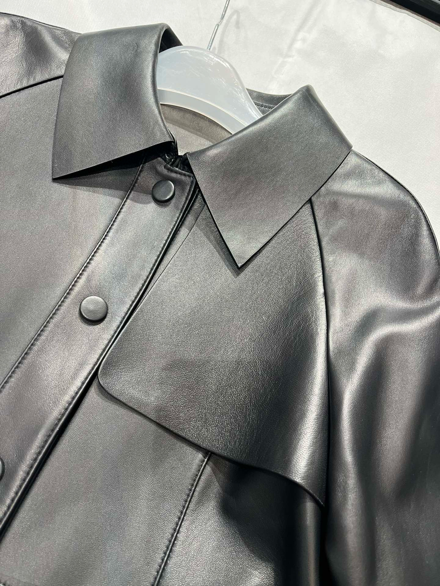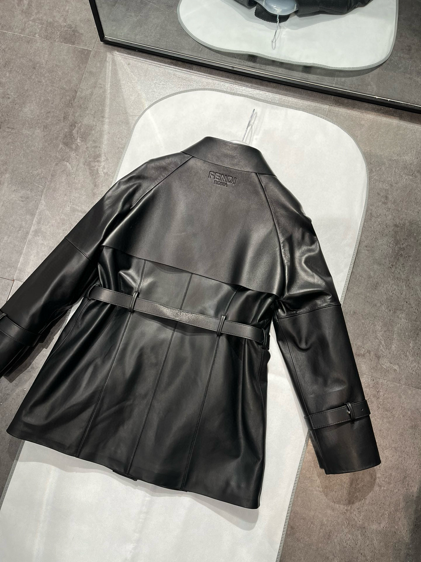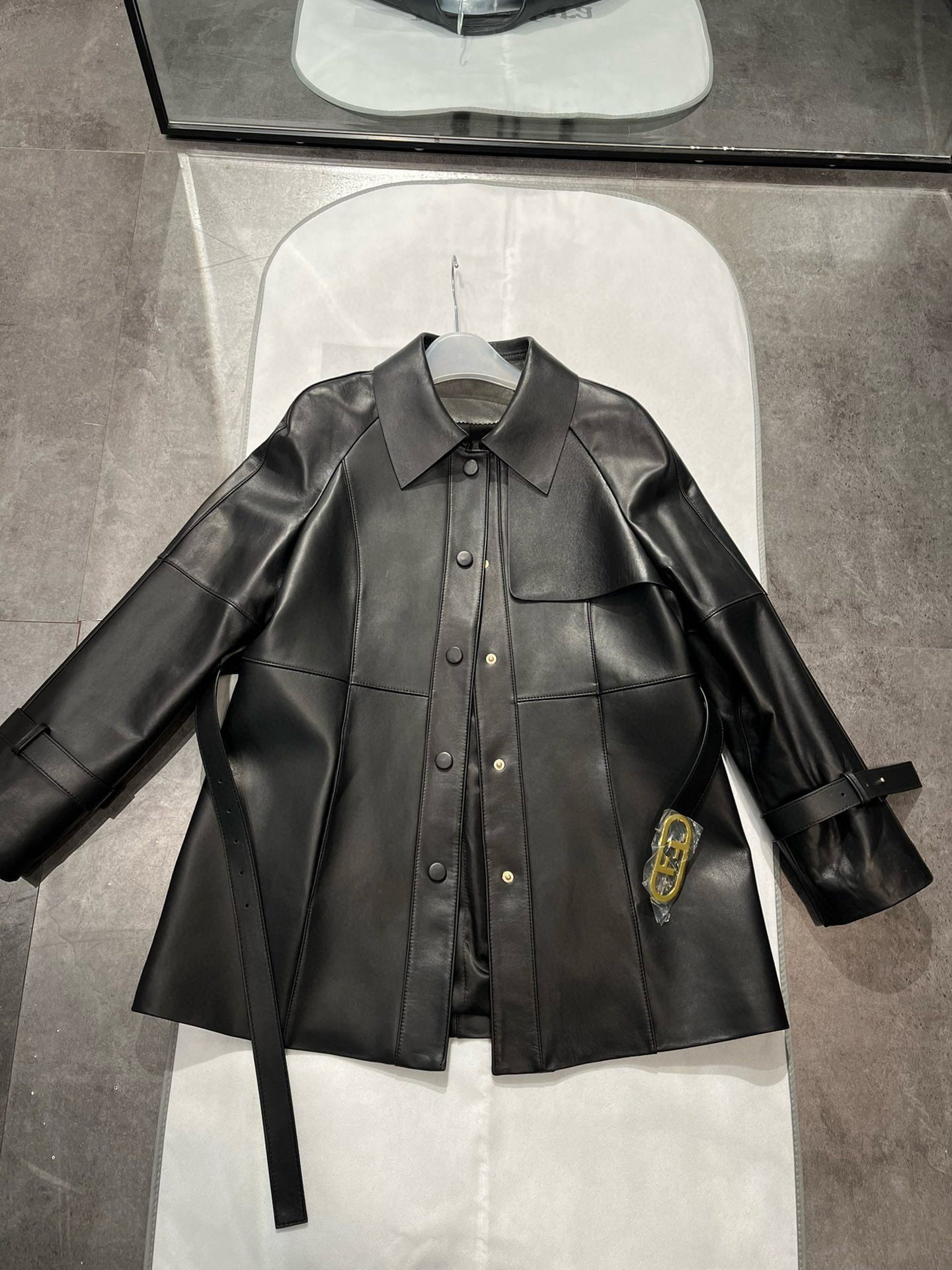 NIGO Fendi Women's Spring and Autumn Black Tie Belt Waist Single Breasted Slim Long Sleeve Sheepskin Jacket #nigo98466