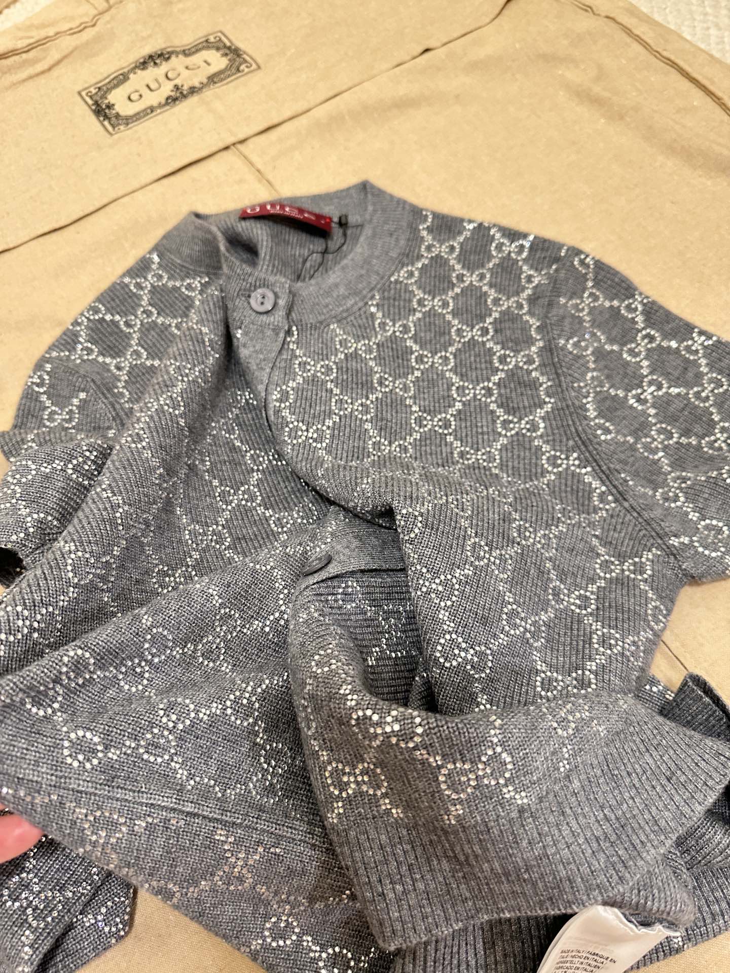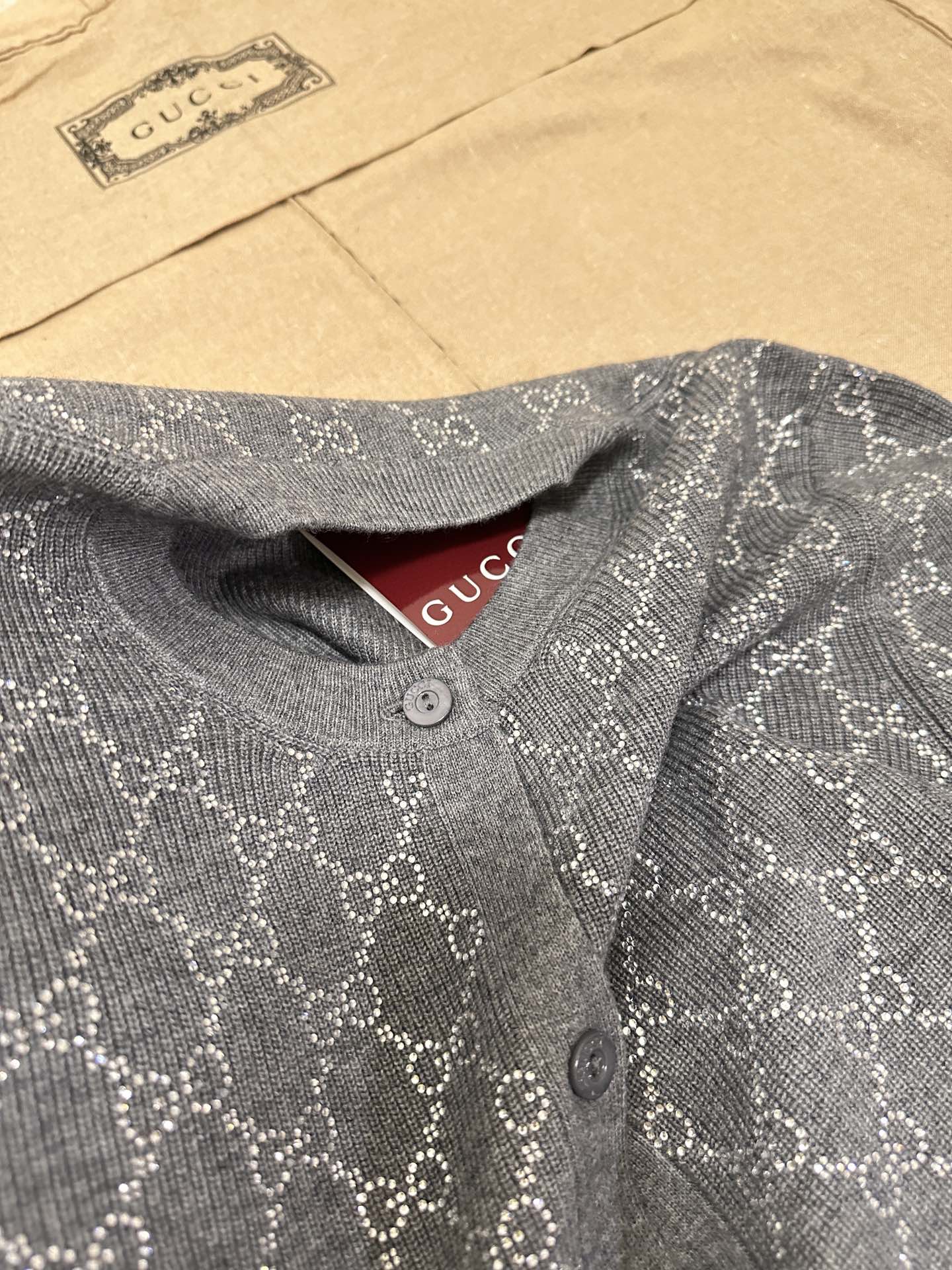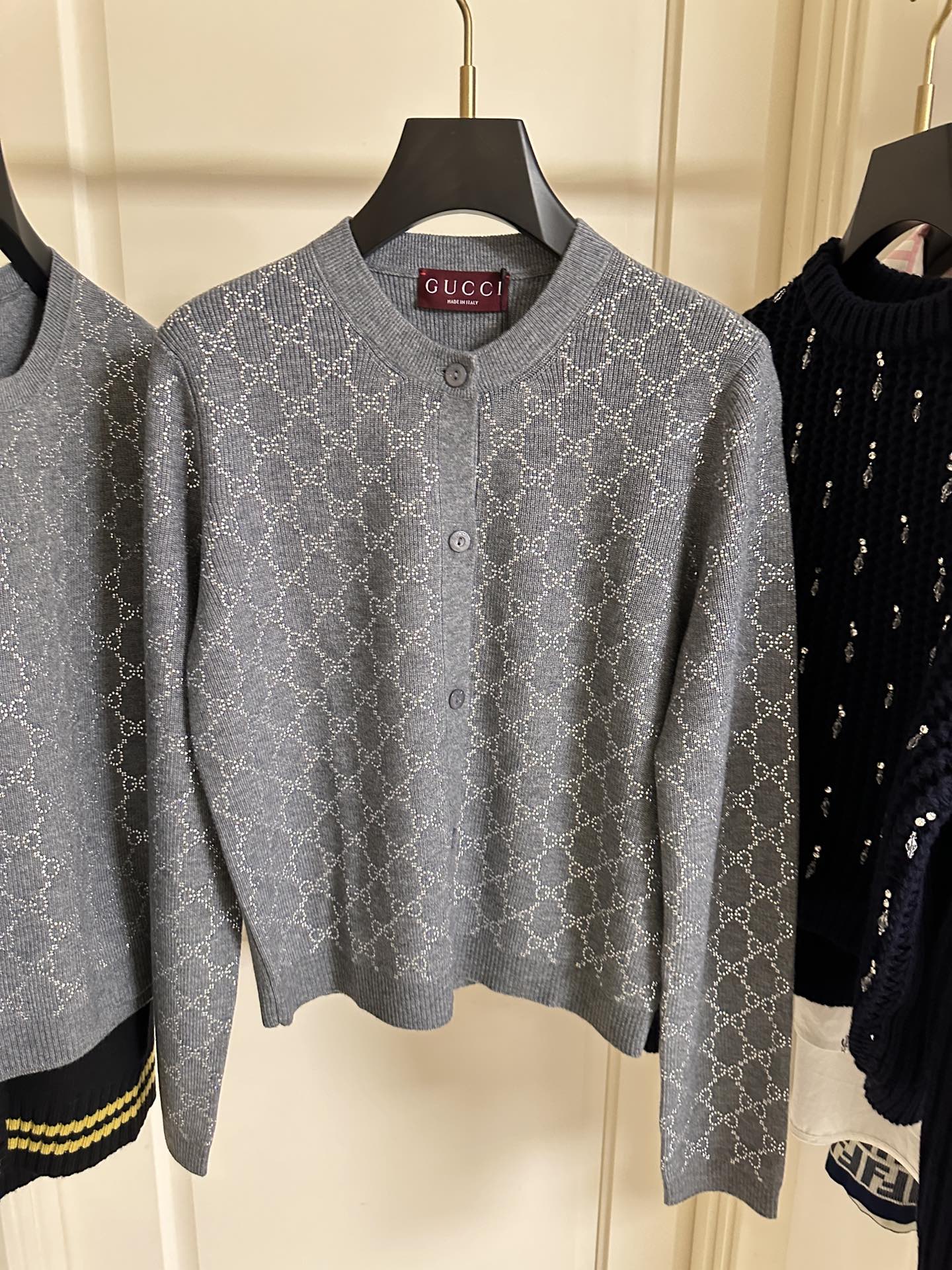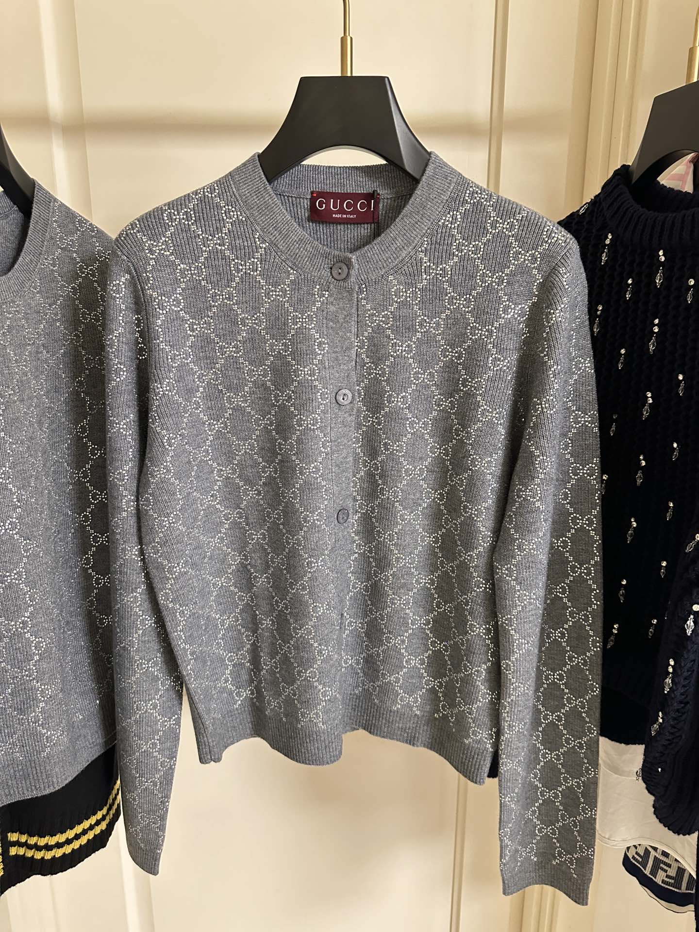 NIGO Gucci Women's Gray Letter Logo Round Neck Single Breasted Long Sleeve Knit Sweater Jacket #nigo72991