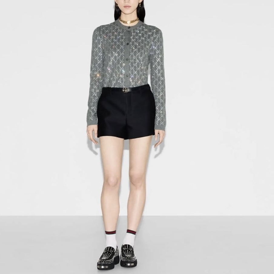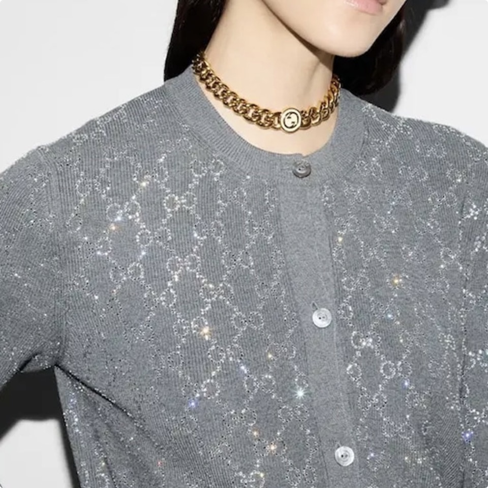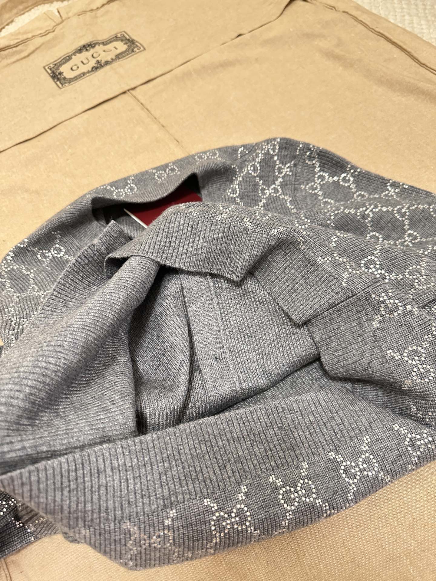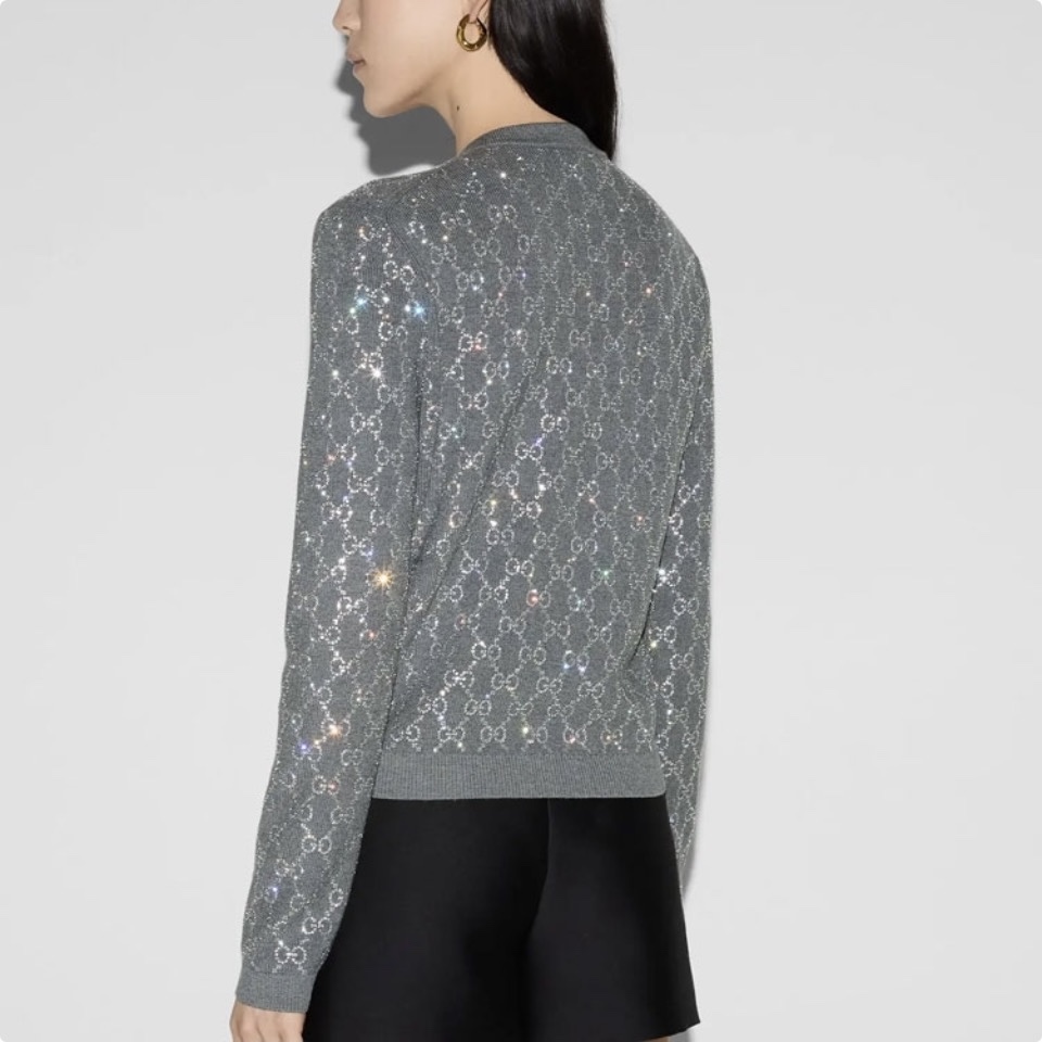 NIGO Gucci Women's Gray Letter Logo Round Neck Single Breasted Long Sleeve Knit Sweater Jacket #nigo72991
