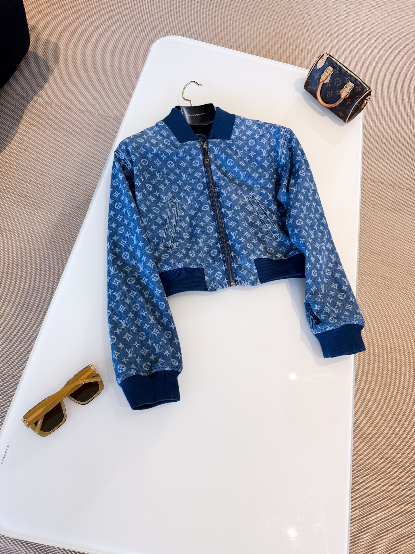 NIGO Louis Vuitton Monogram Denim Short Aviator Jacket Women's Luxury Fashion Elegant Short Zipper Denim Jacket #nigo81449