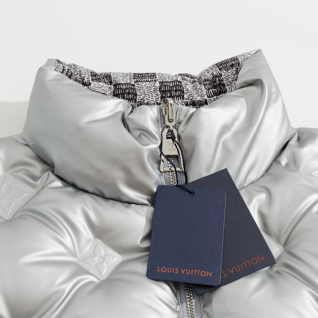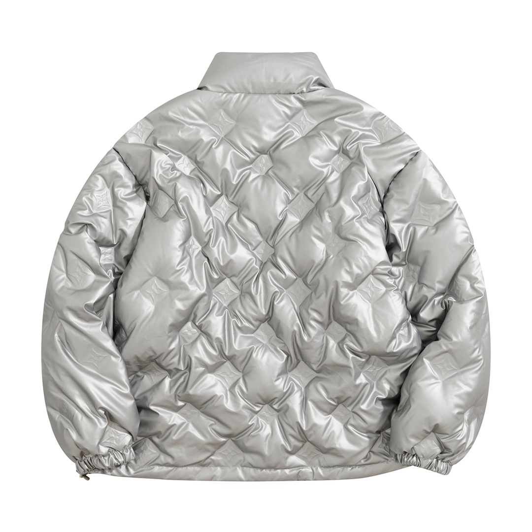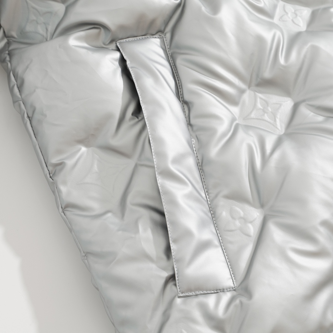 NIGO Louis Vuitton Women's Autumn and Winter Silver Floral Embossed Printed Standing Collar Reversible Zipper Long Sleeve Puffer Down Jacket #nigo73538