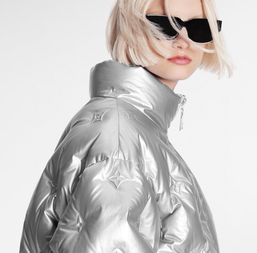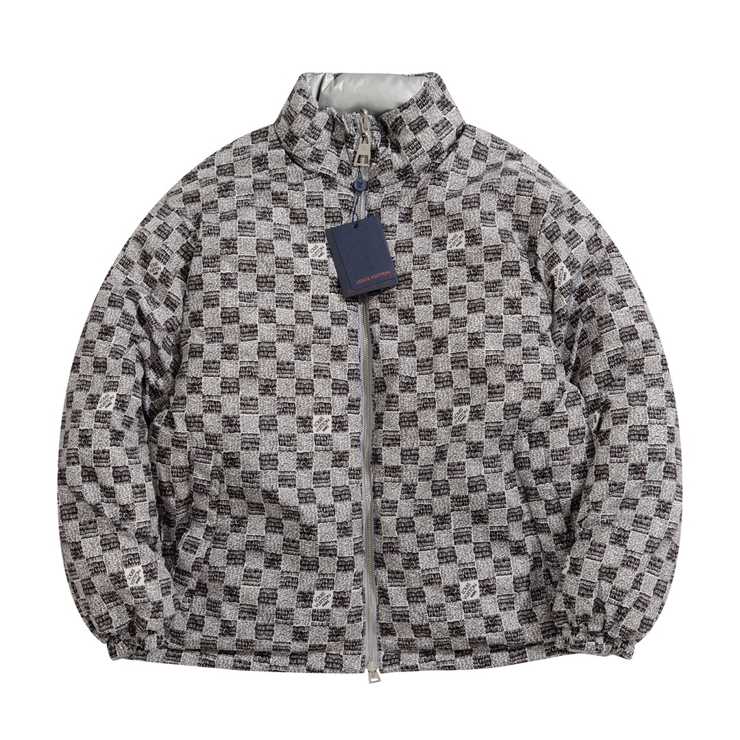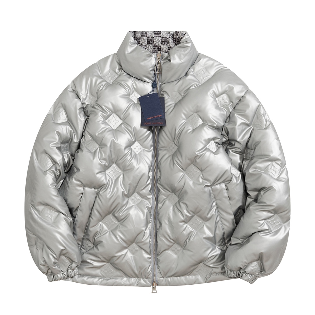 NIGO Louis Vuitton Women's Autumn and Winter Silver Floral Embossed Printed Standing Collar Reversible Zipper Long Sleeve Puffer Down Jacket #nigo73538
