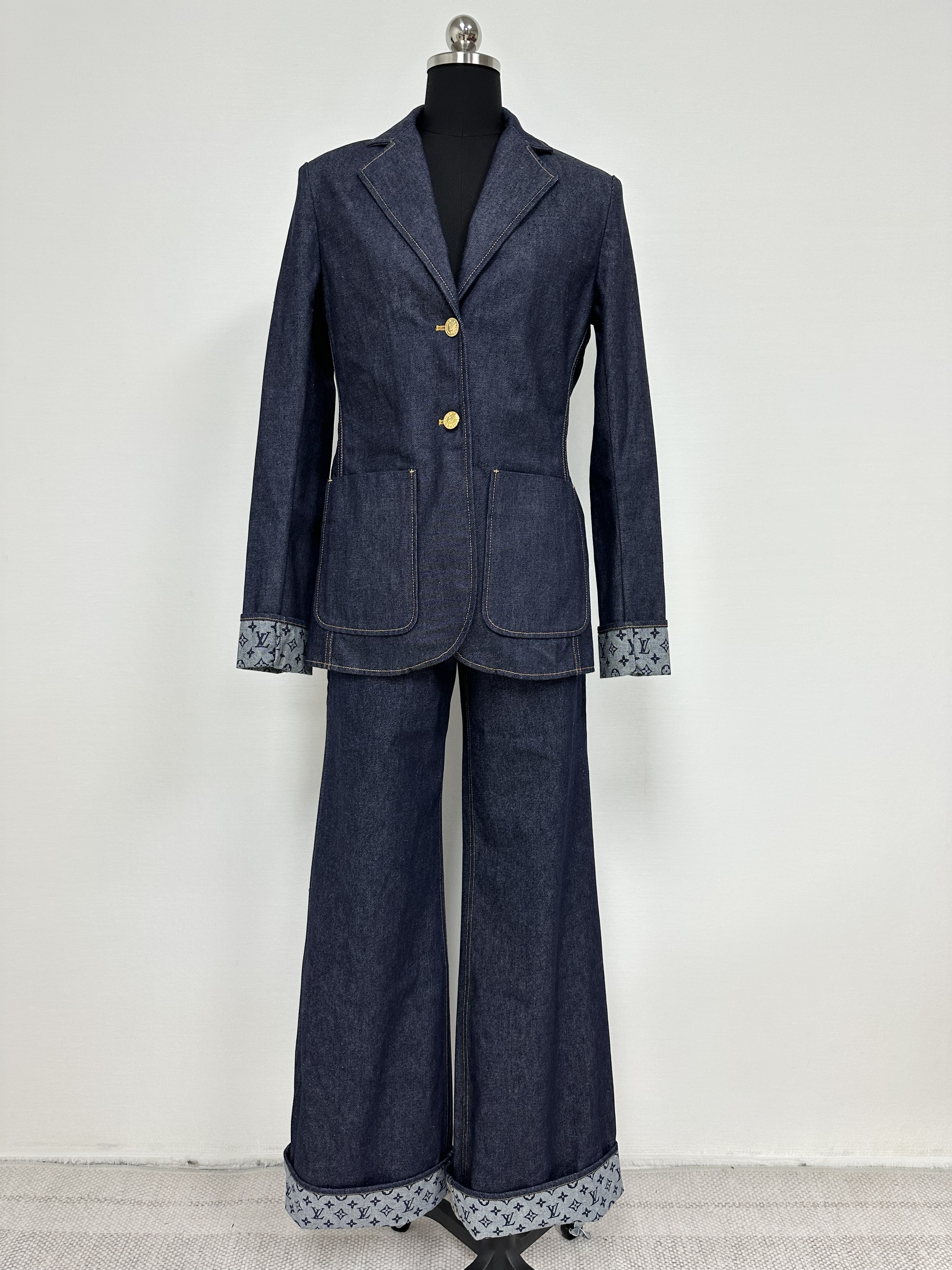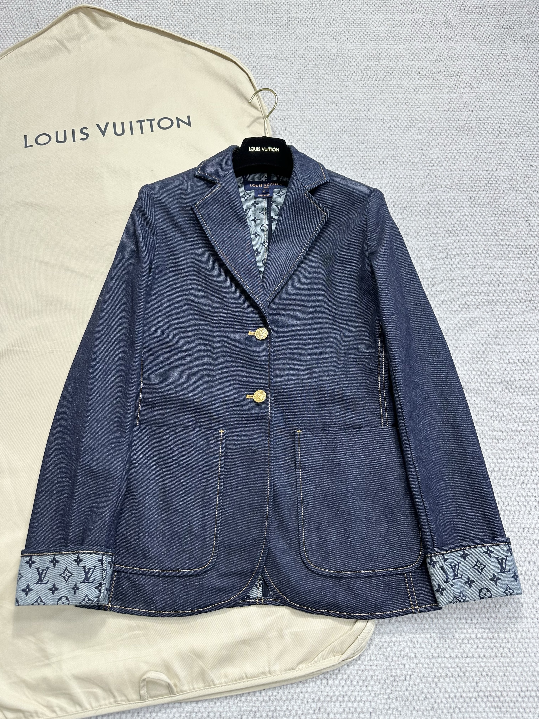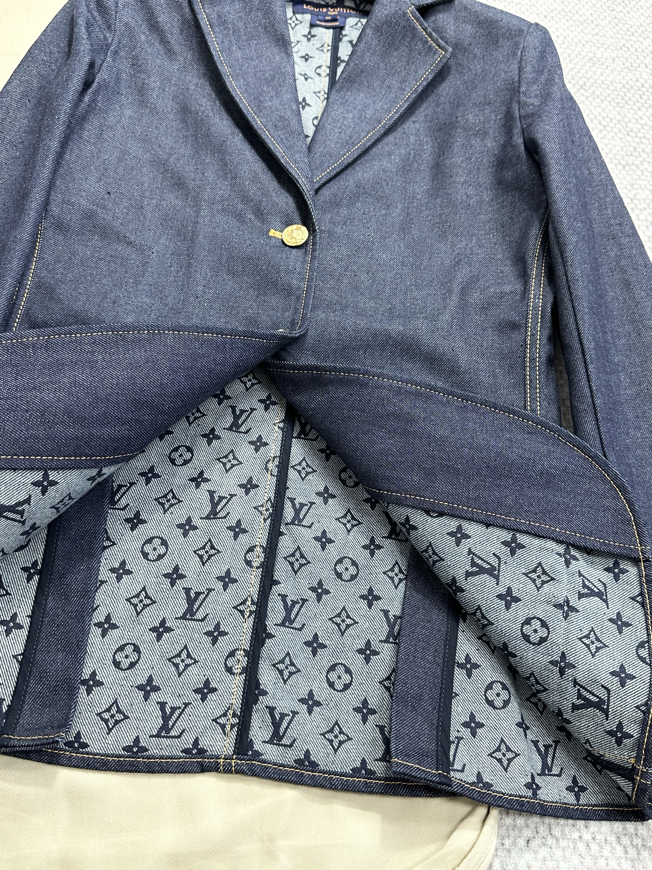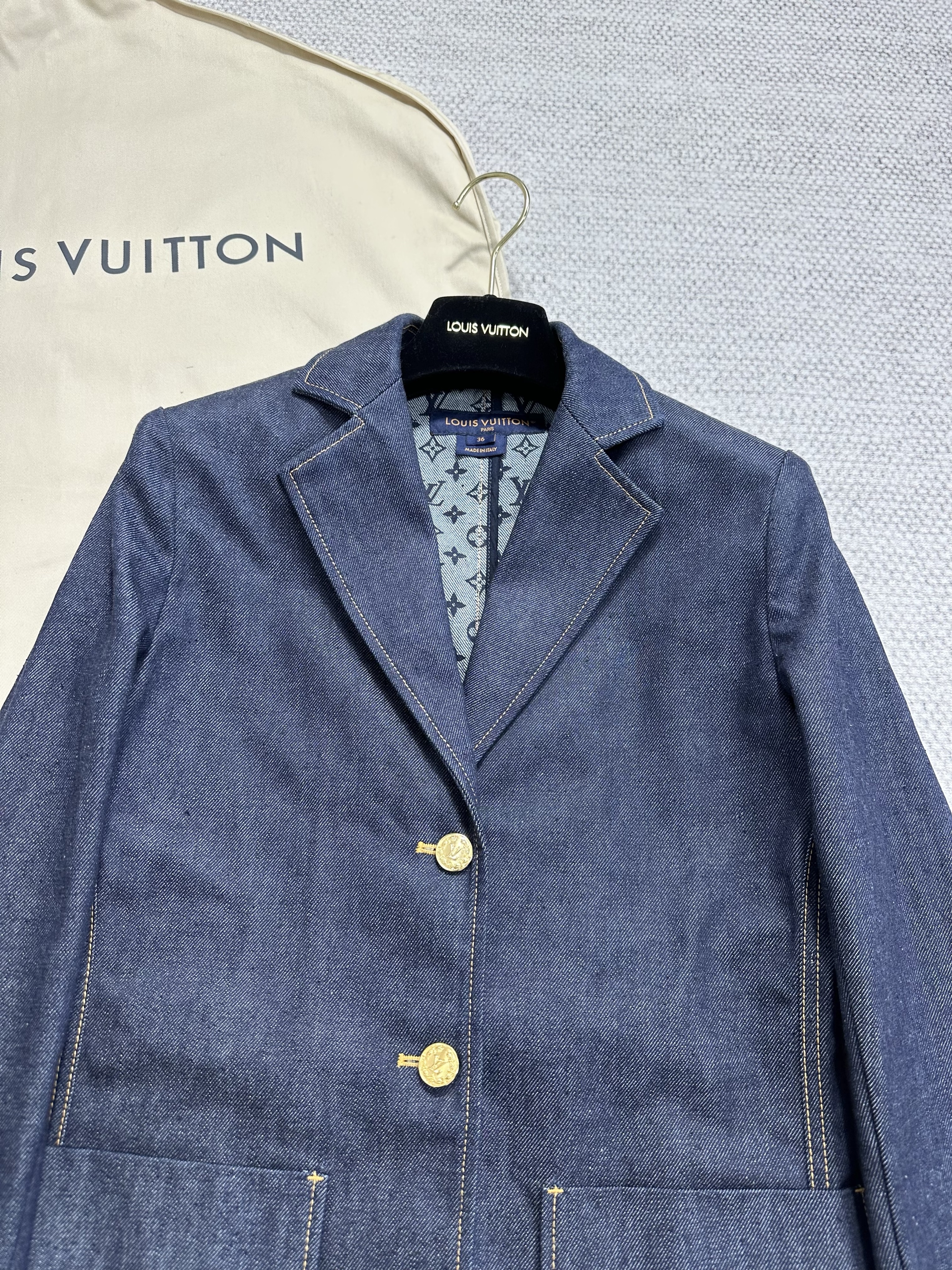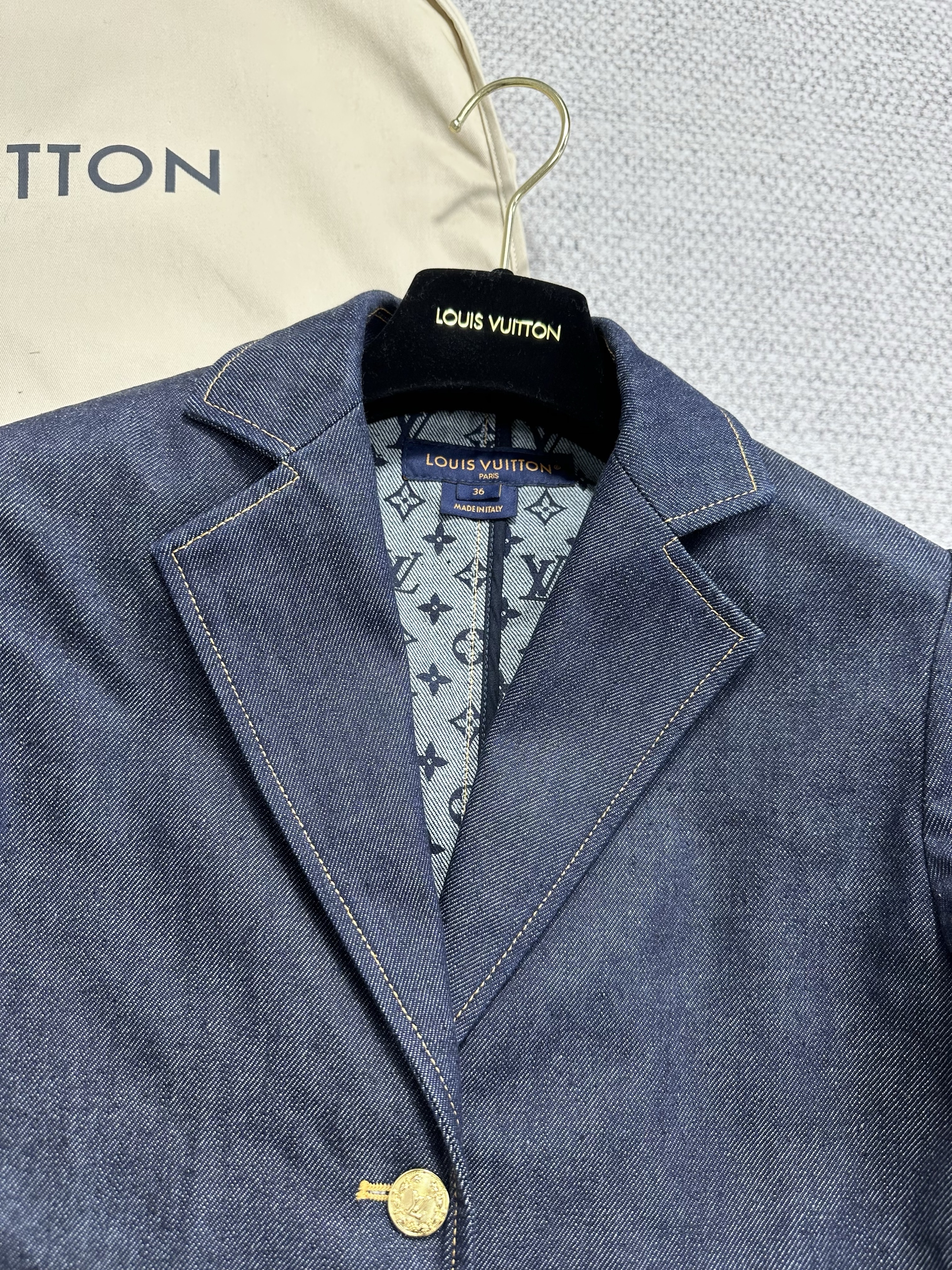 NIGO Louis Vuitton Women's College Style Blazer Collar Spring And Autumn Cotton Long Sleeve Single Breasted Denim Blazer Jacket #nigo81344
