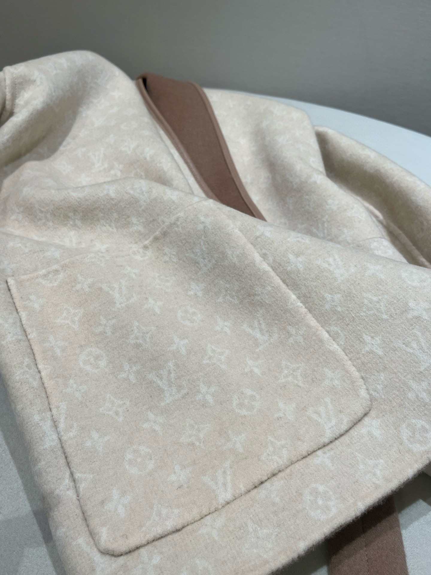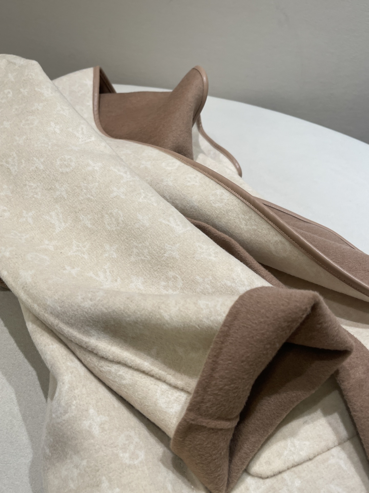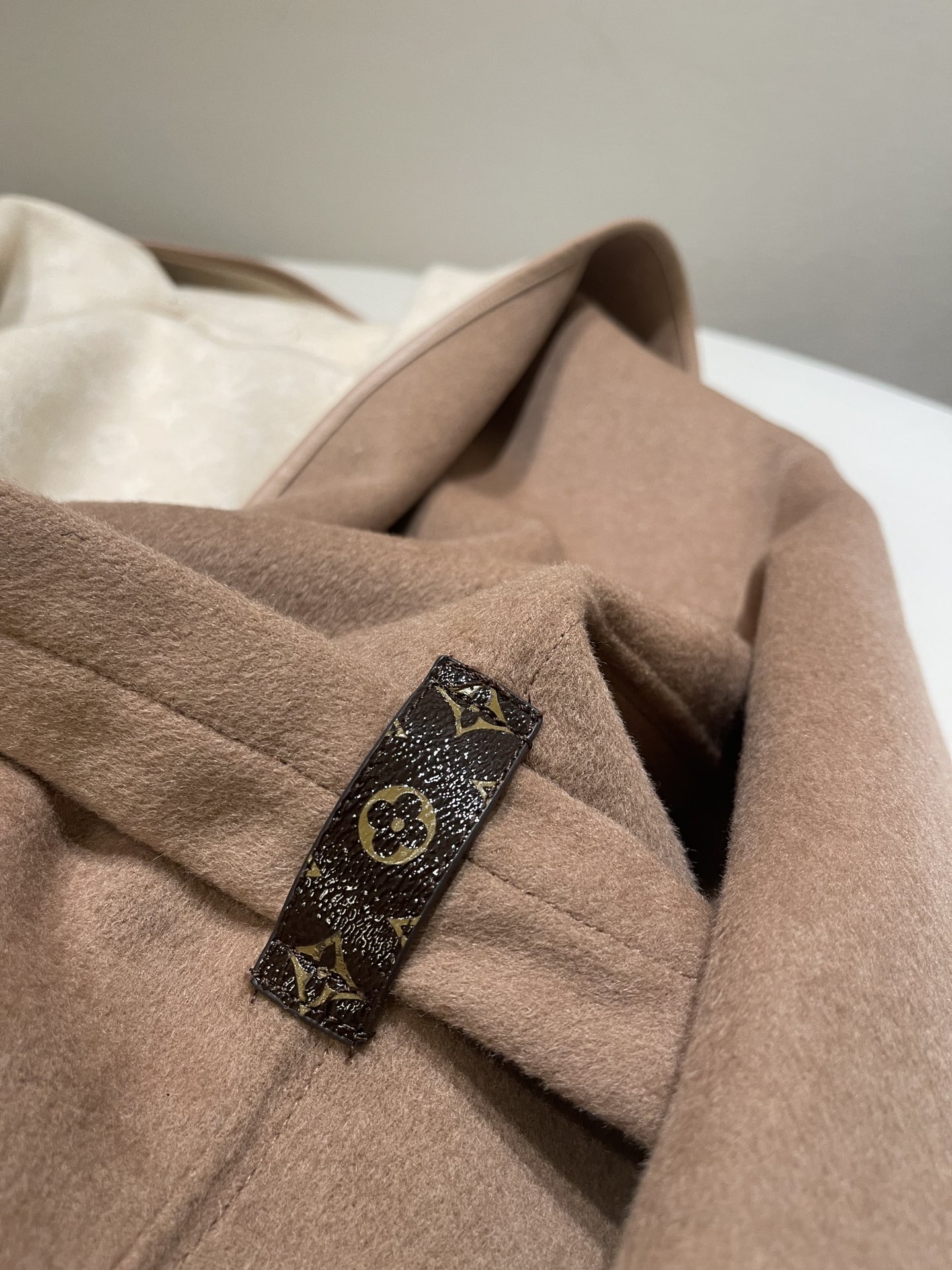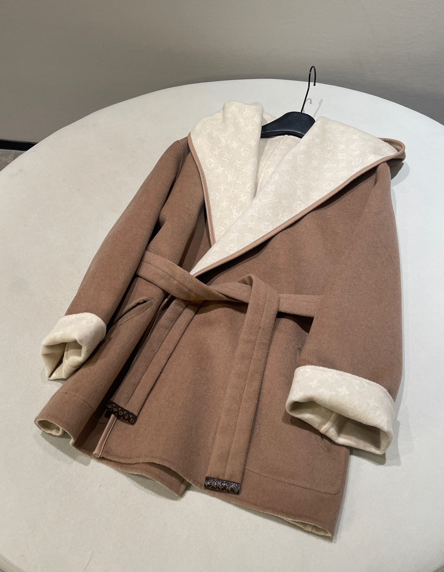 NIGO Louis Vuitton Women's Fall/Winter Brown Logo Letter Printed Reversible Wool Hooded Wrap Long Sleeve Coat Jacket #nigo73896