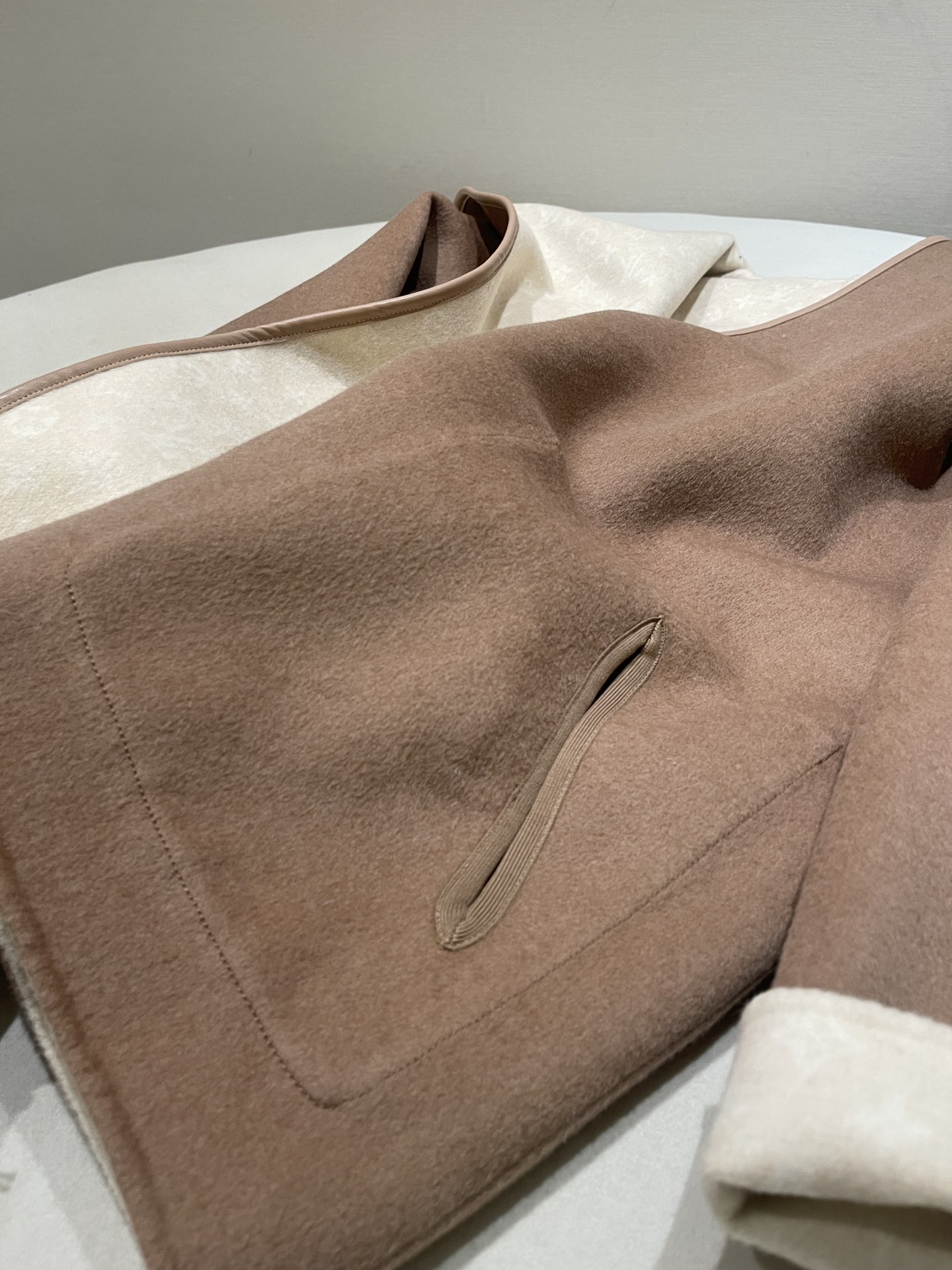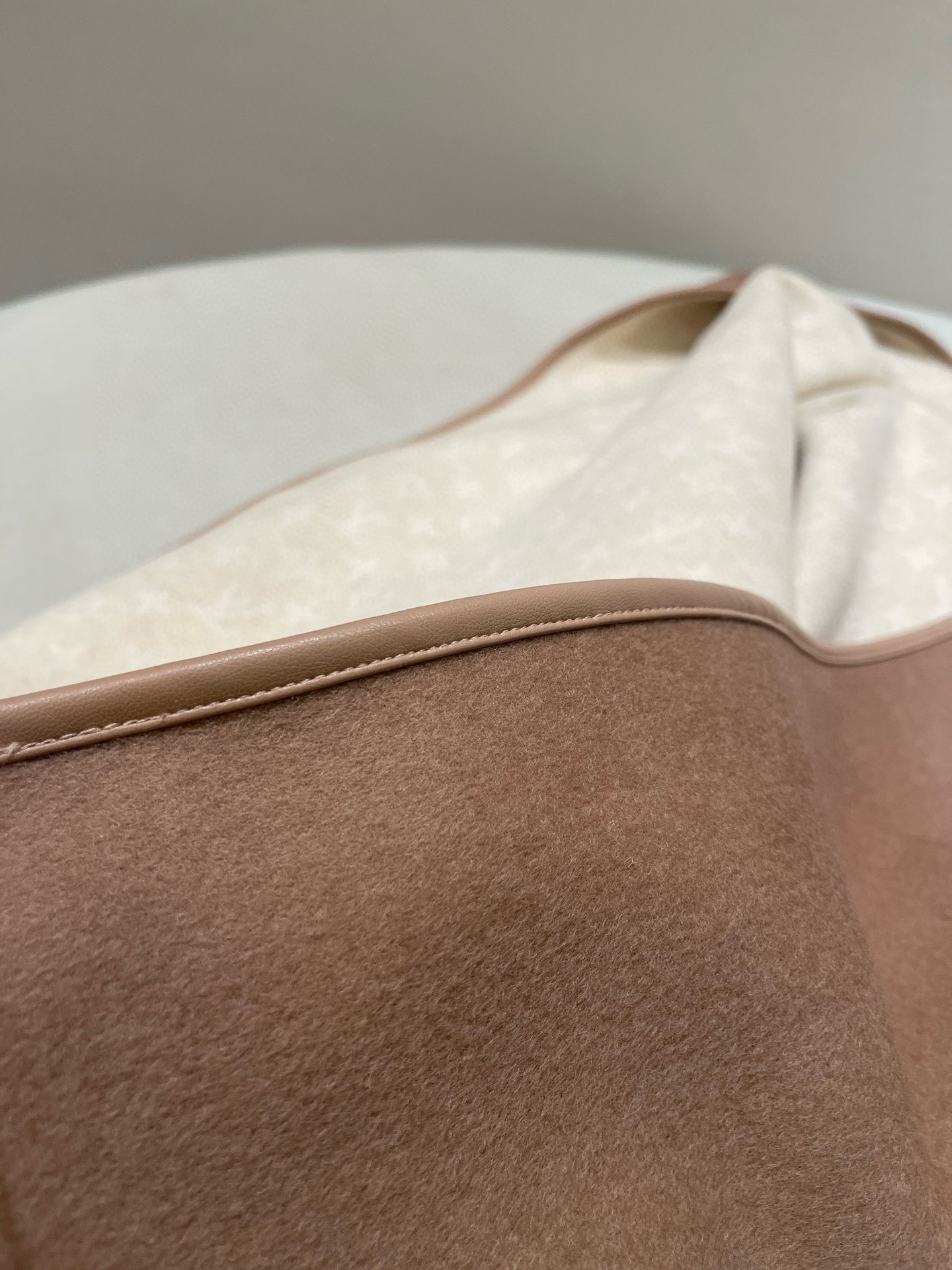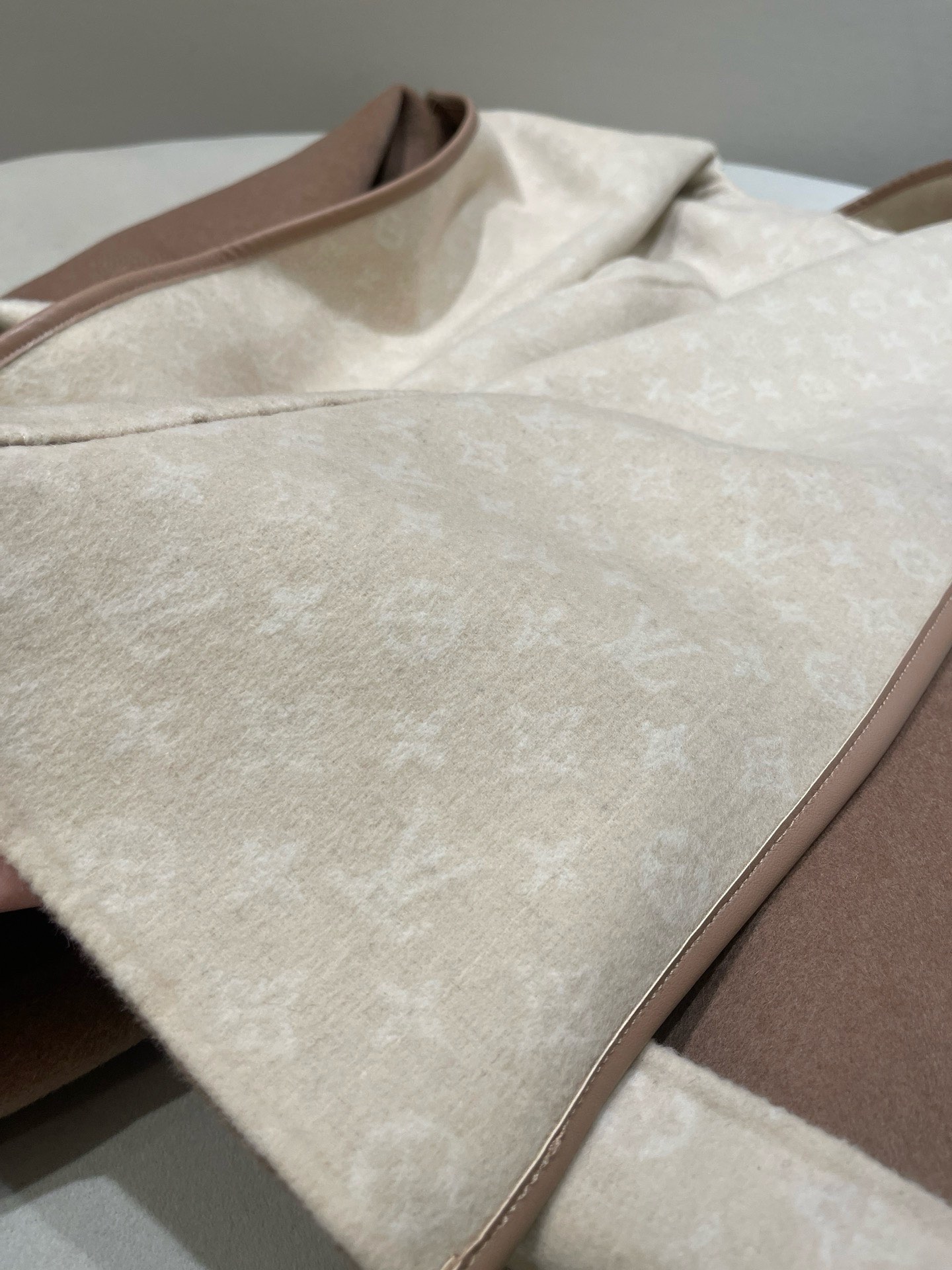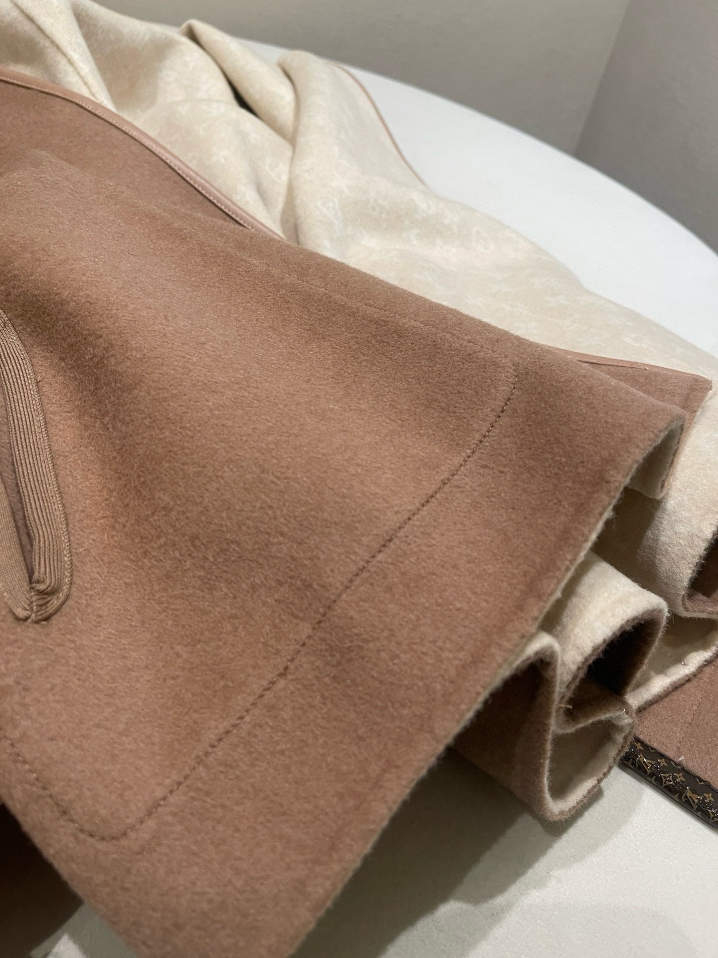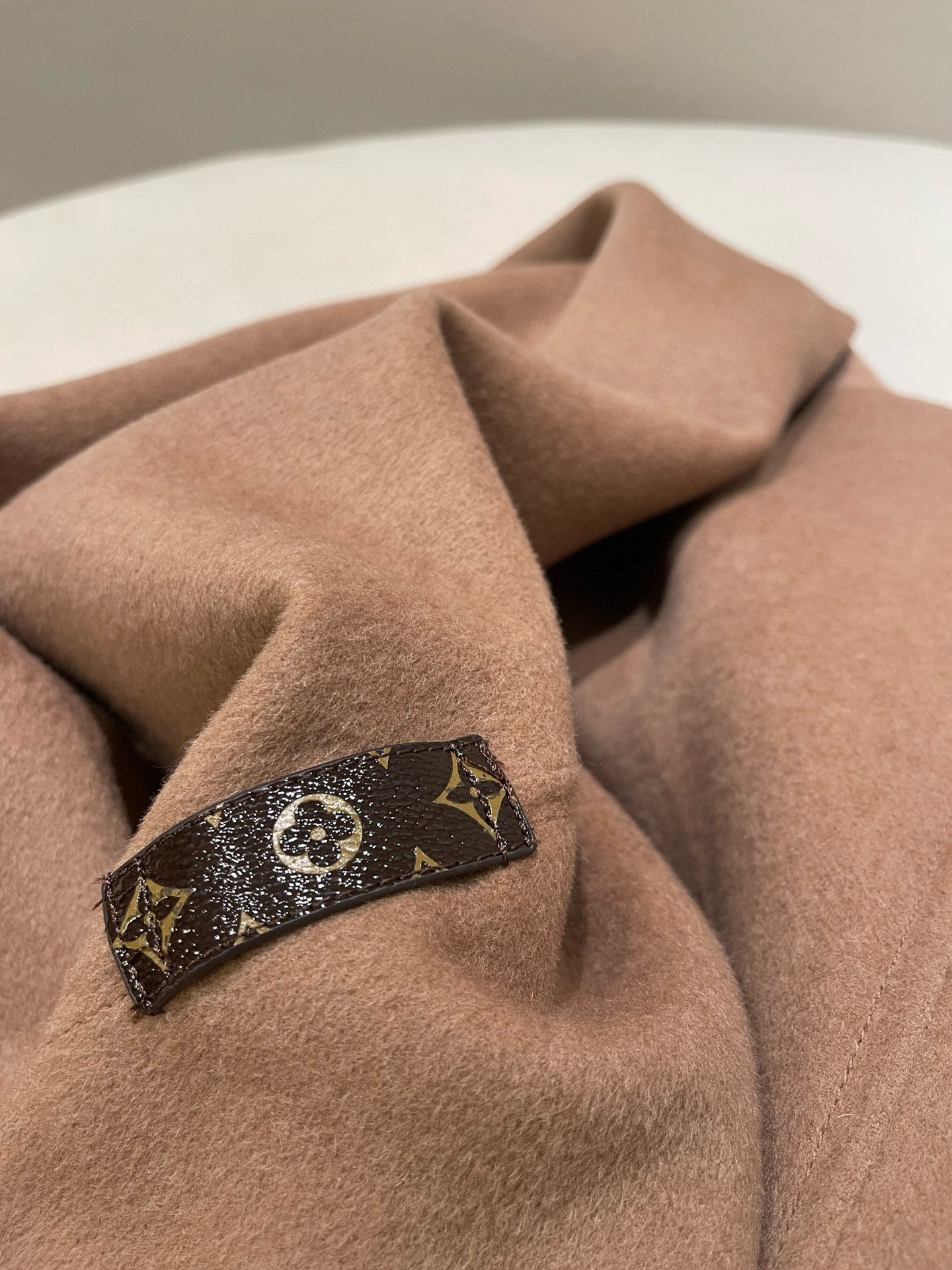NIGO Louis Vuitton Women's Fall/Winter Brown Logo Letter Printed Reversible Wool Hooded Wrap Long Sleeve Coat Jacket #nigo73896