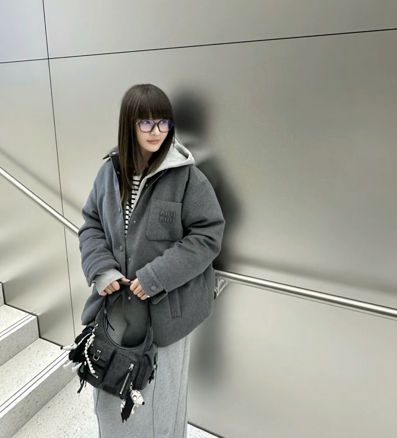 NIGO MiuMiu Women's Autumn and Winter Embroidery Letter Logo Tweed Down Long Sleeve Jacket #nigo72893