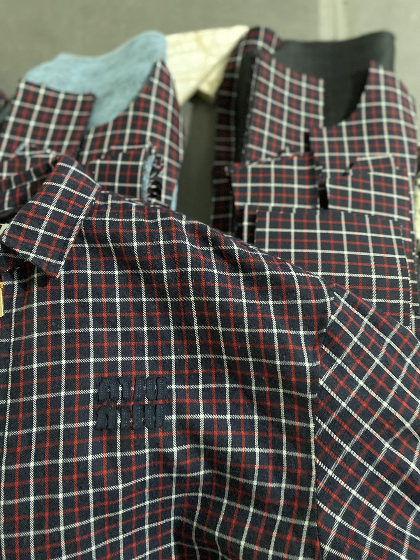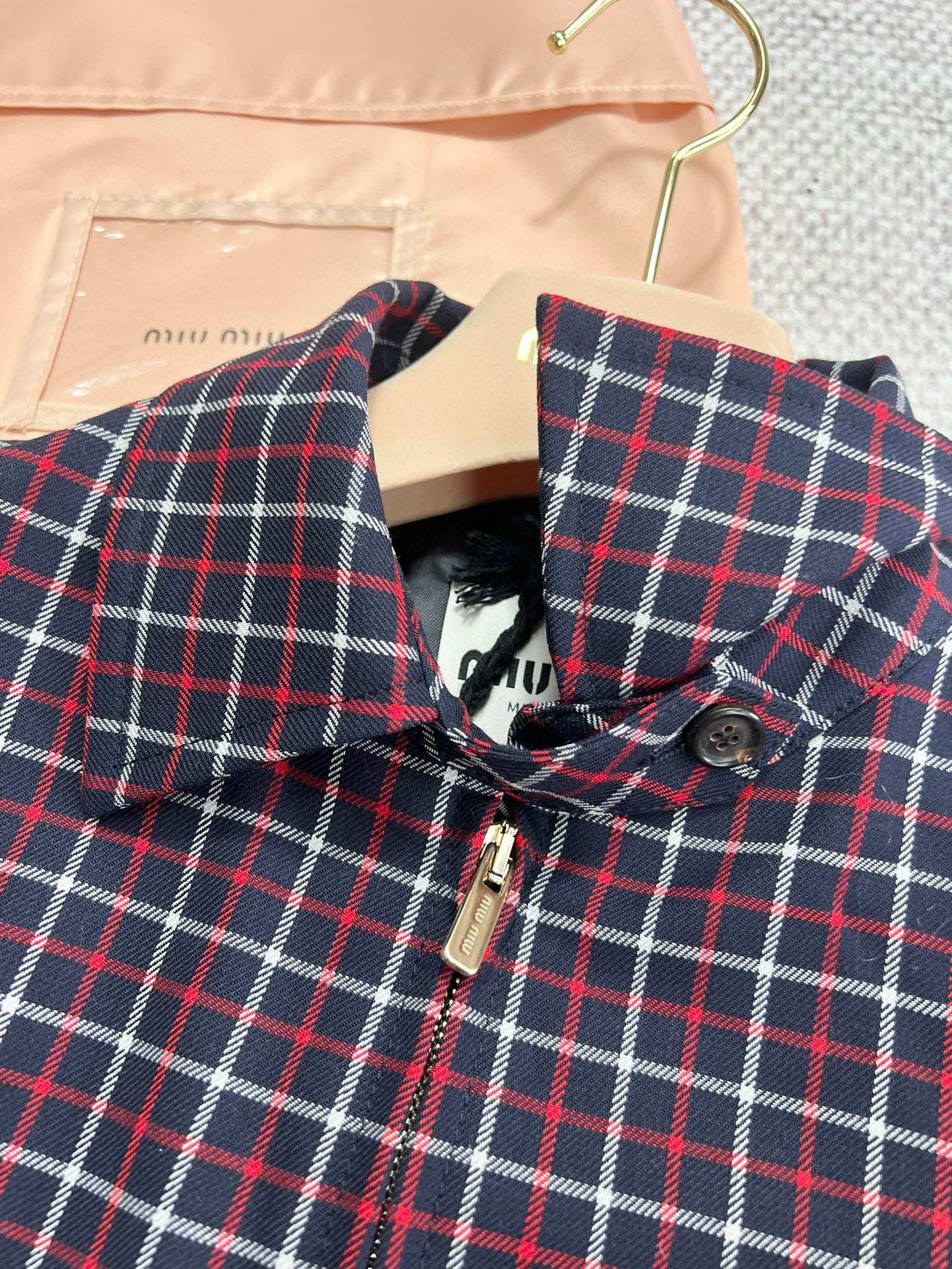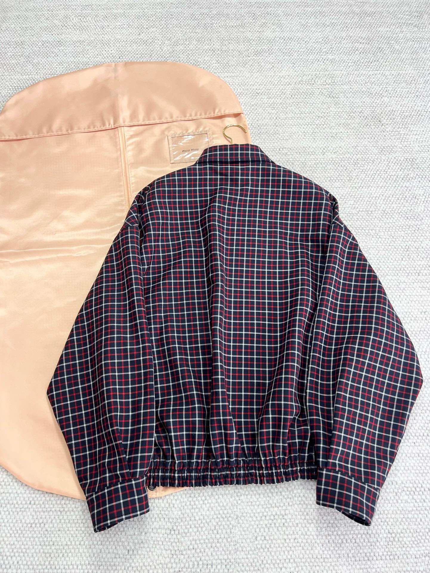 NIGO MiuMiu Women's Spring and Autumn Embroidered Logo Checkered Zipper Long Sleeve Jacket #nigo72449