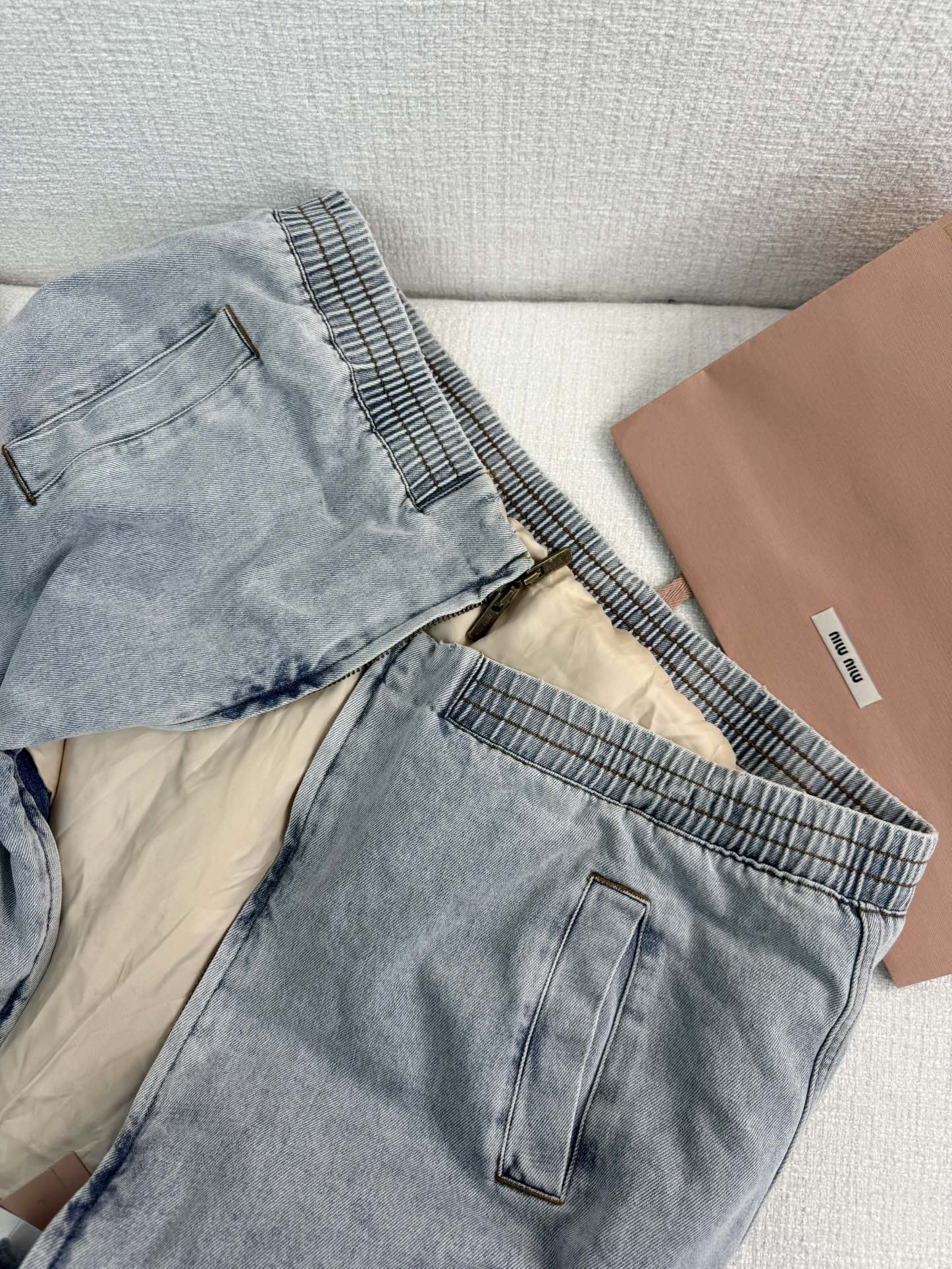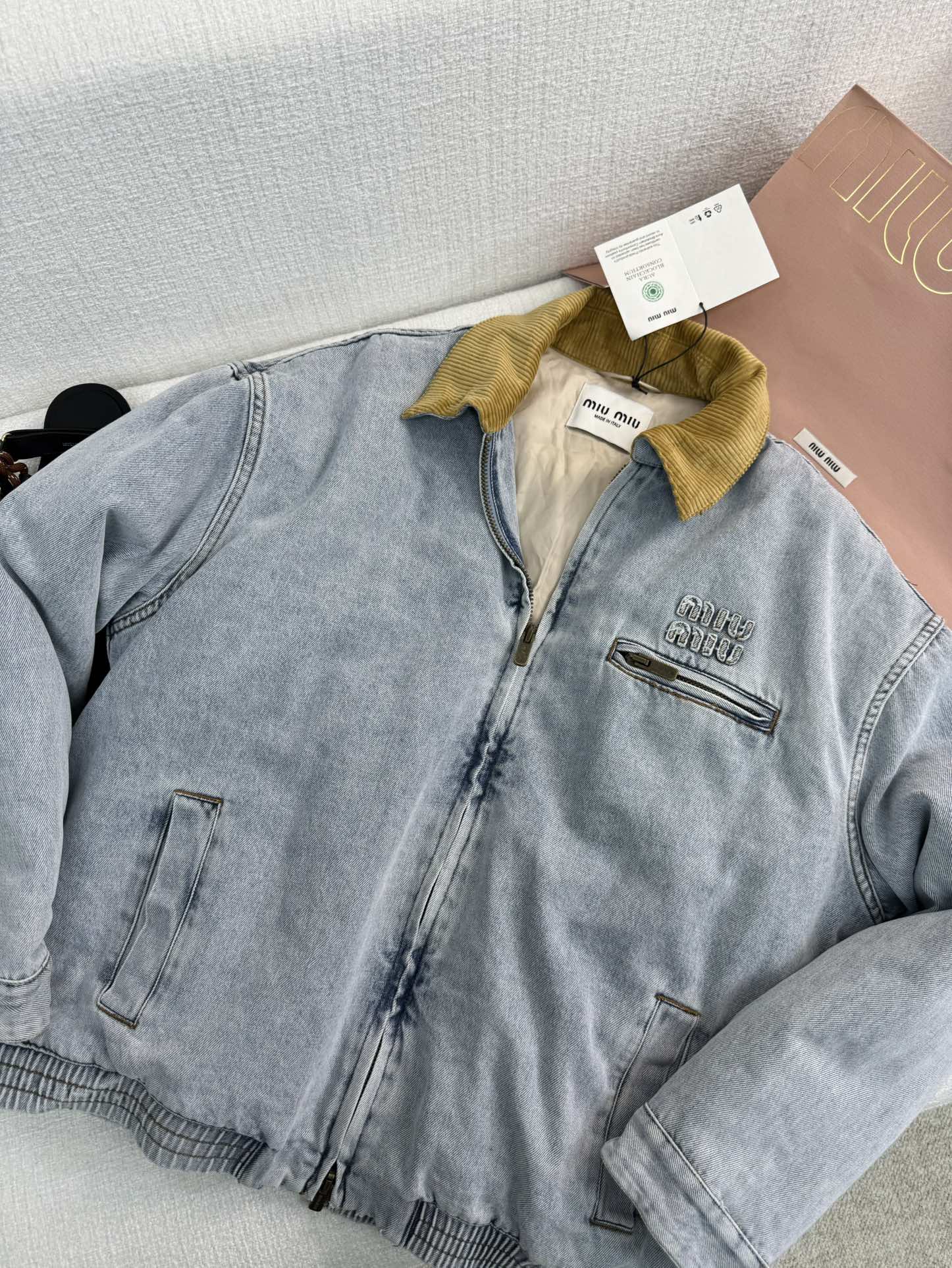 NIGO MiuMiu Women's Spring and Autumn Lapel Zipper Straight Blue Long Sleeve Denim Jacket #nigo73414