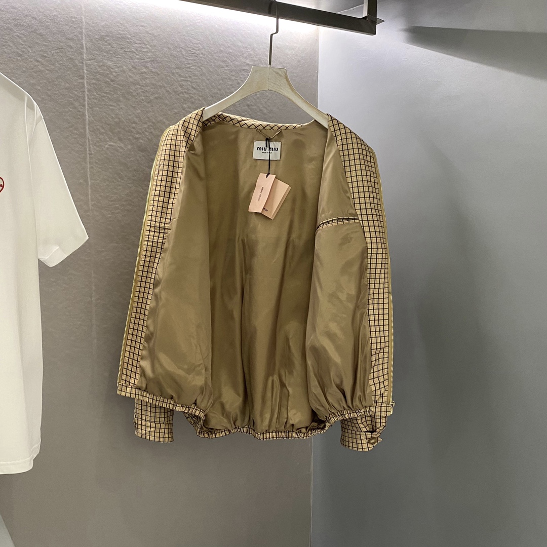 NIGO MiuMiu Women's Spring and Autumn Plaid Letter Embroidery Logo Zipper Standing Collar Long Sleeve Jacket #nigo72311