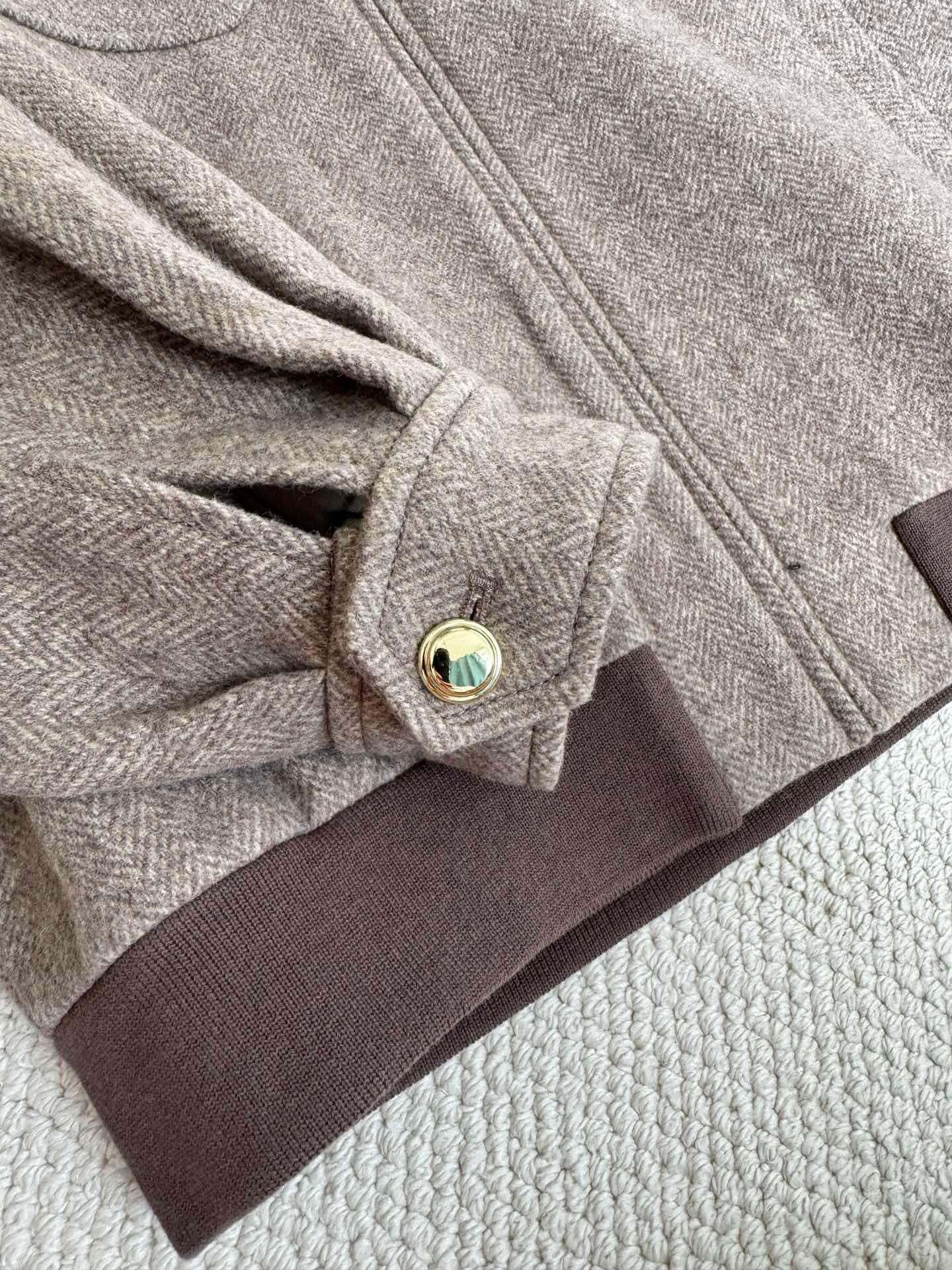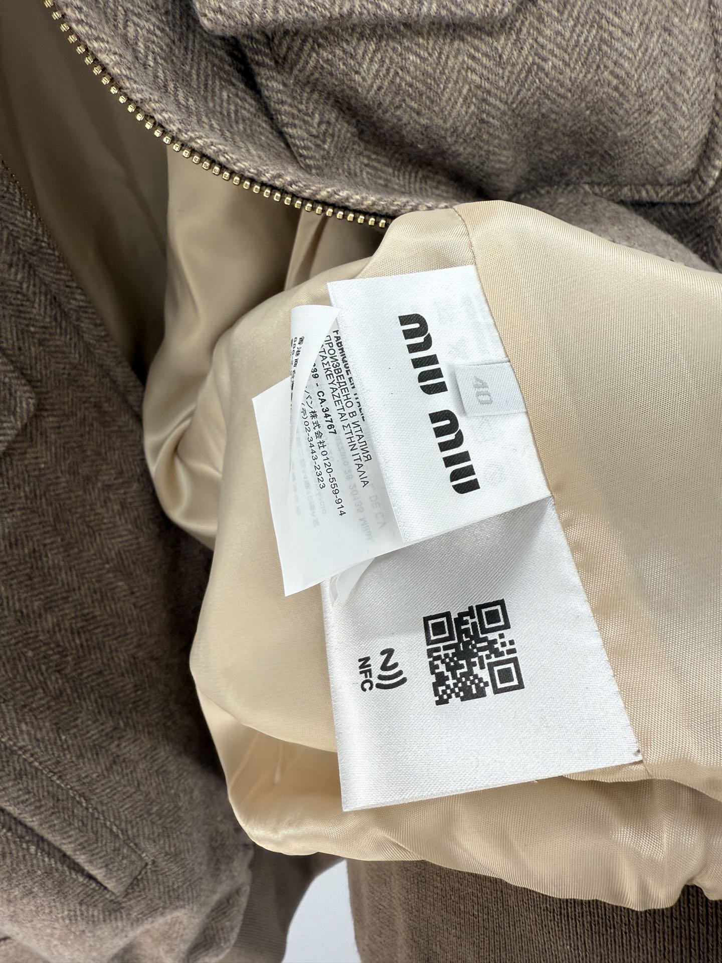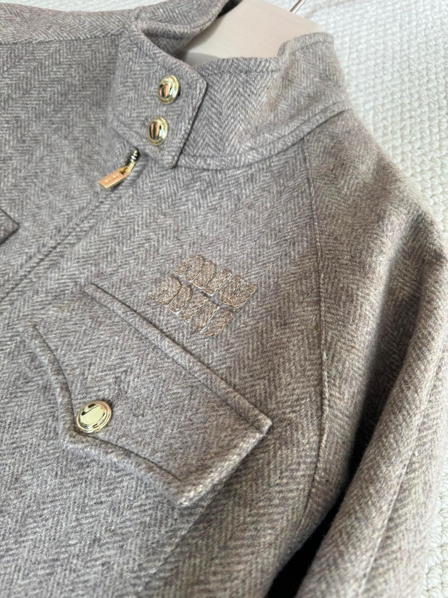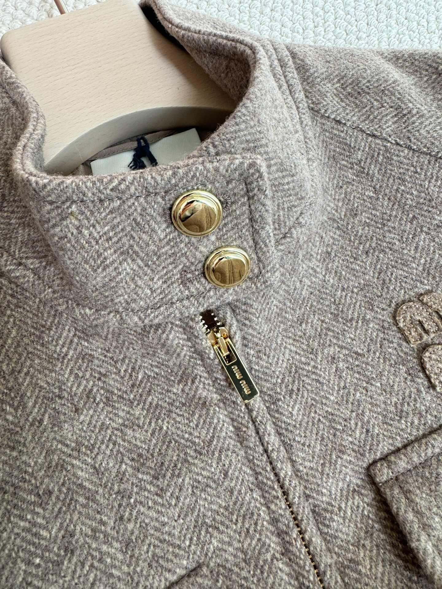 NIGO MiuMiu Women's Spring and Autumn Wool Herringbone Twill Embroidery Logo Standing Collar Zipper Long Sleeve Jacket #nigo73697