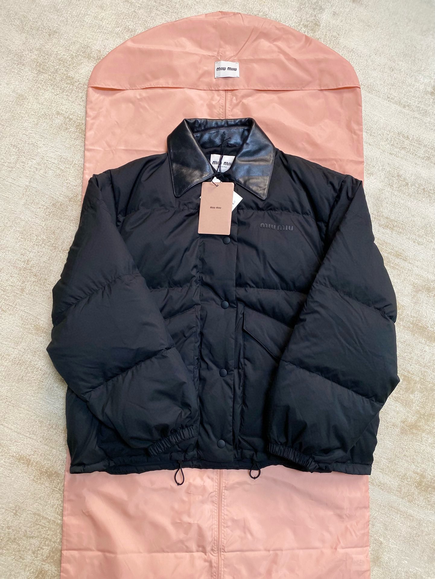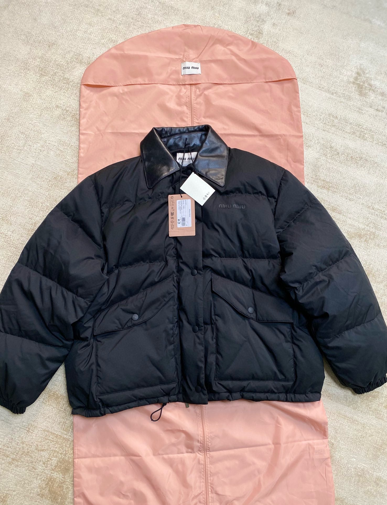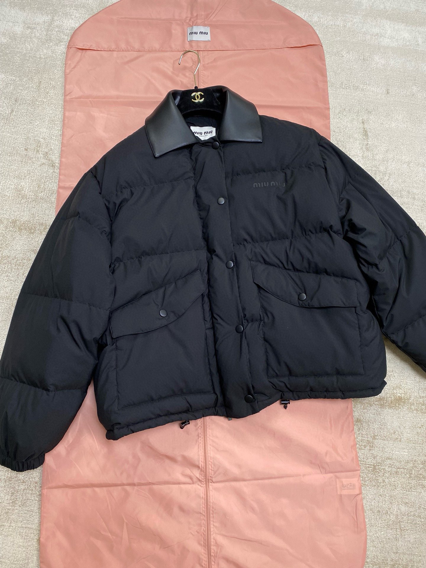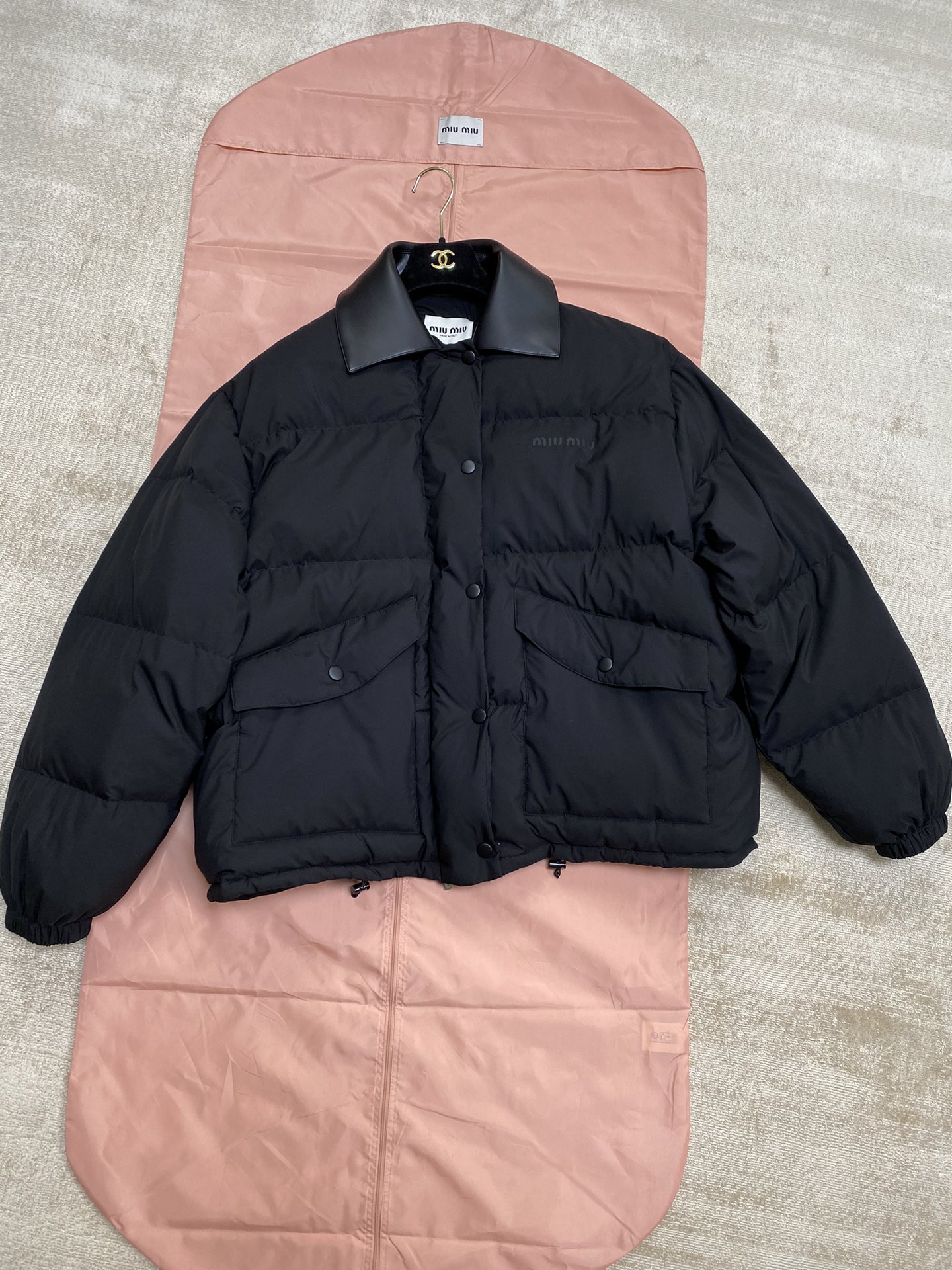 NIGO MiuMiu Women's Winter Black Lapel Drawstring Zipper Long Sleeve Puffer Down Jacket #nigo73523