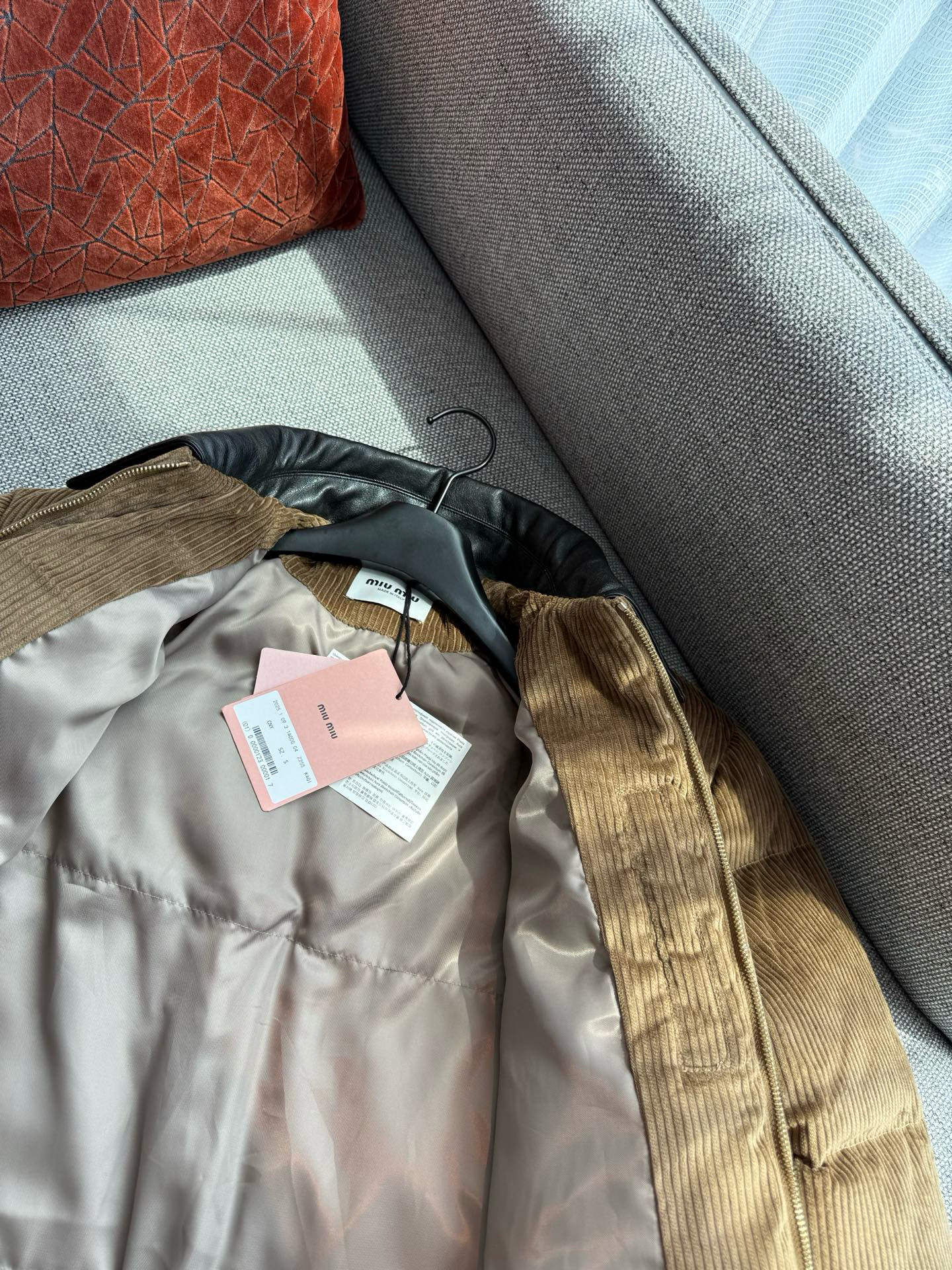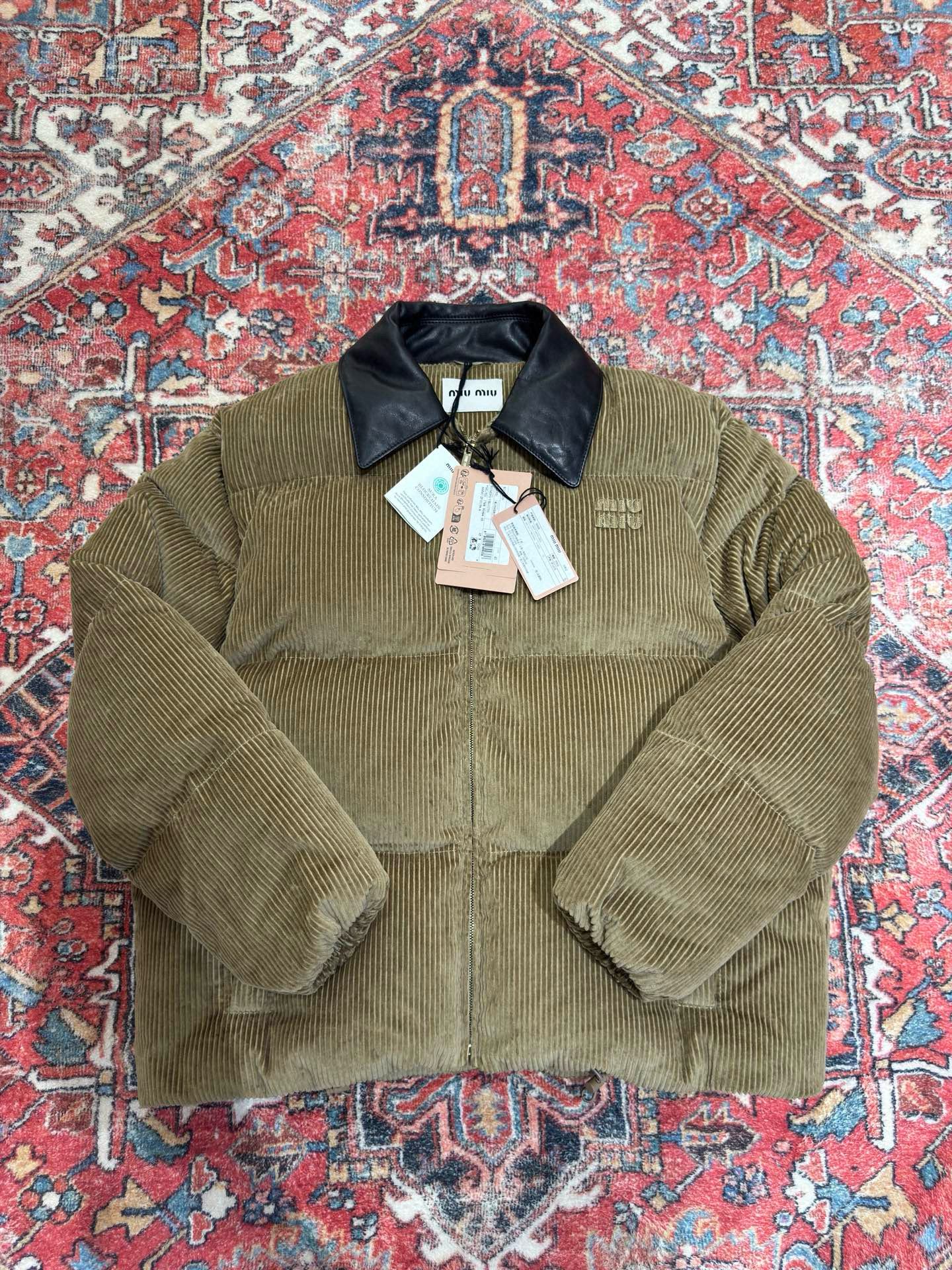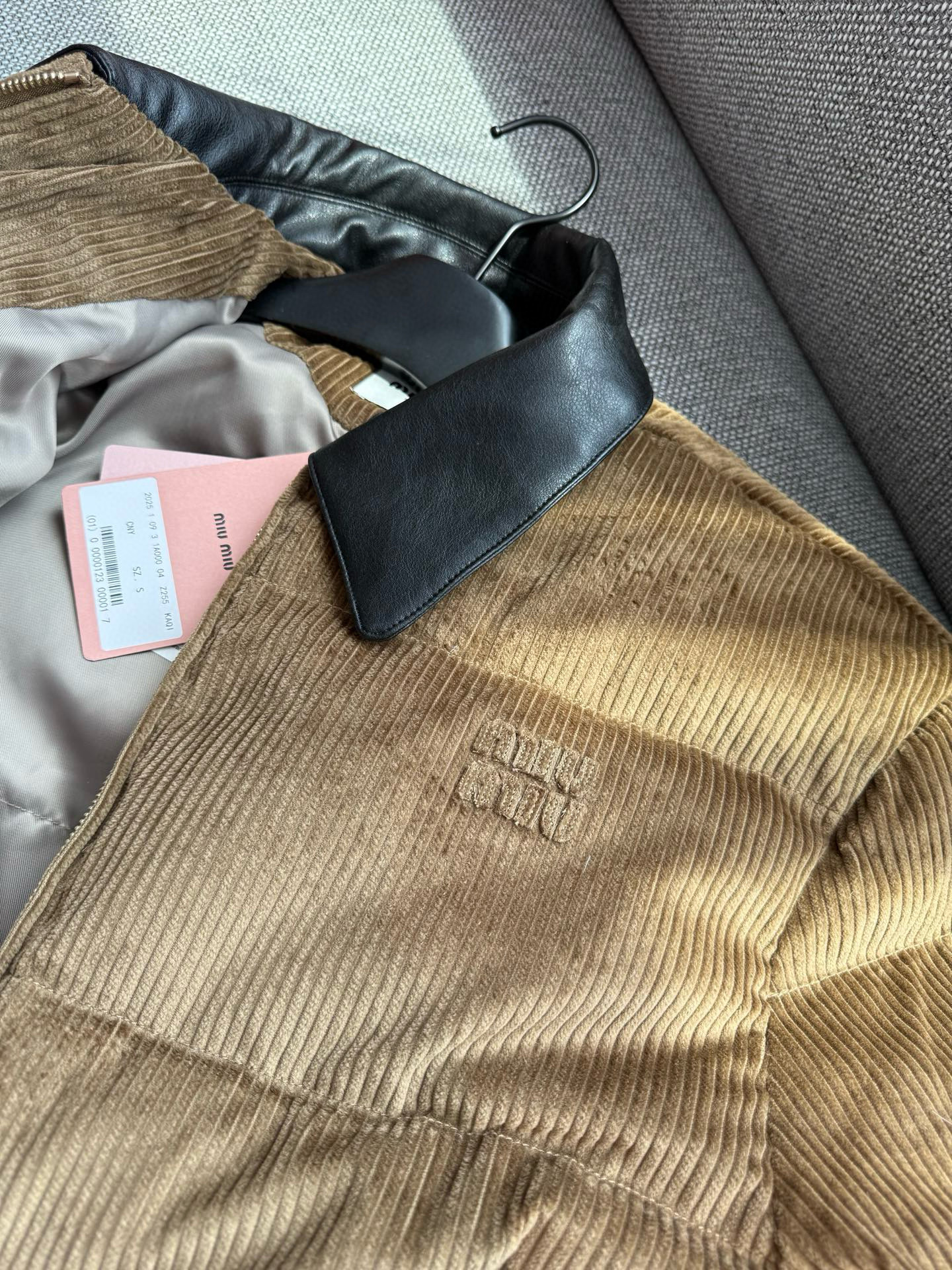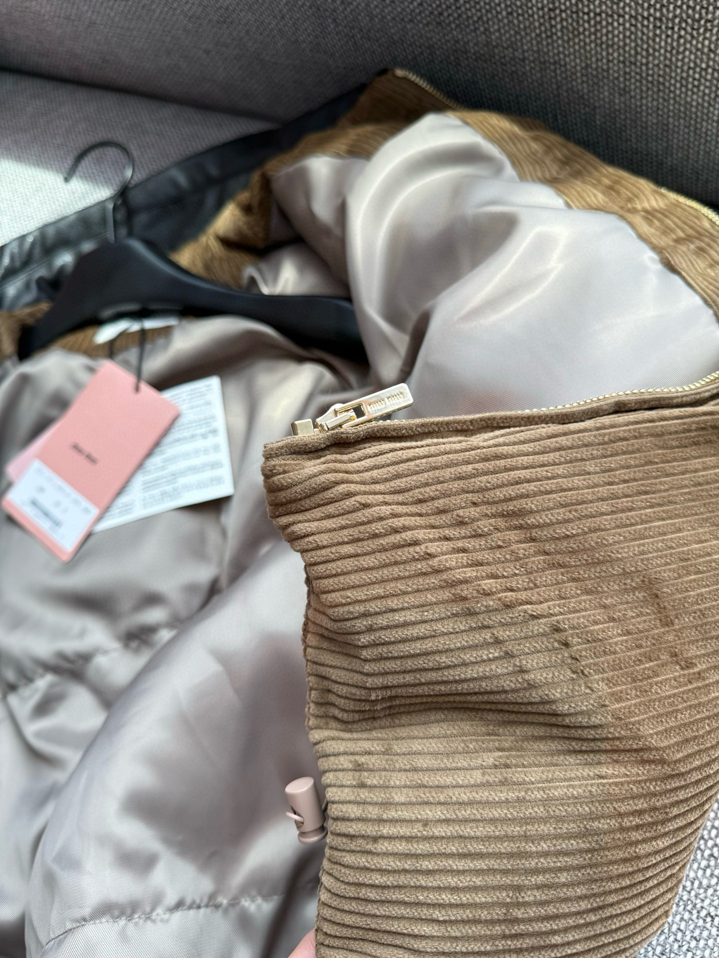 NIGO MiuMiu Women's Winter Fashion Casual Lapel Zipper Embroidered Corduroy Drawstring Hem Zipper Closure Down Coat Jacket #nigo79244