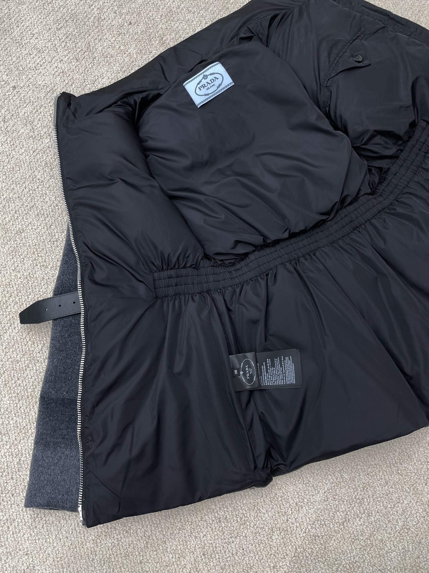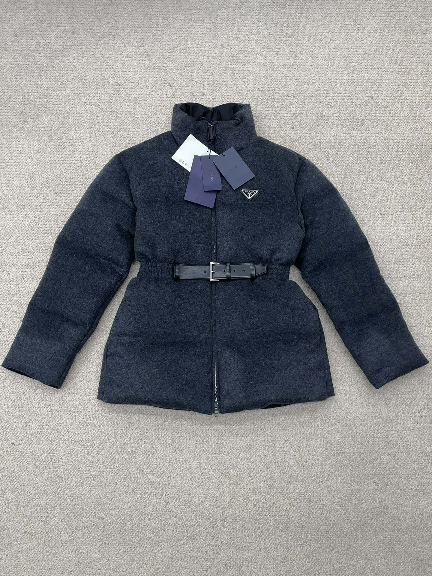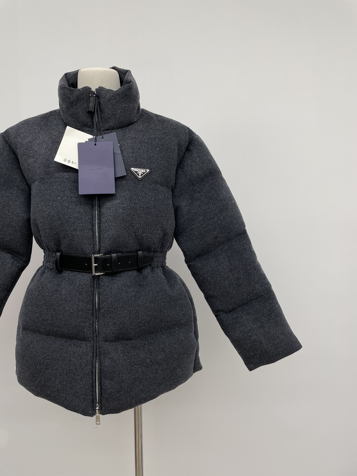 NIGO Prada Women's Fall and Winter Logo Logo Standing Collar Belt Loose Zipper Long Sleeve Puffer Down Jacket #nigo73966