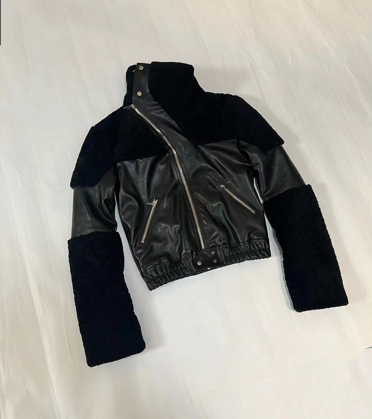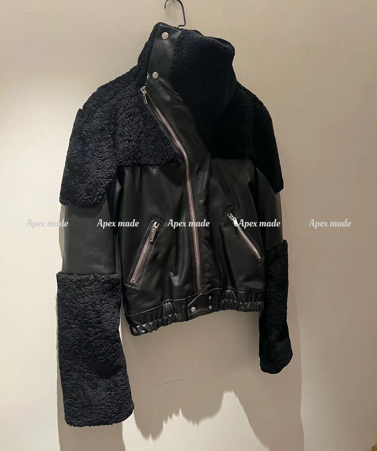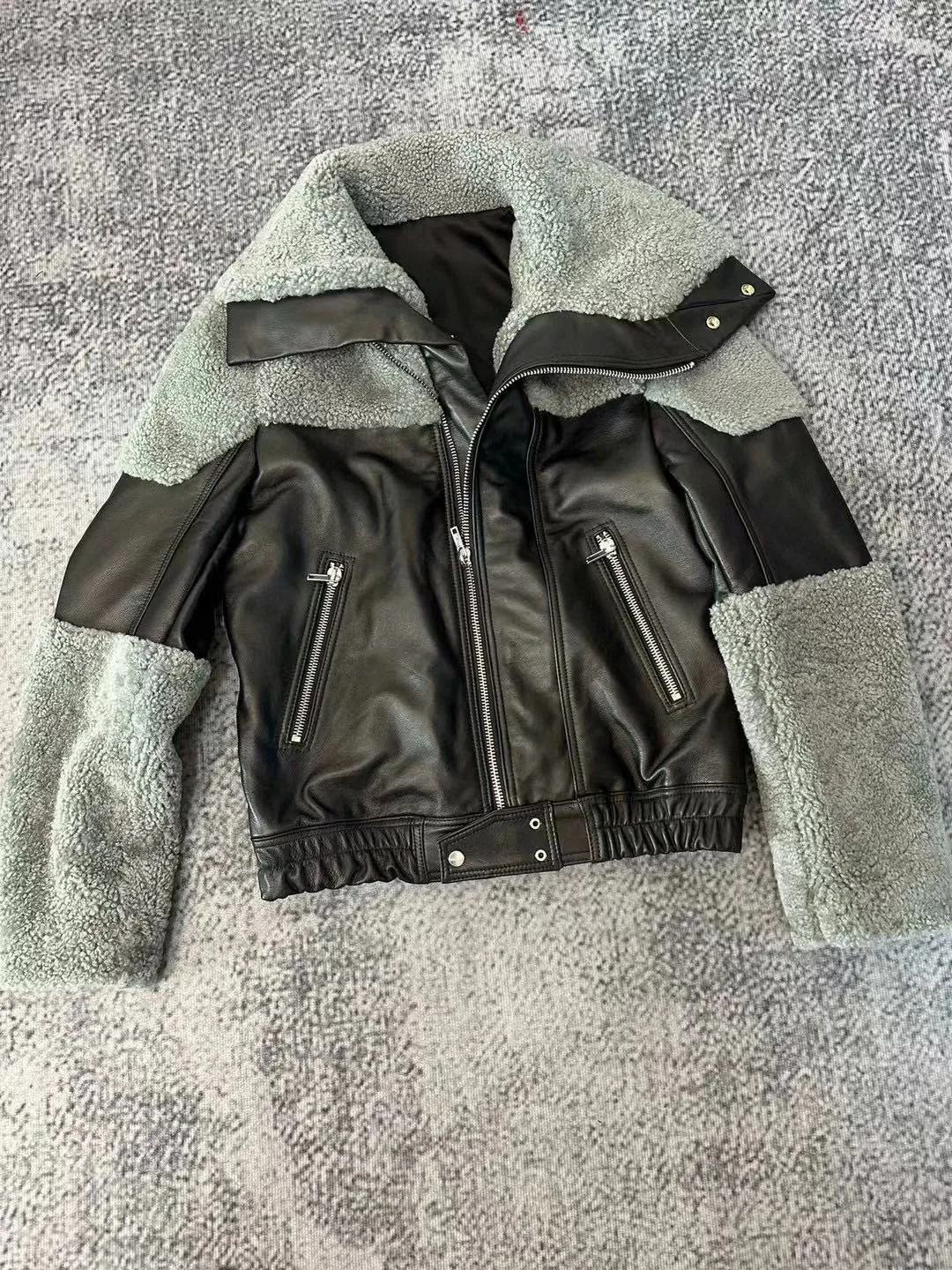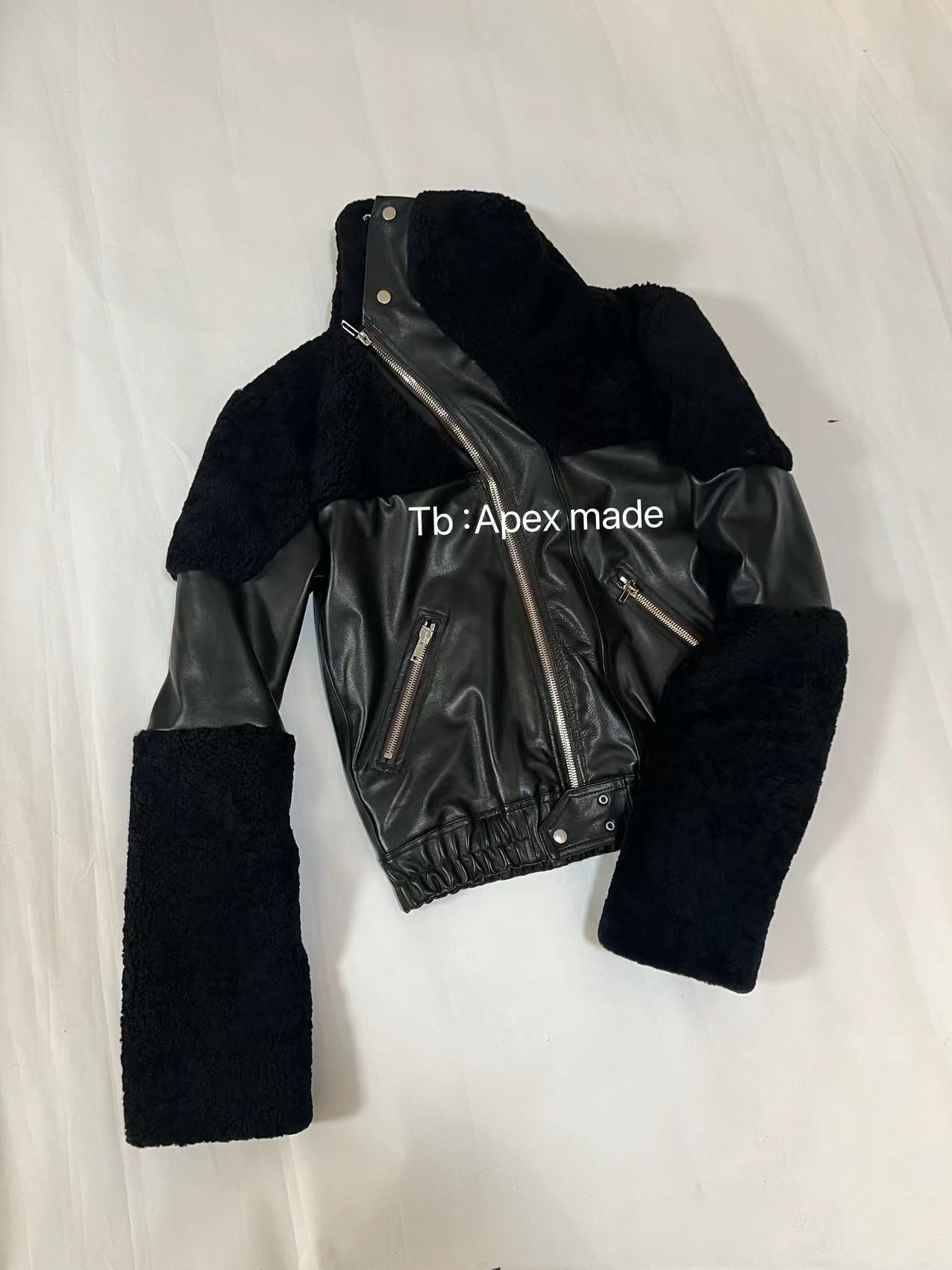 NIGO Rick Owens Men's And Women's Patchwork Collar Leather Jacket Fashion High Street Cool Lapel Short Jacket Ngvp #nigo6628