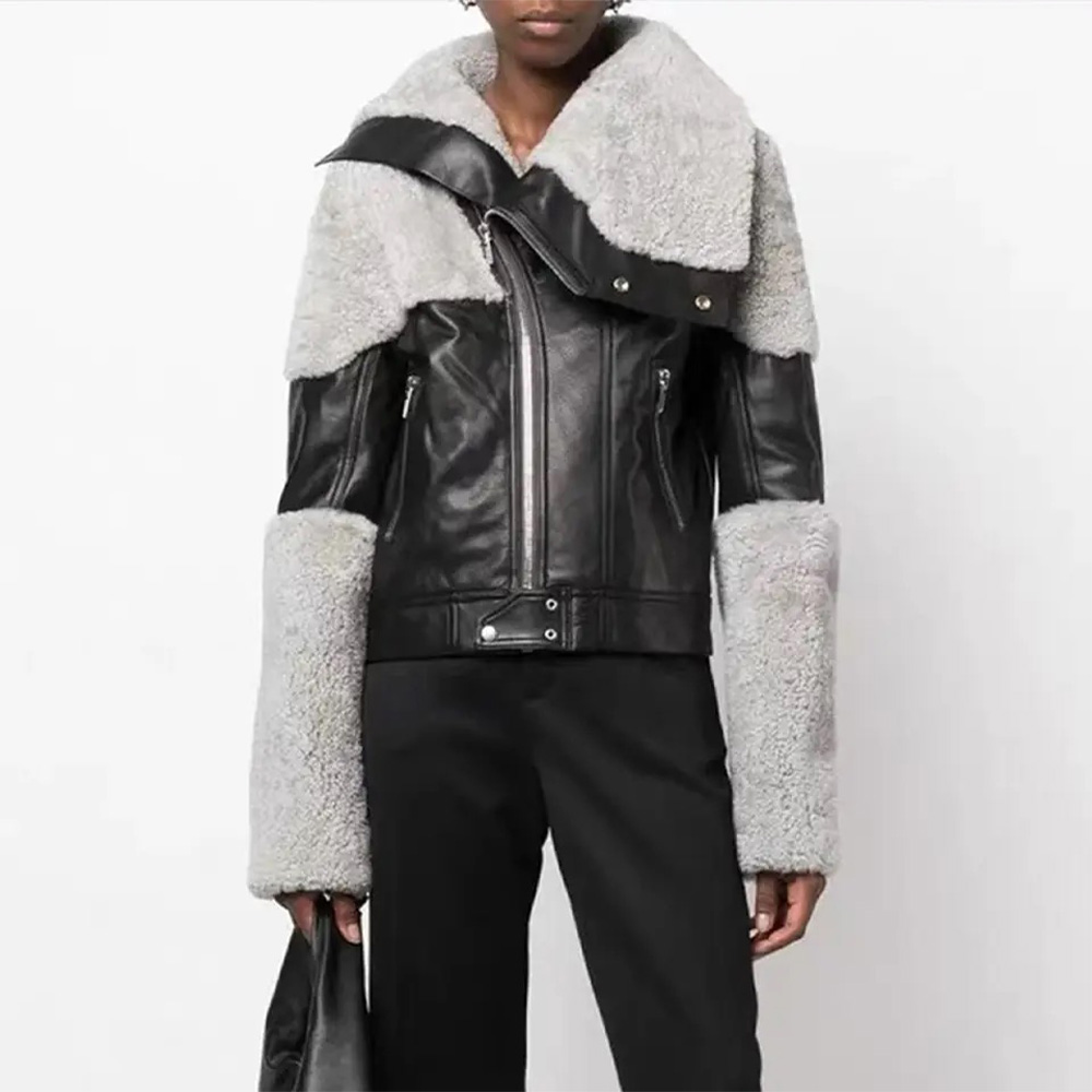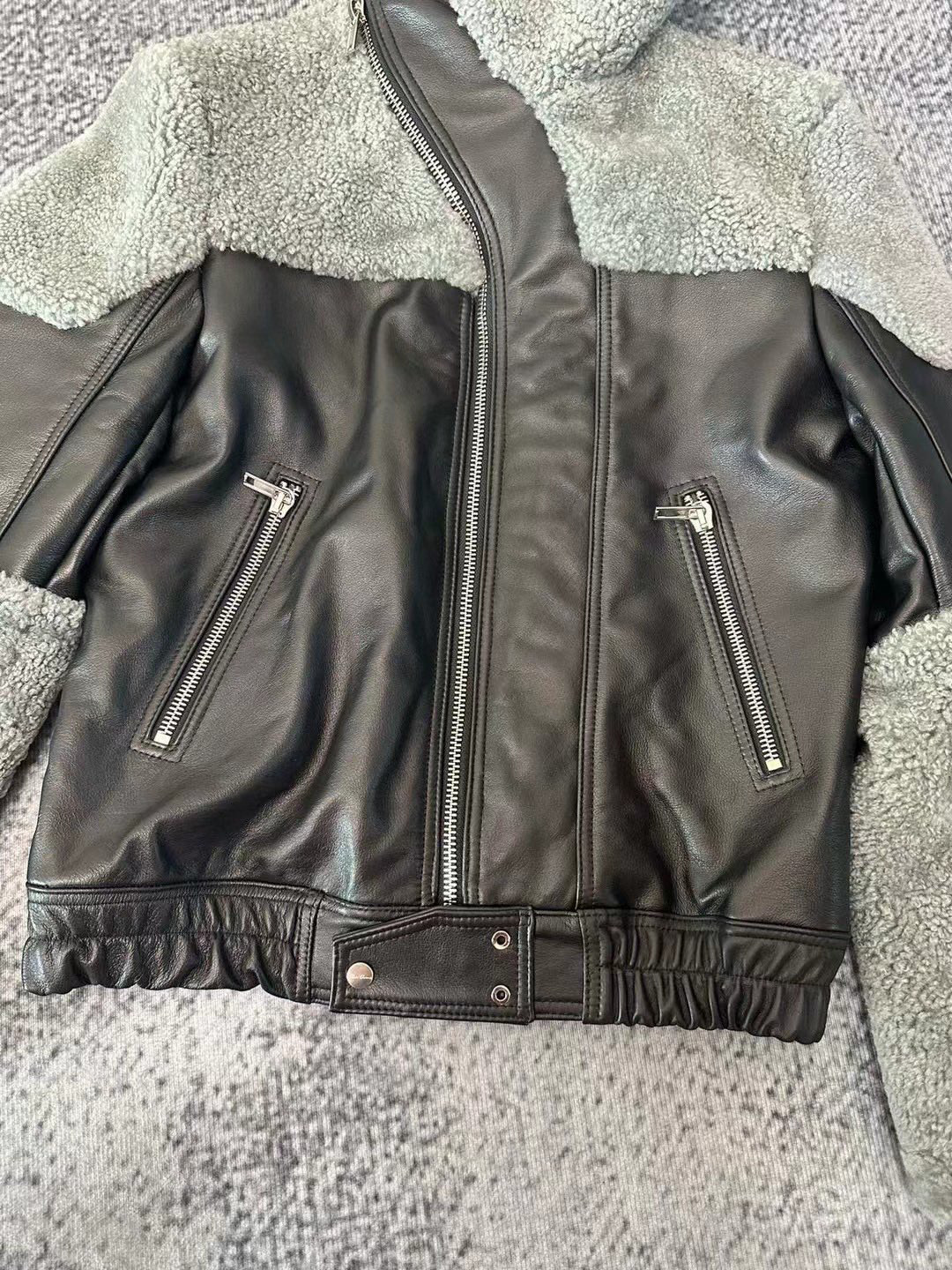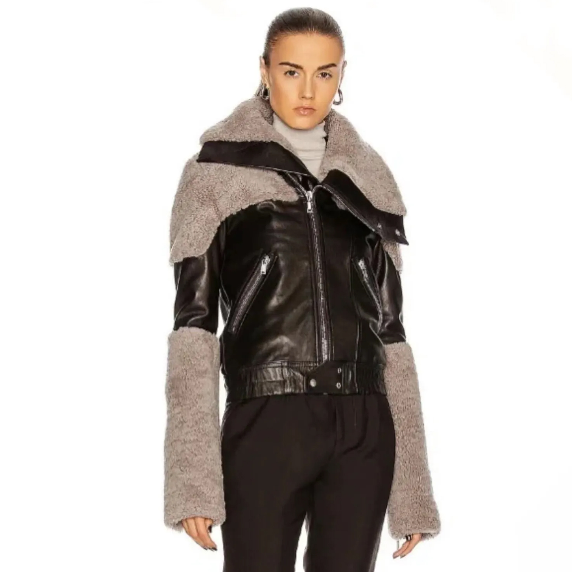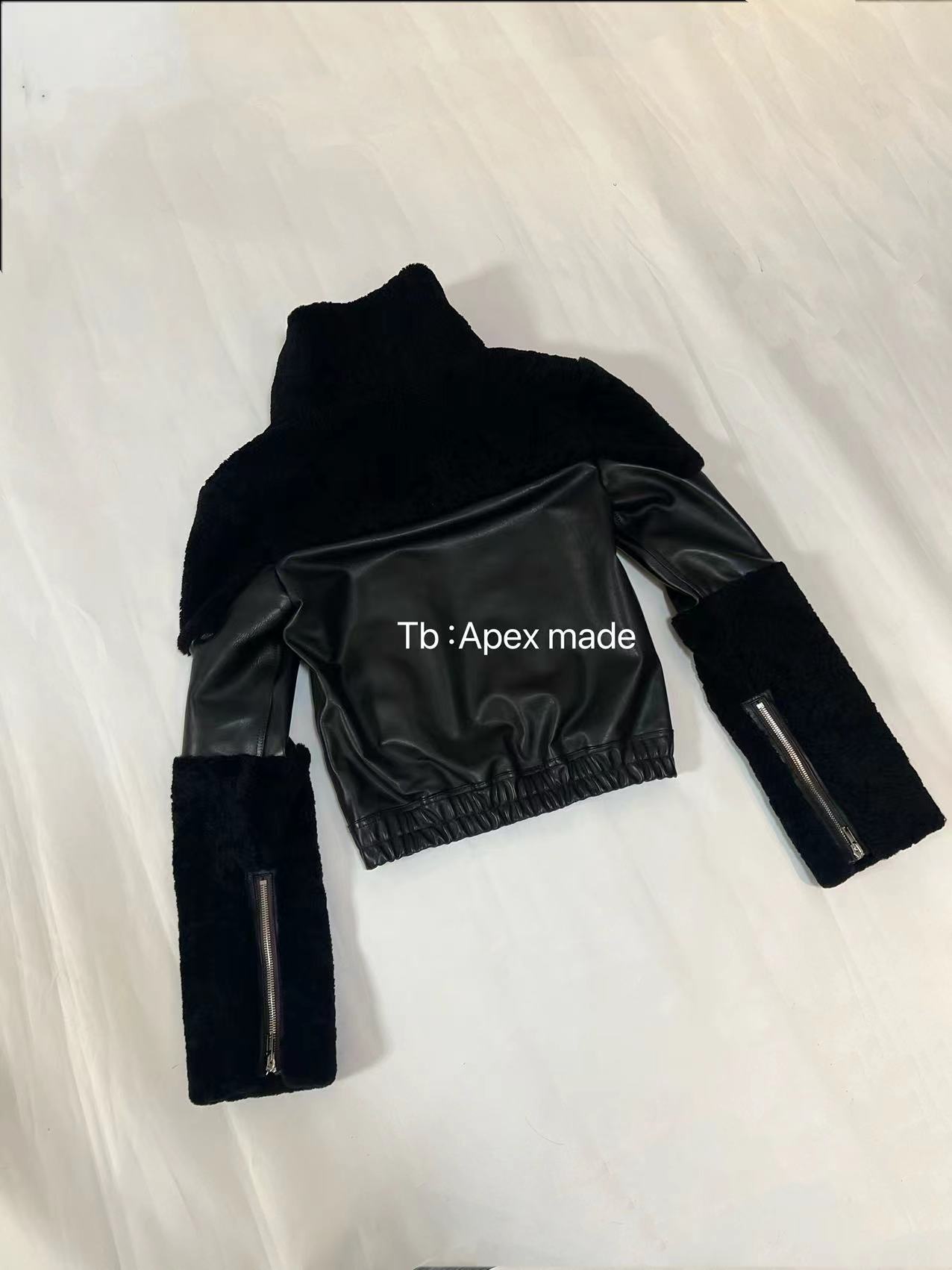 NIGO Rick Owens Men's And Women's Patchwork Collar Leather Jacket Fashion High Street Cool Lapel Short Jacket Ngvp #nigo6628