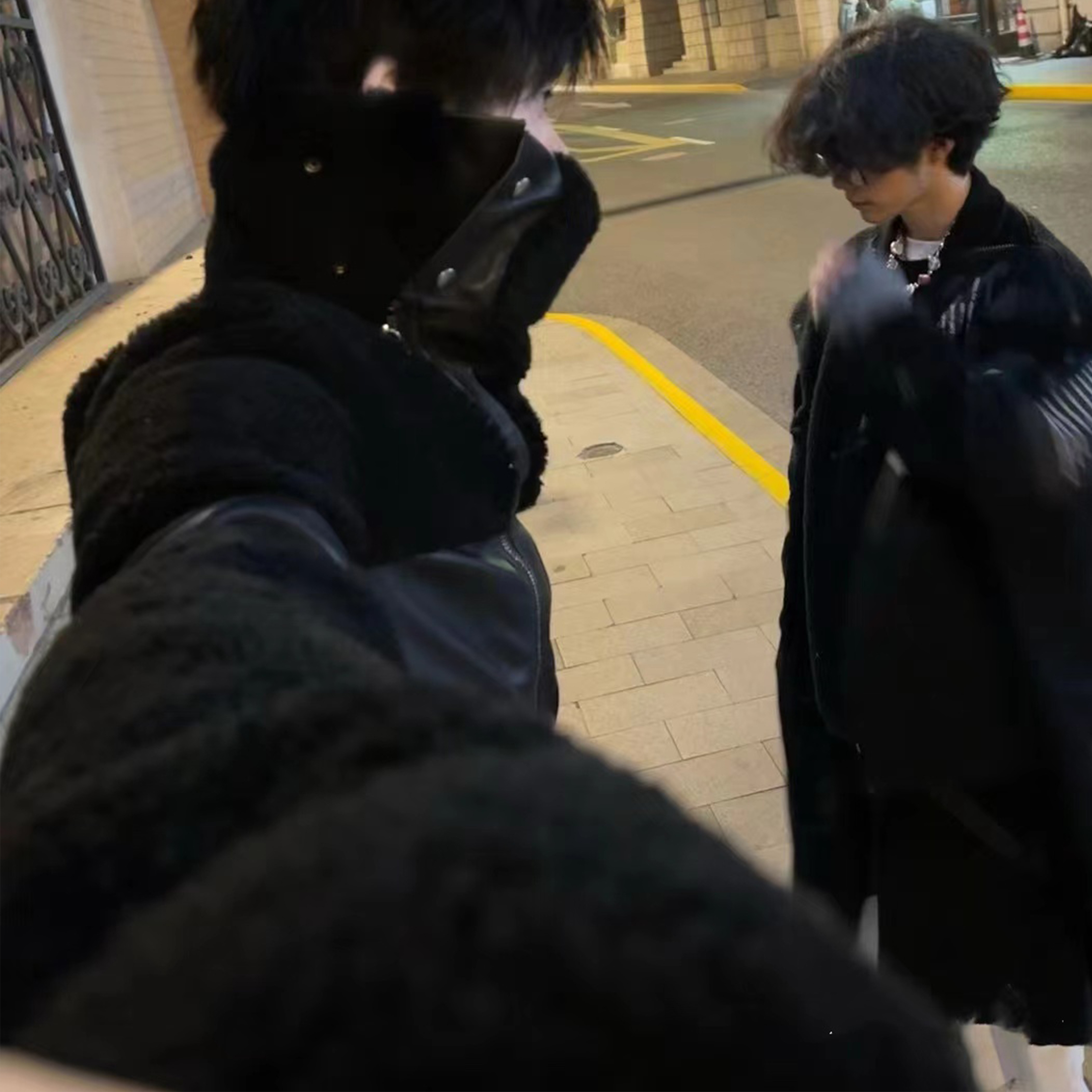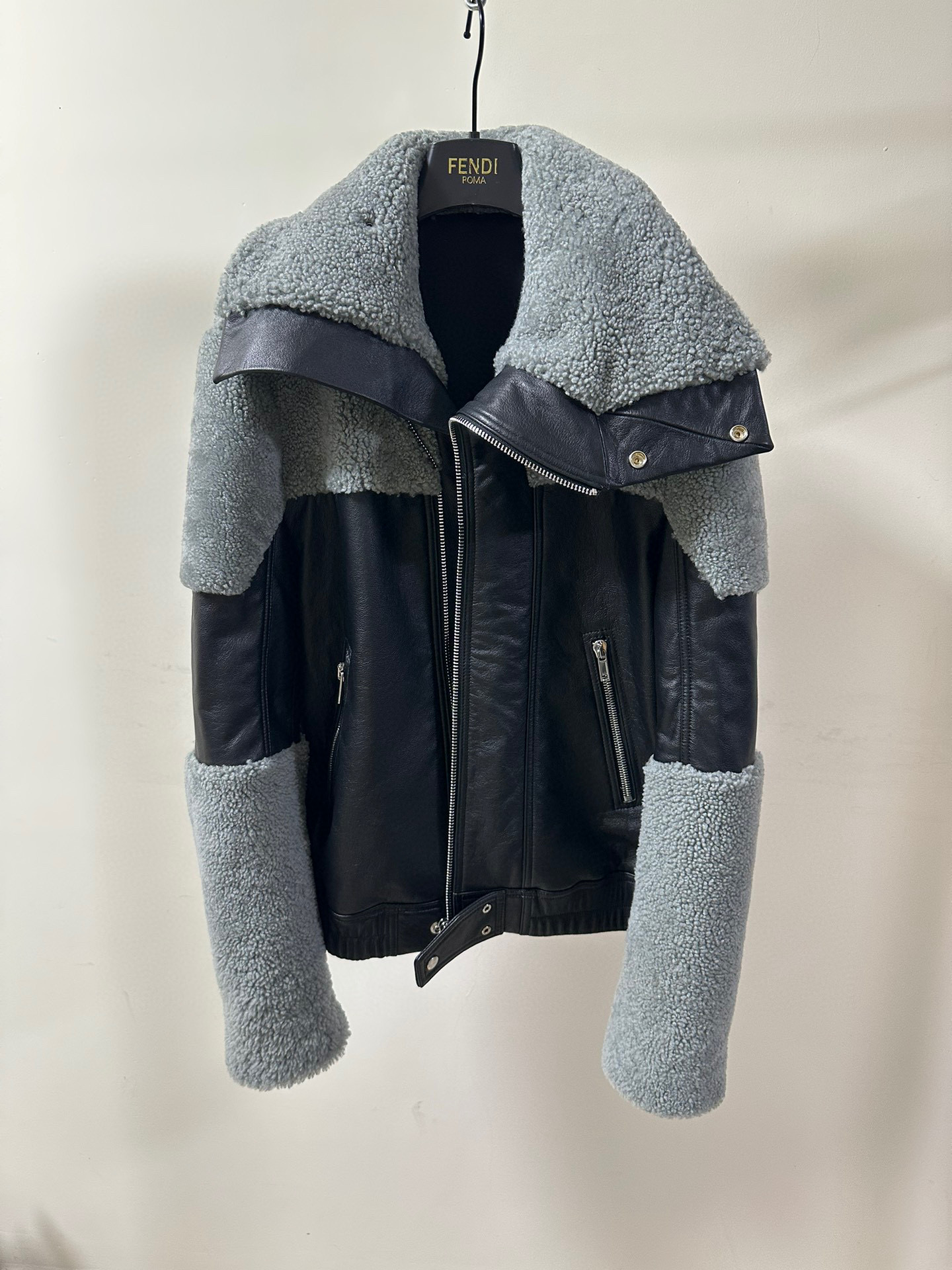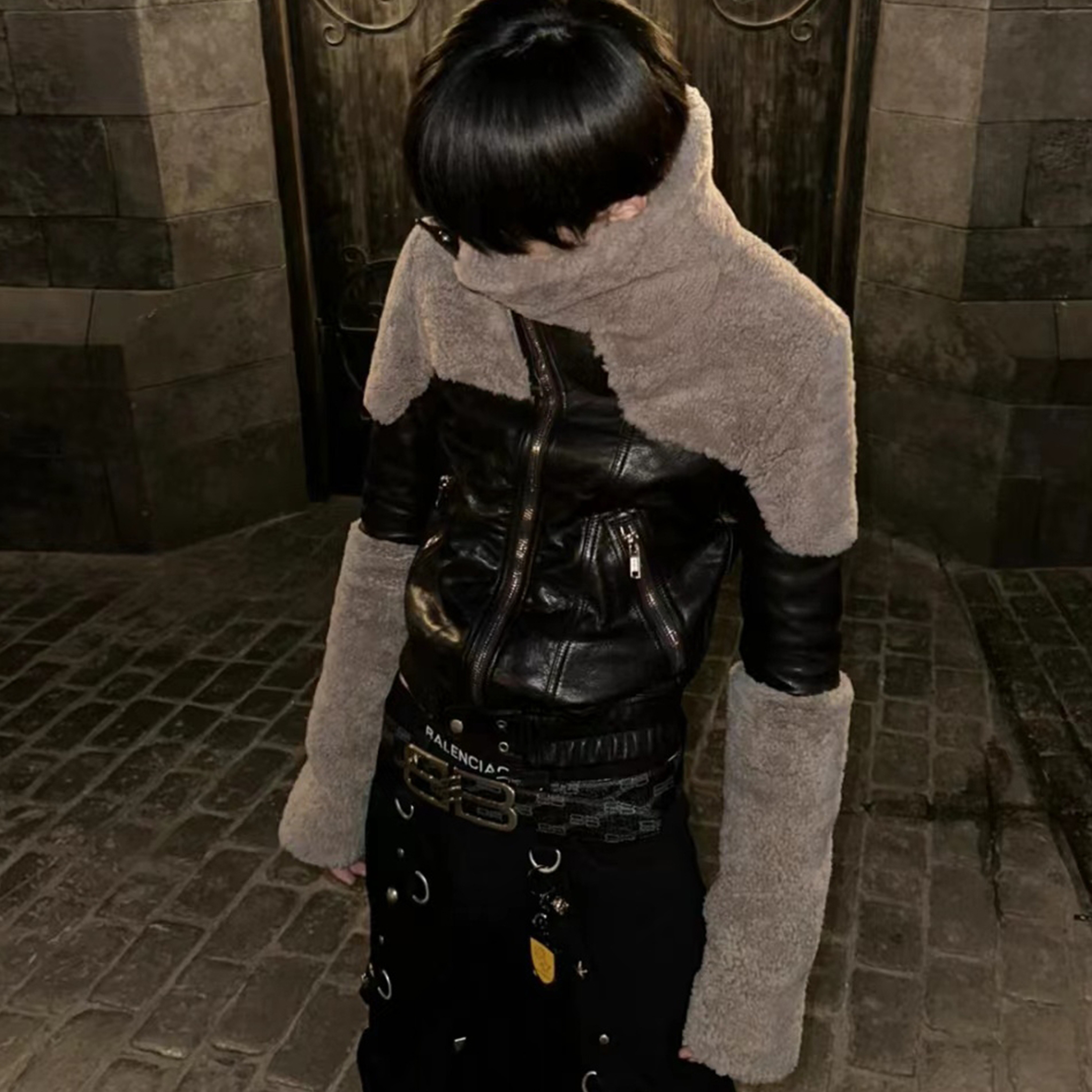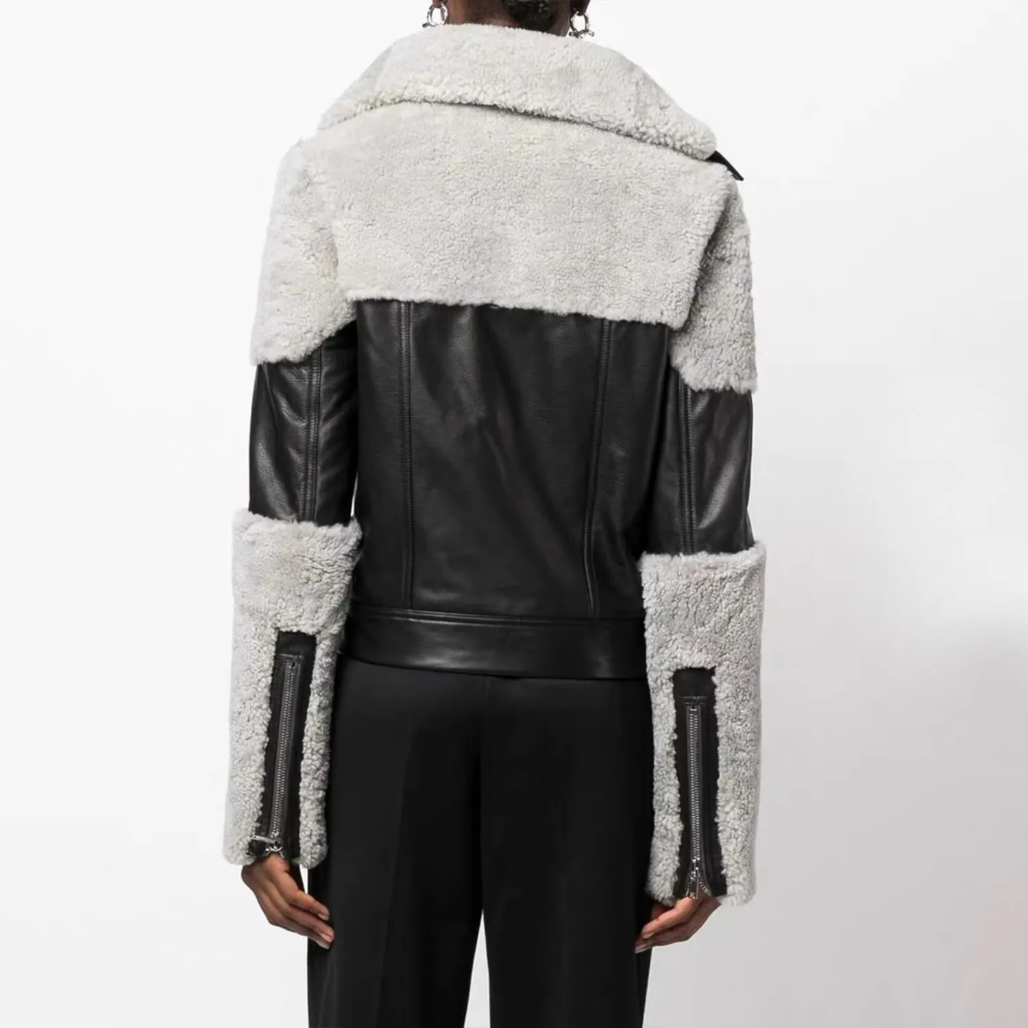 NIGO Rick Owens Men's And Women's Patchwork Collar Leather Jacket Fashion High Street Cool Lapel Short Jacket Ngvp #nigo6628