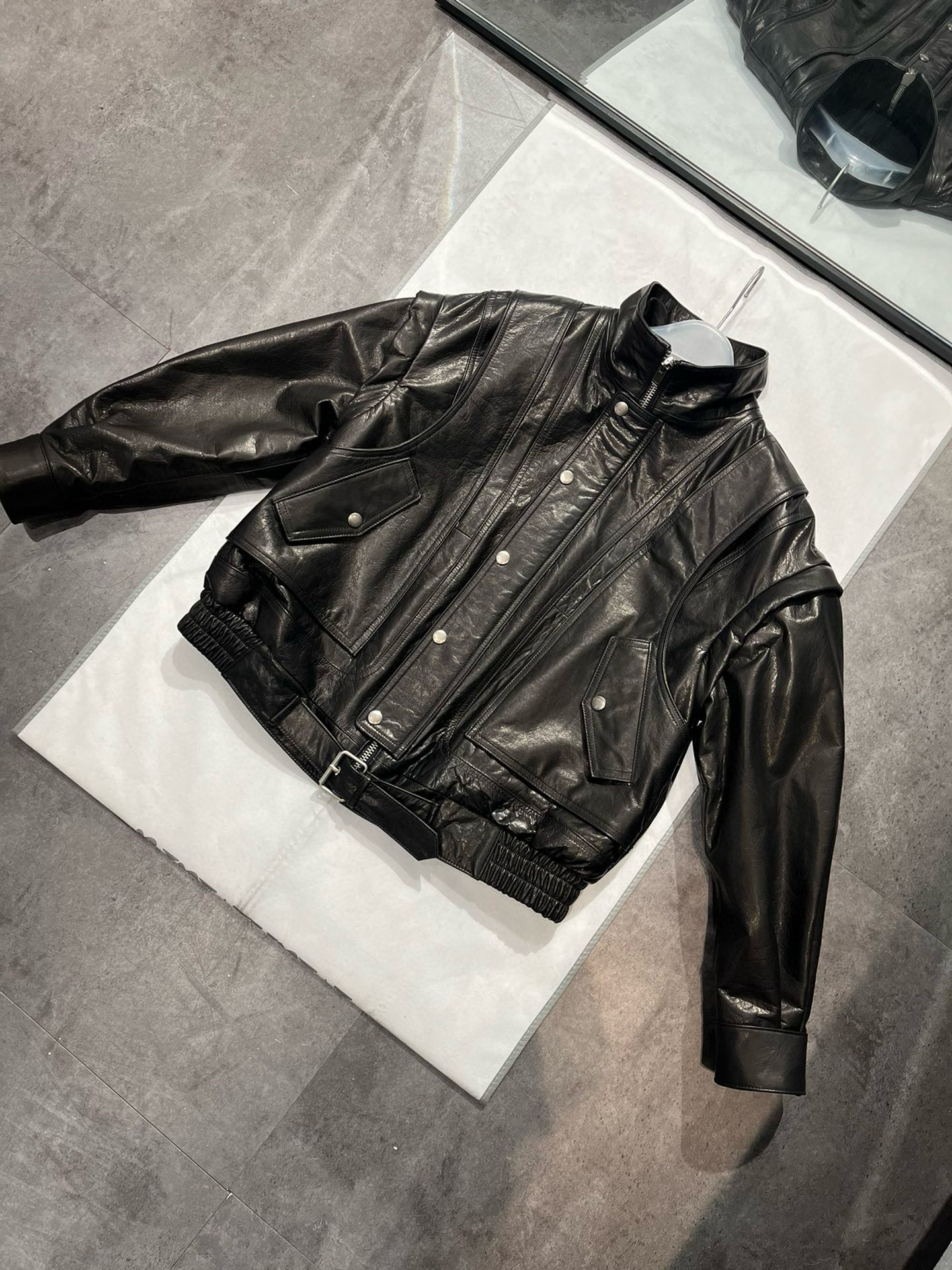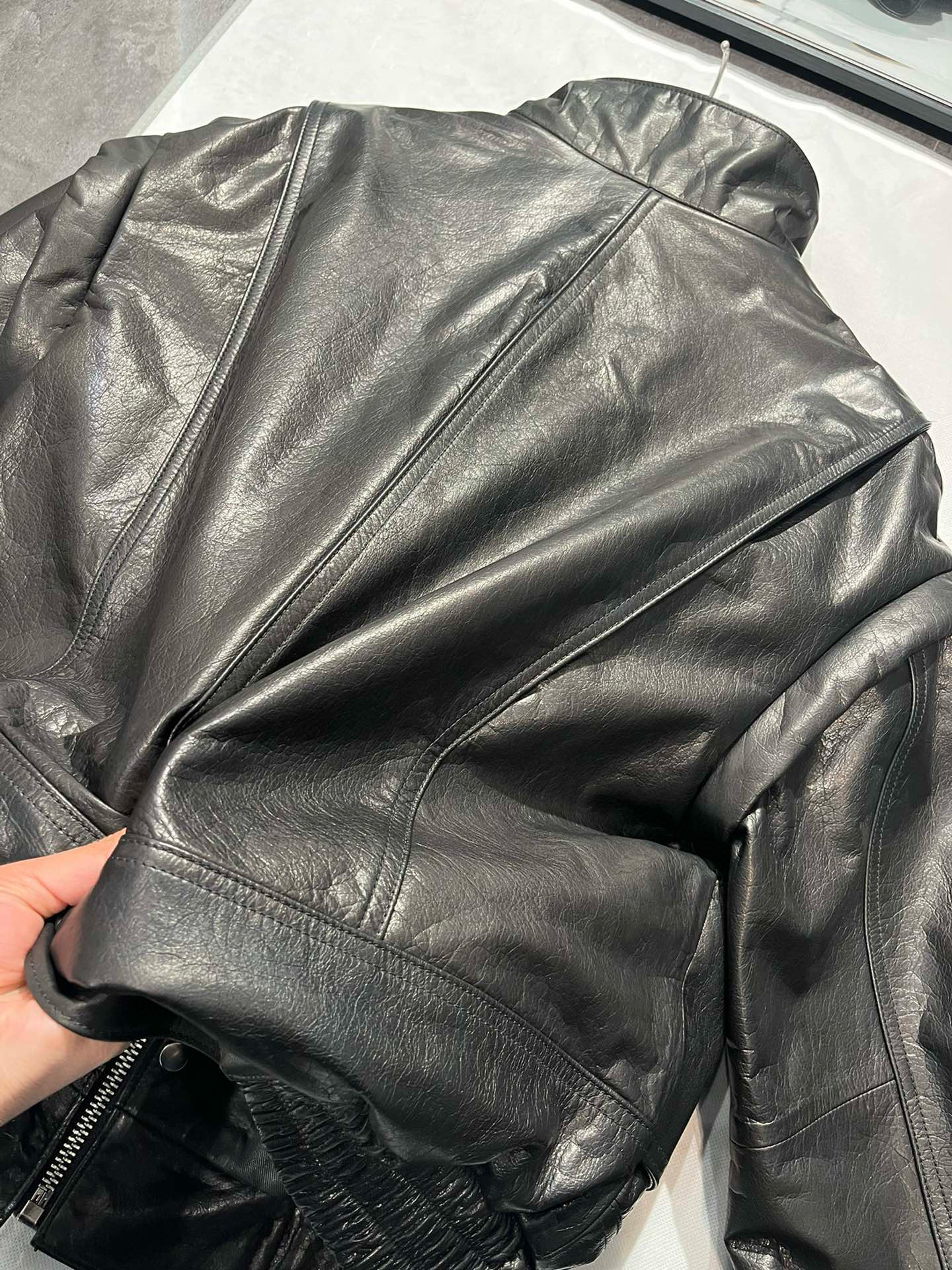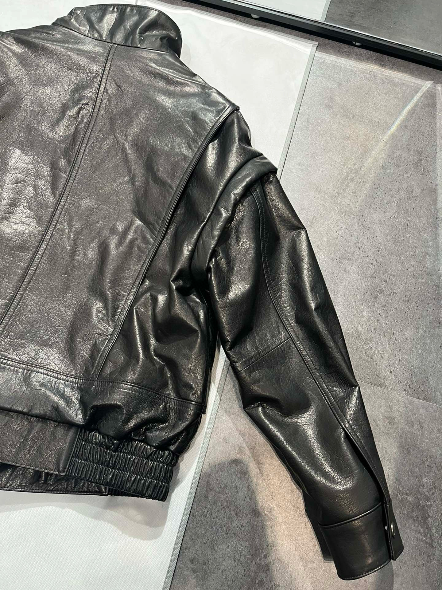 NIGO Saint Laurent Women's Spring And Autumn Fashion Standing Collar Detachable Sleeves Black Oversized Lambskin Jacket Ngvp #nigo8132