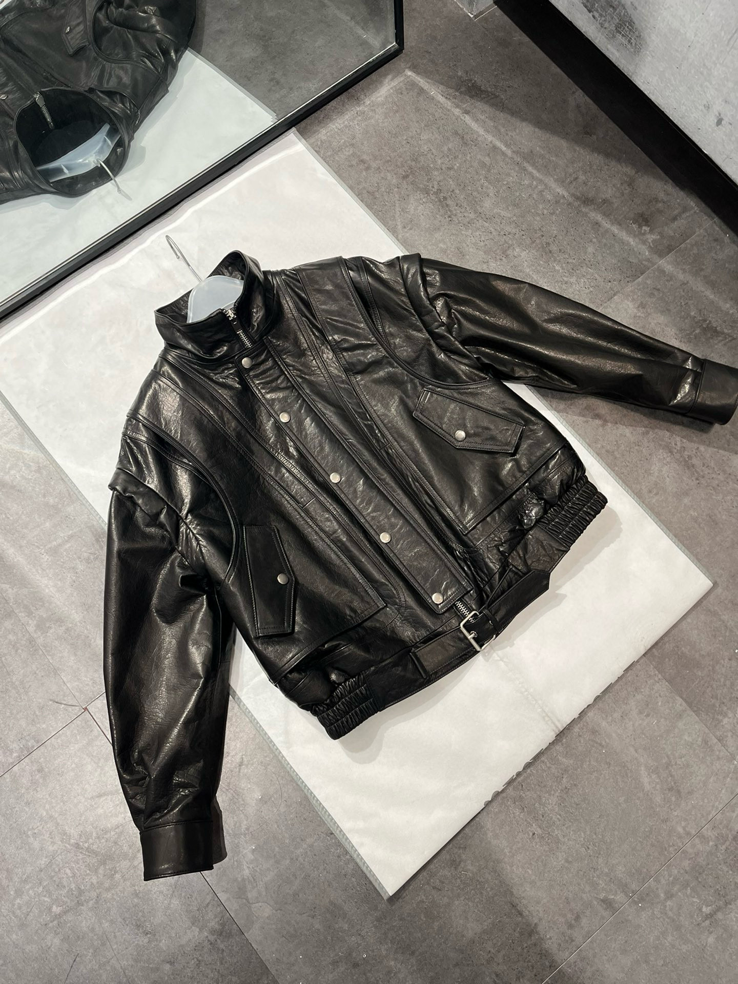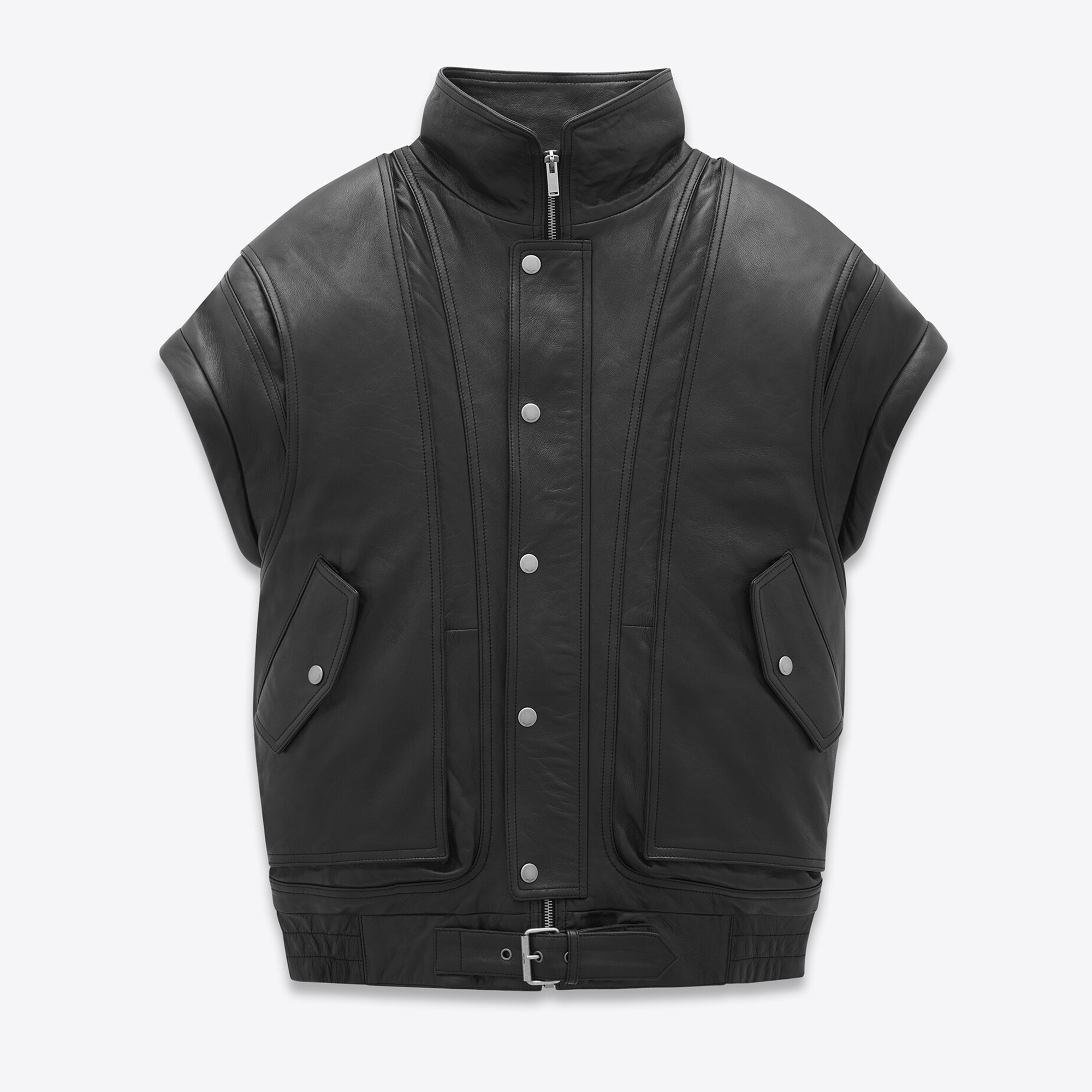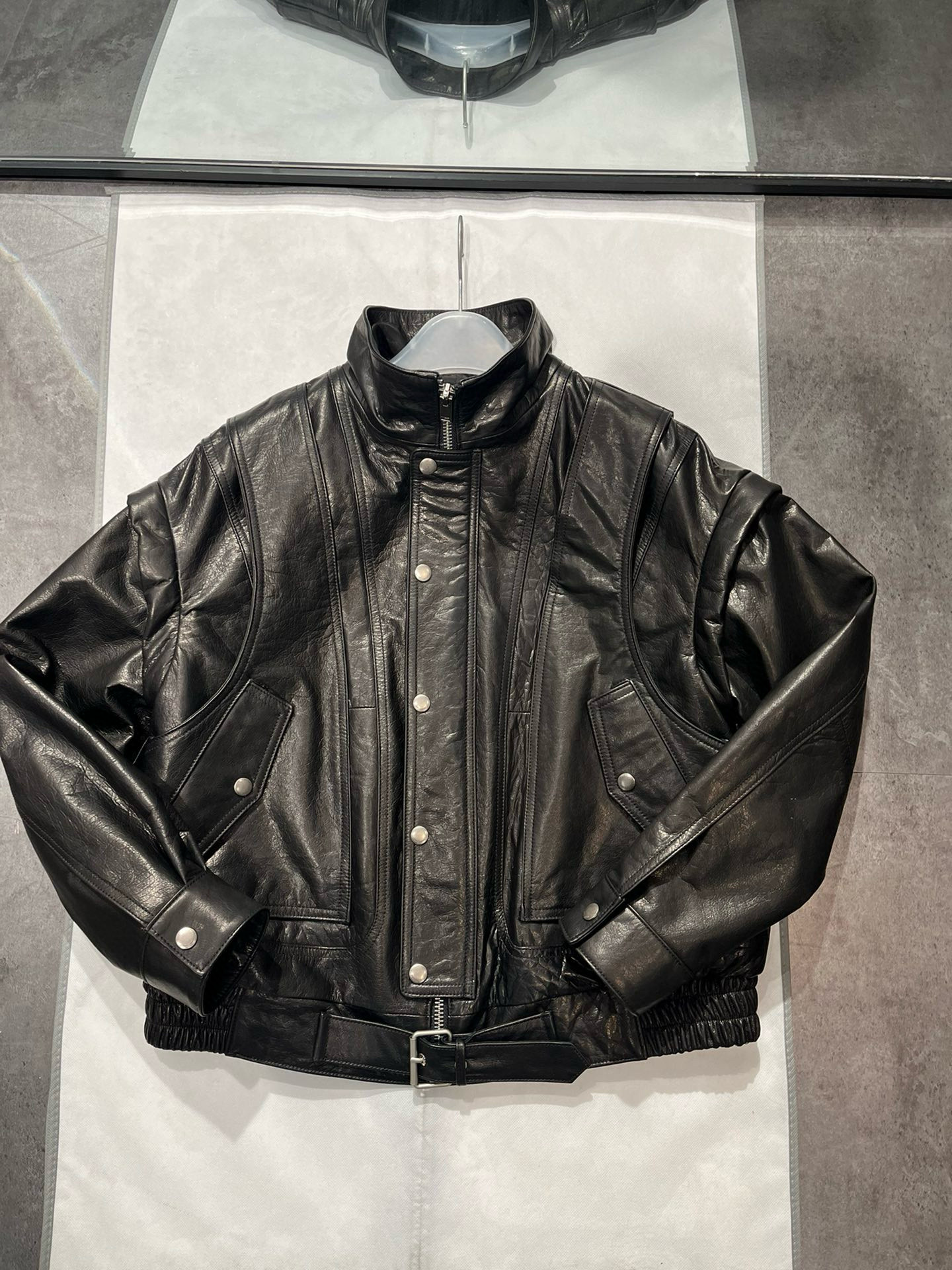NIGO Saint Laurent Women's Spring And Autumn Fashion Standing Collar Detachable Sleeves Black Oversized Lambskin Jacket Ngvp #nigo8132