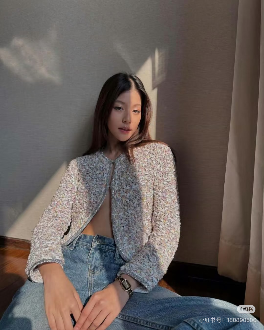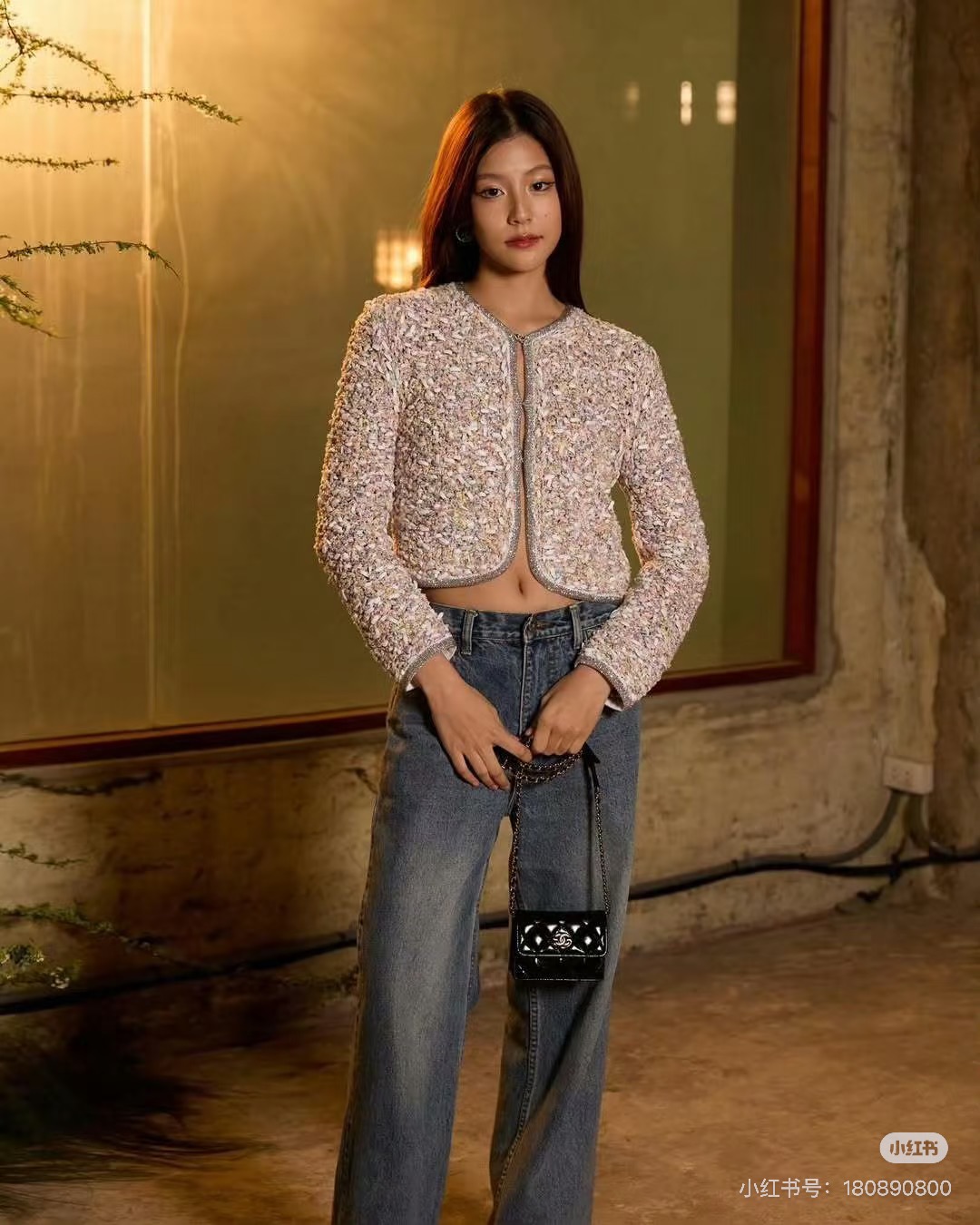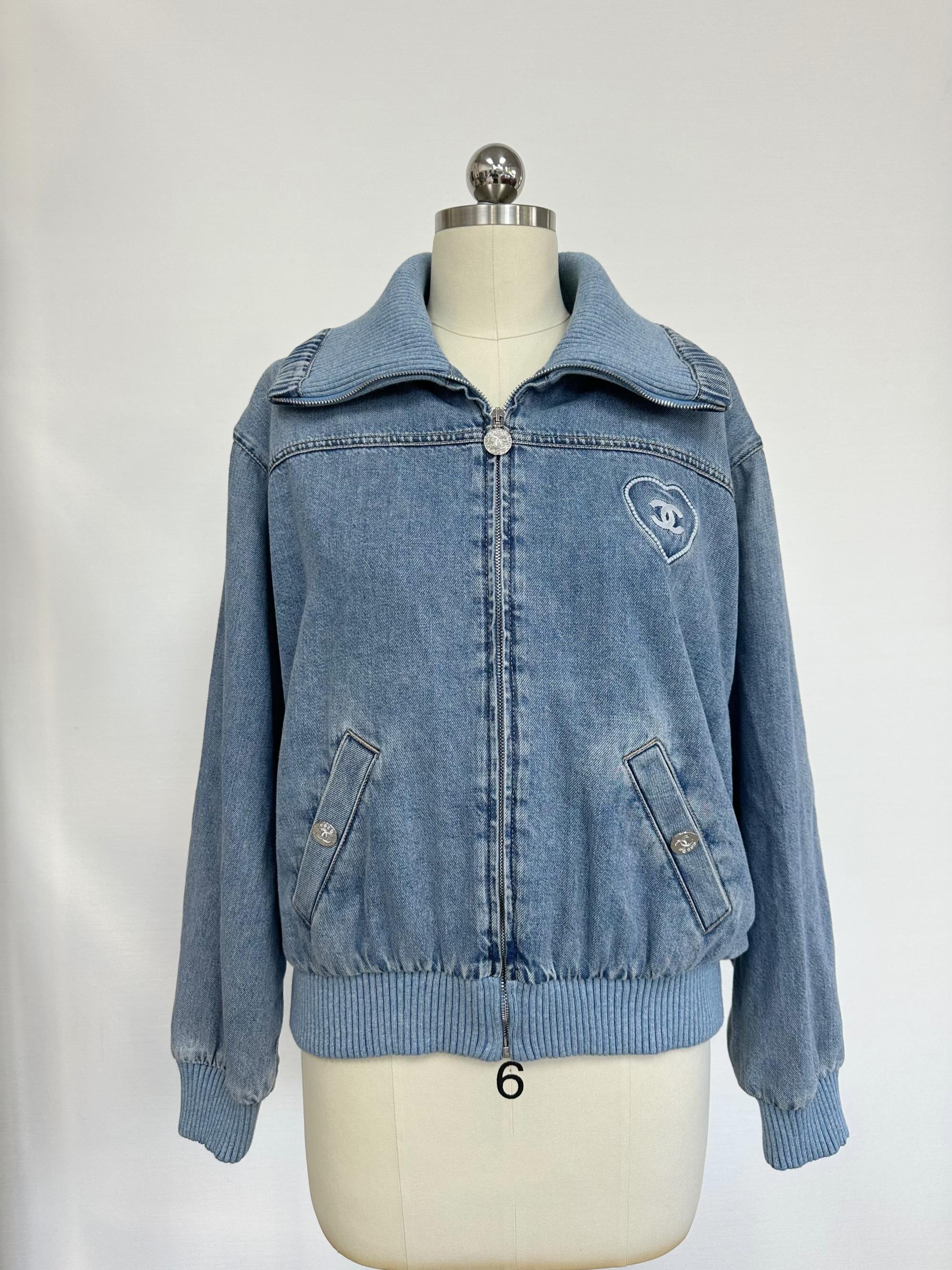 NIGO Chanel Women's Spring/Autumn Solid Color Waist-cinching Embroidered Logo Print Zipper Denim Jacket #nigo77863