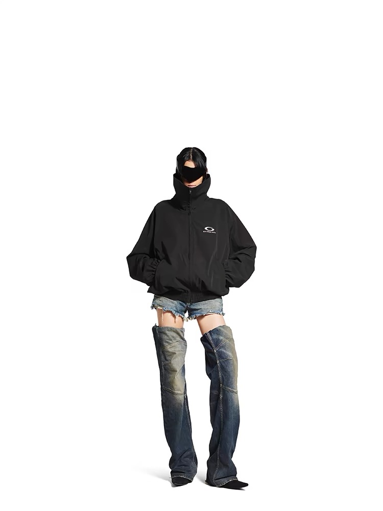 NIGO Balenciaga Women's Spring and Autumn Solid Color High Neck Embroidered Logo Printed Zipper Long Sleeve Jacket #nigo76168