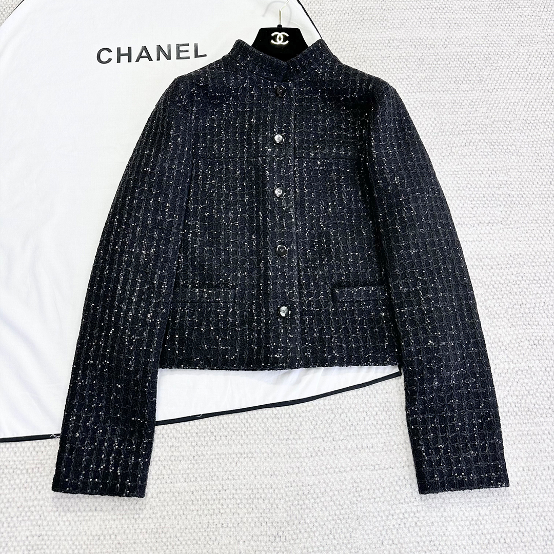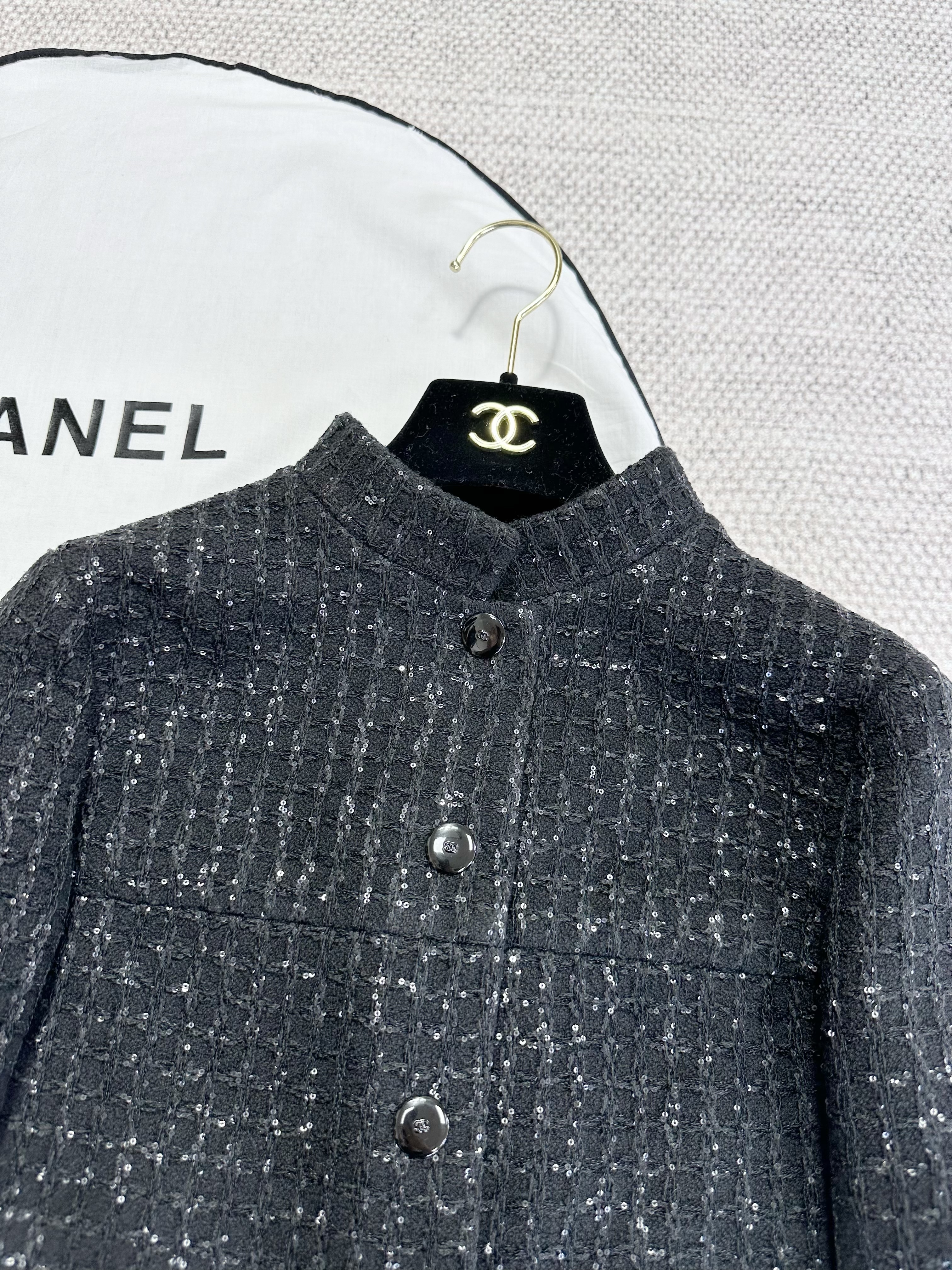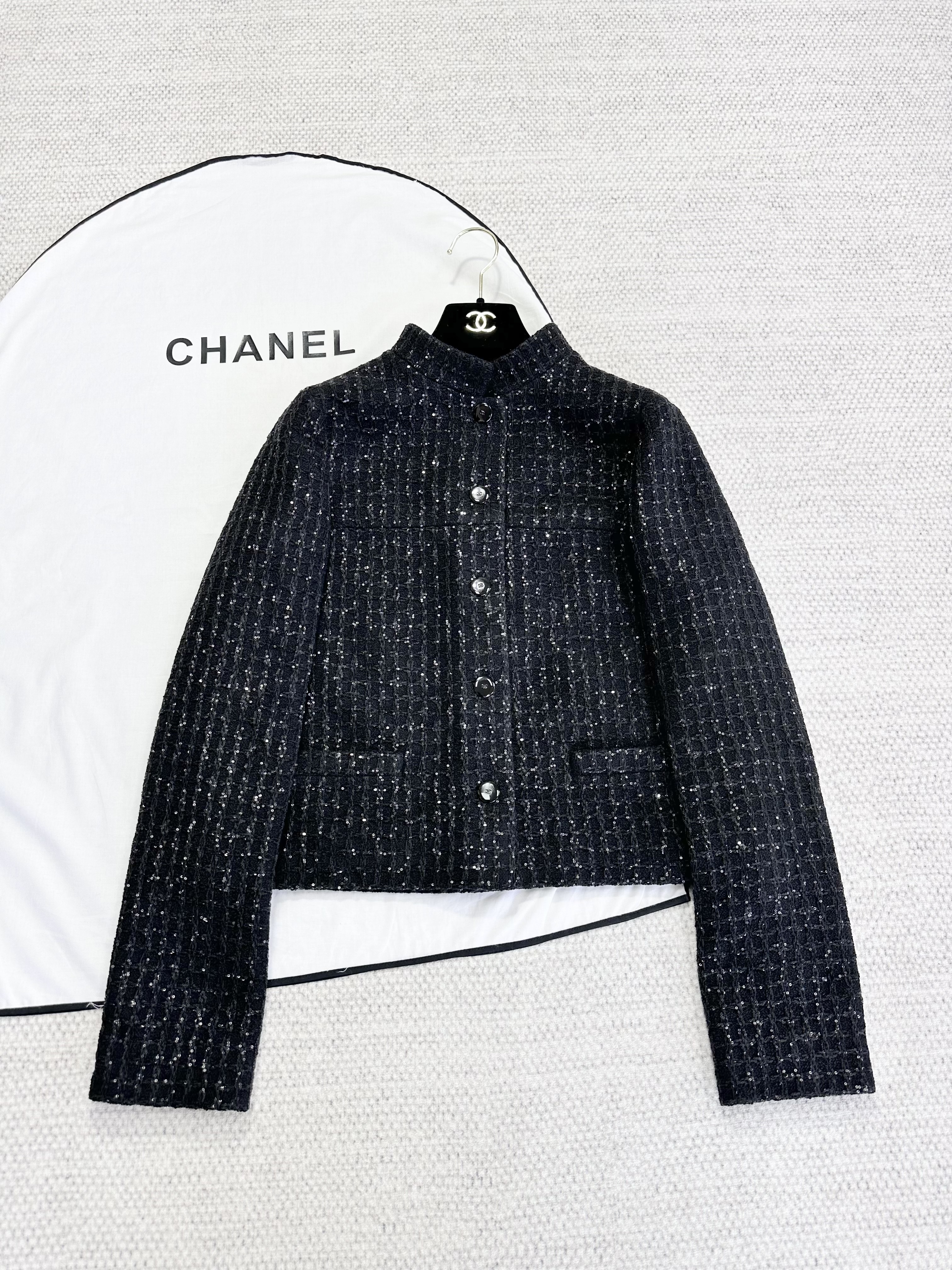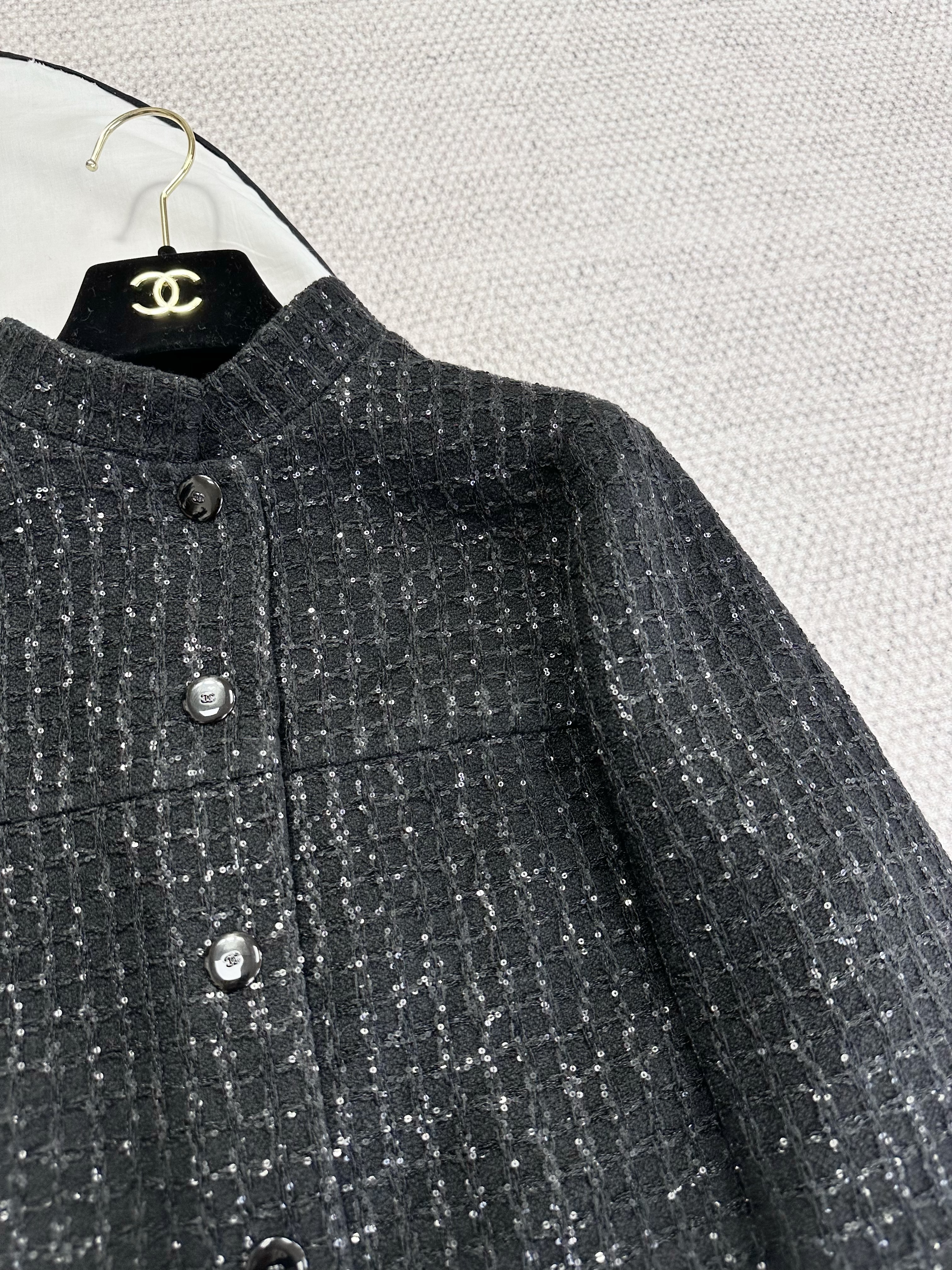 NIGO Chanel Women's Spring & Autumn Shiny Tweed Standing Collar Solid Color Long Sleeve Single Breasted Jacket Ngvp #nigo9967