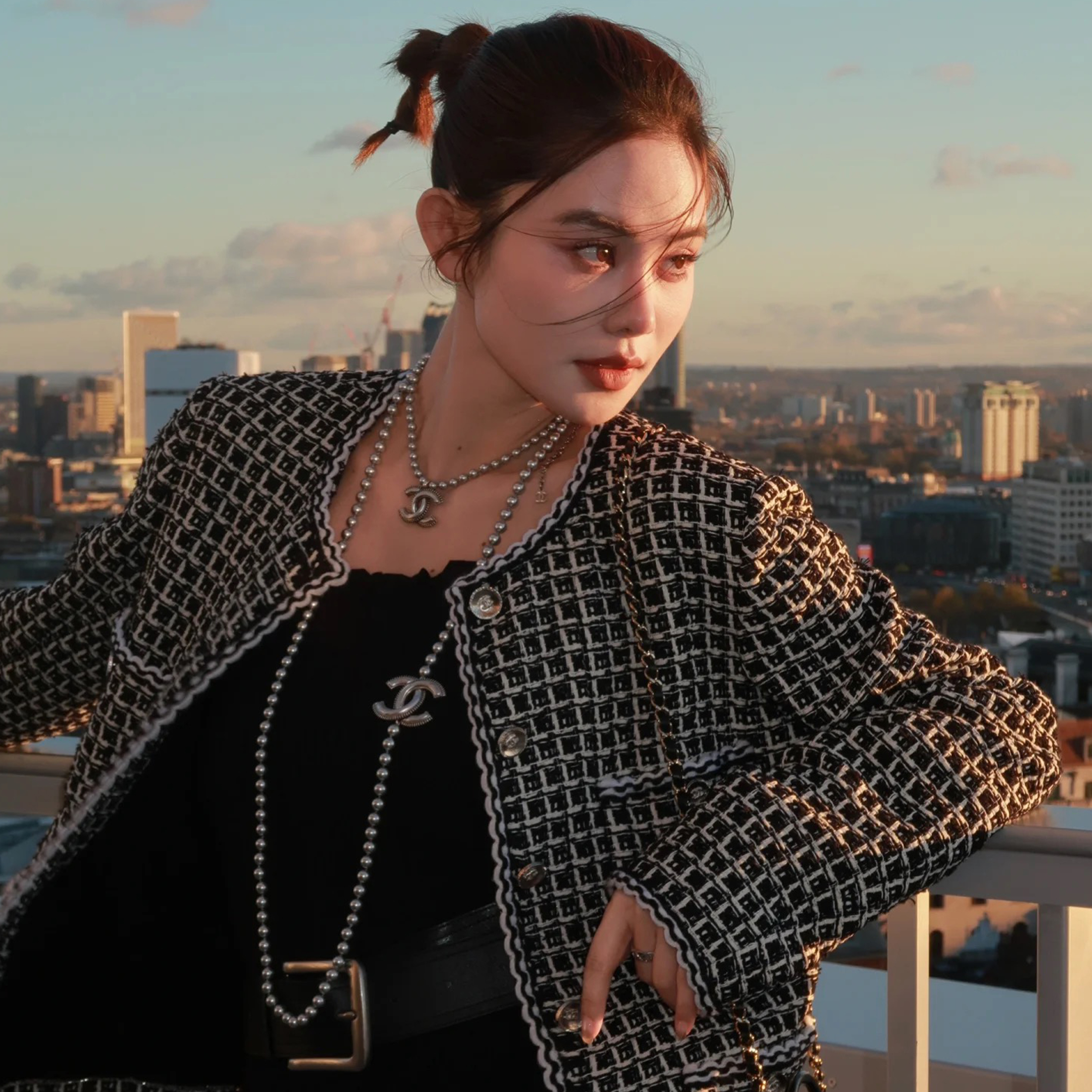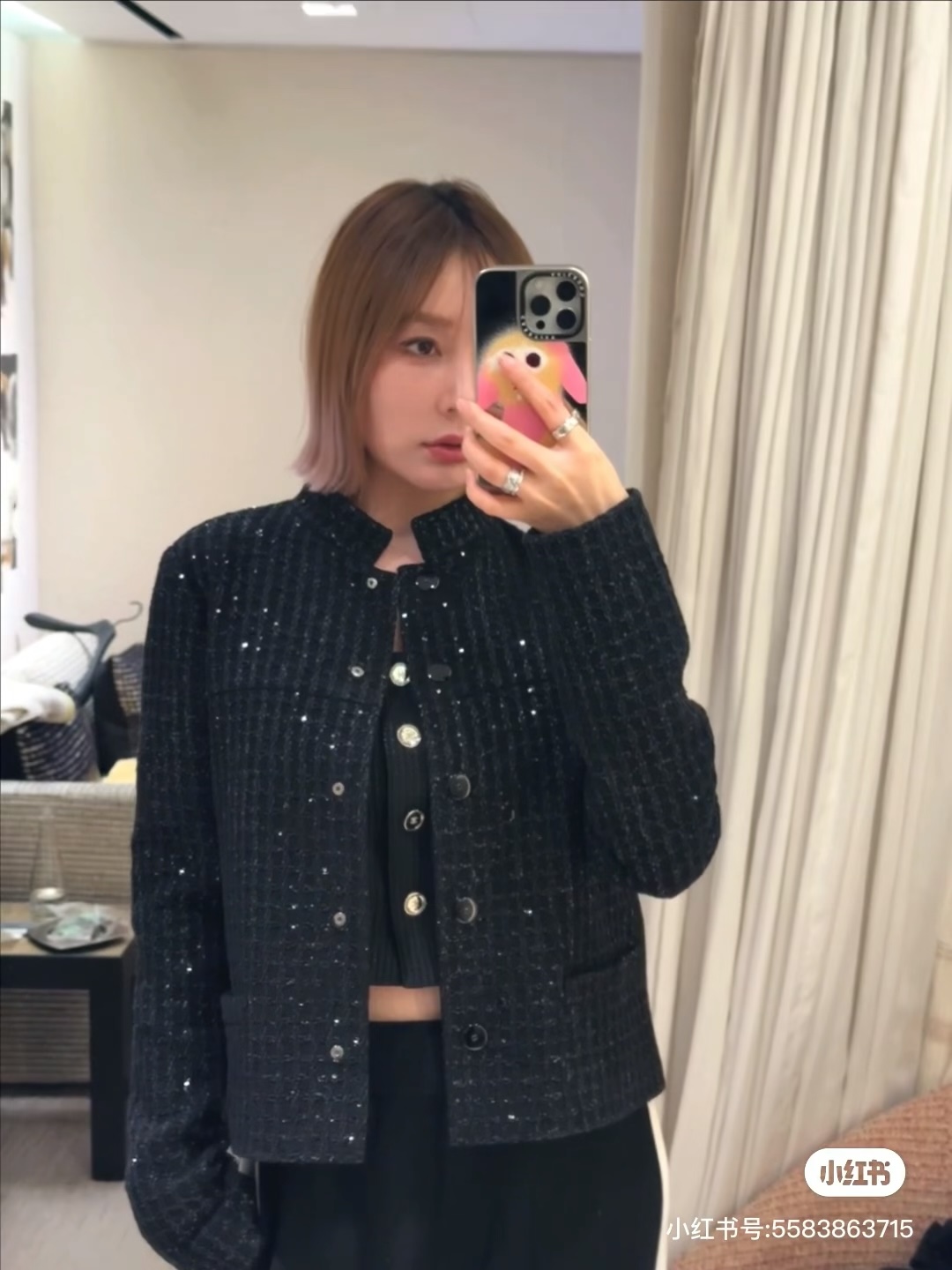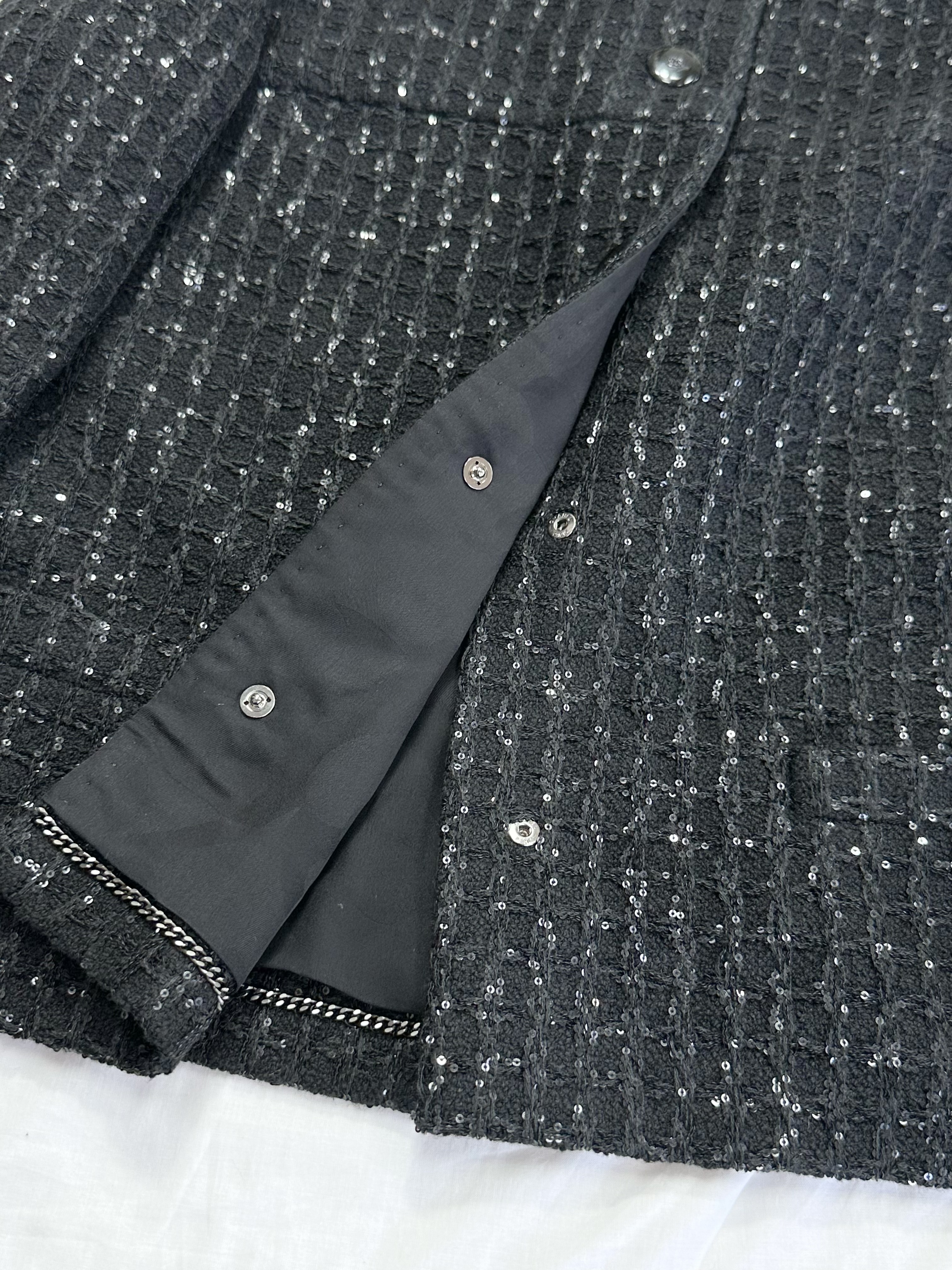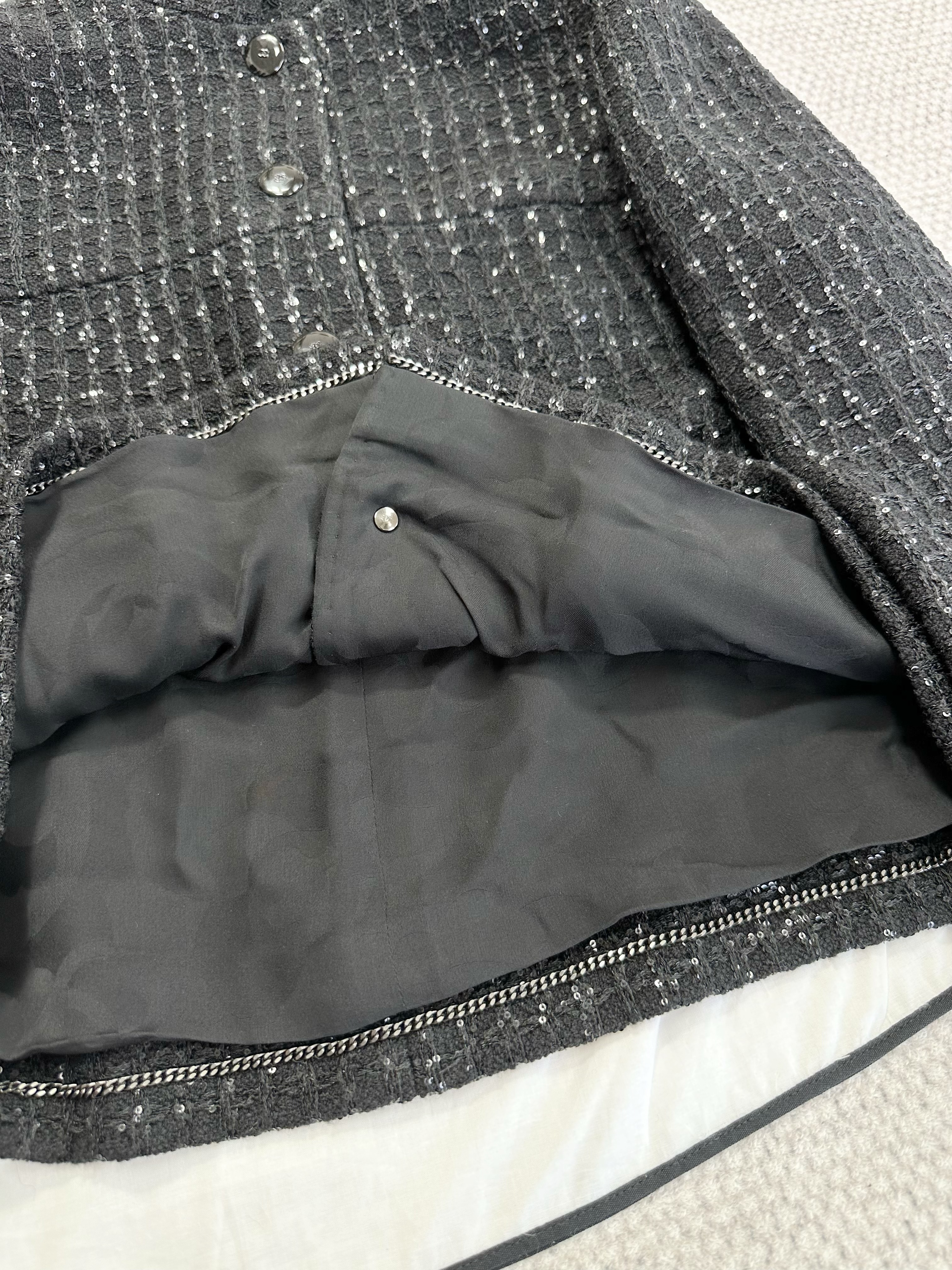 NIGO Chanel Women's Spring & Autumn Shiny Tweed Standing Collar Solid Color Long Sleeve Single Breasted Jacket Ngvp #nigo9967