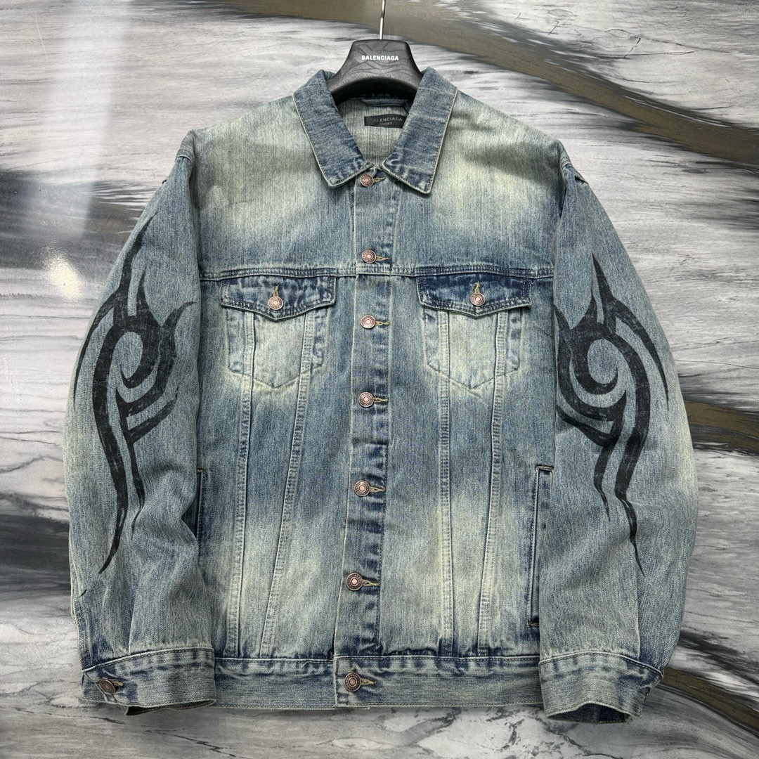 NIGO Balenciaga Men's Spring and Autumn Pattern Printing Single Breasted Long Sleeve Denim Jacket #nigo74278